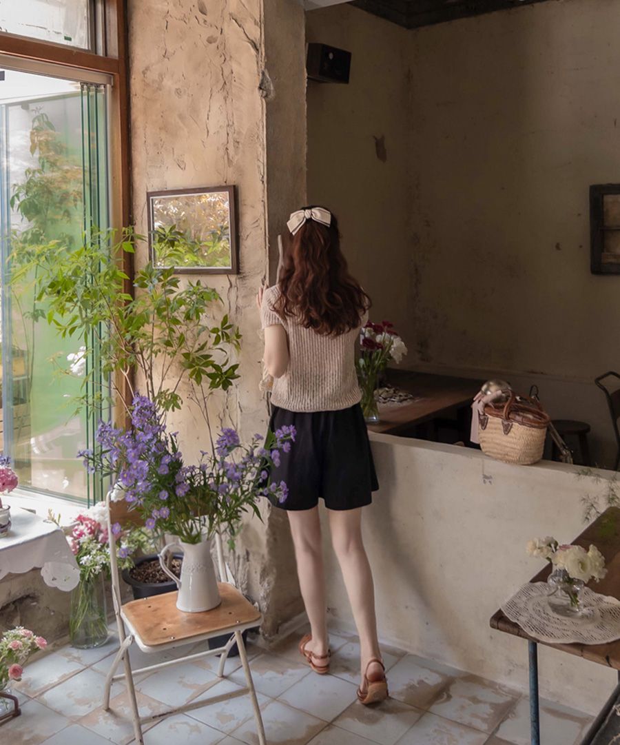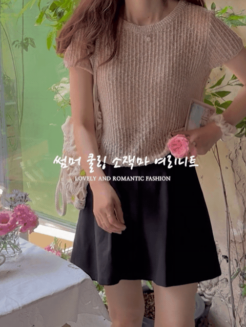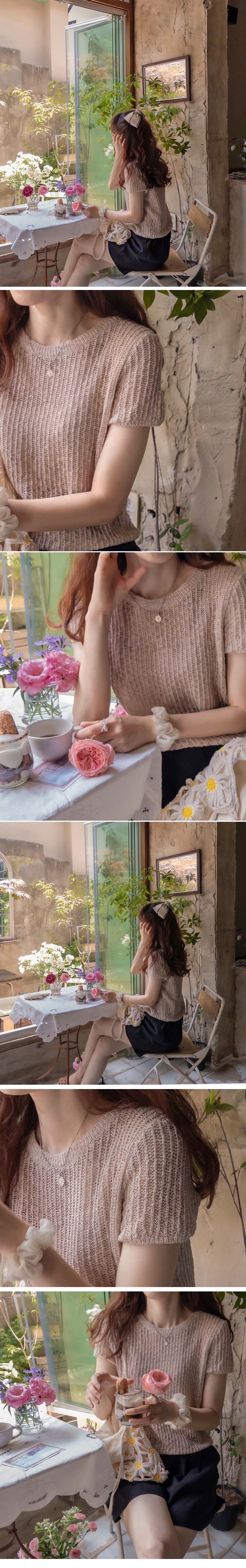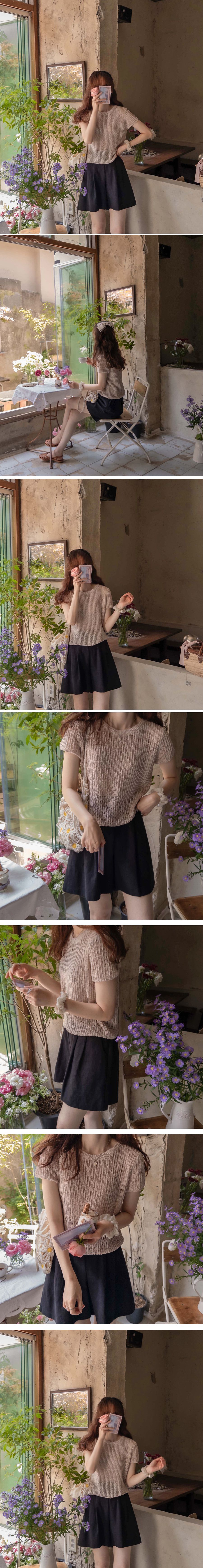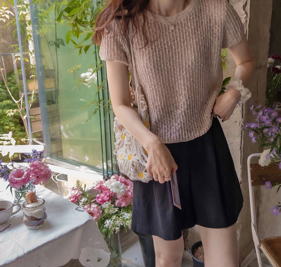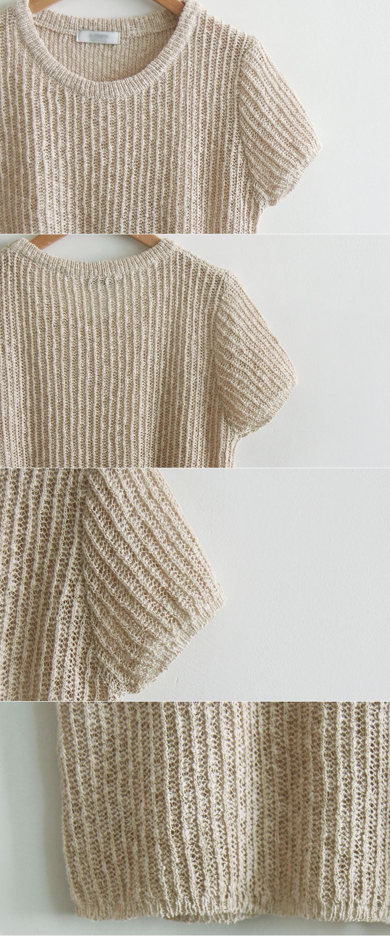 【C55065】韓國LEE 蜂巢洞洞針織衫-輕薄涼感混亞麻圓領短袖素面上衣