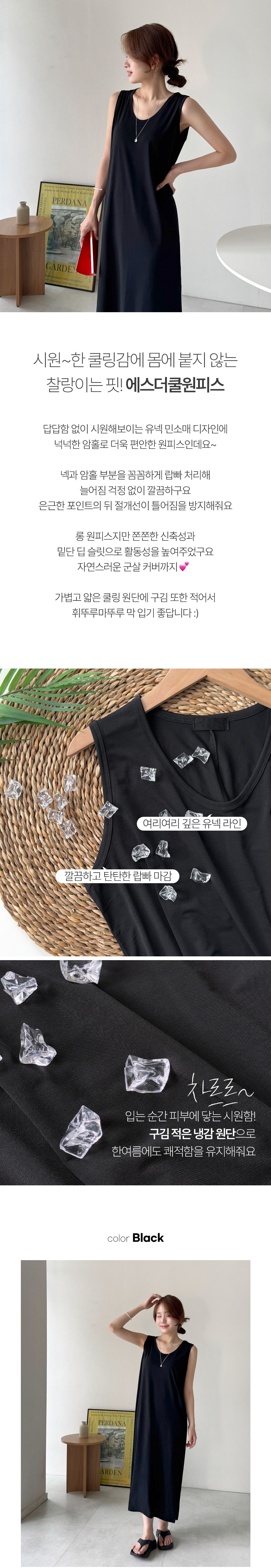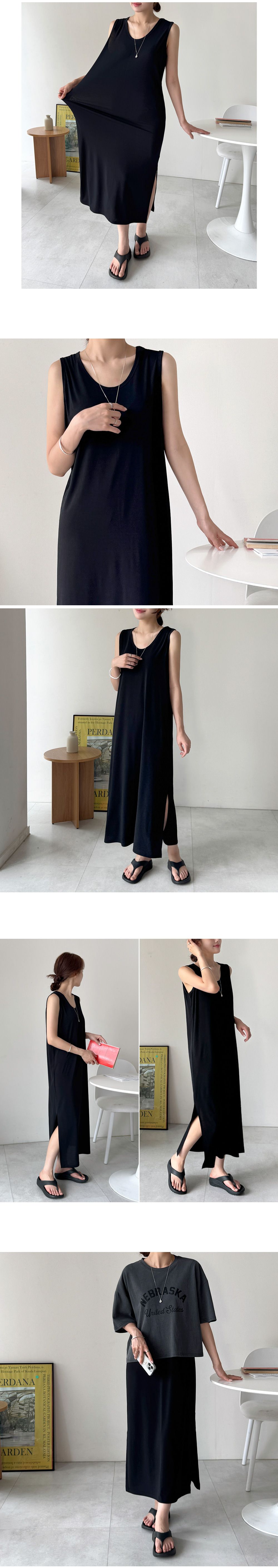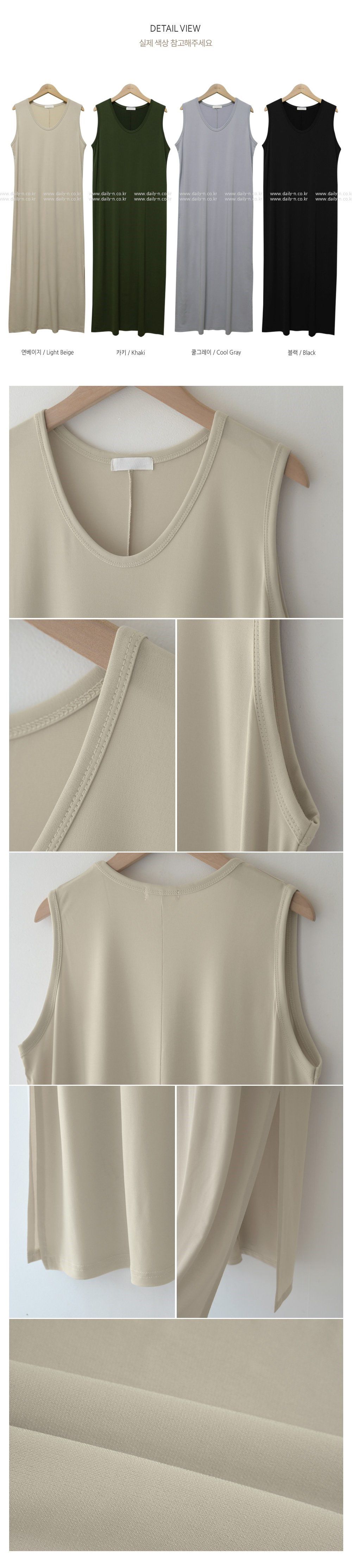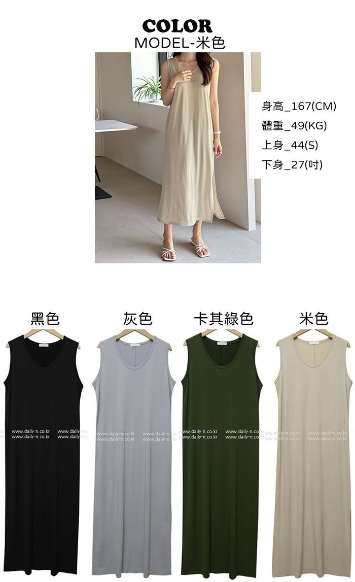 【C55075】韓國DLY 涼感背心裙-素面U領直筒側開衩寬肩無袖洋裝