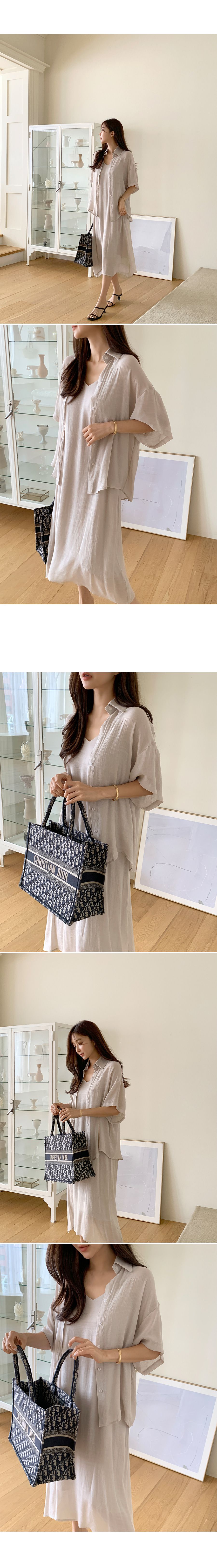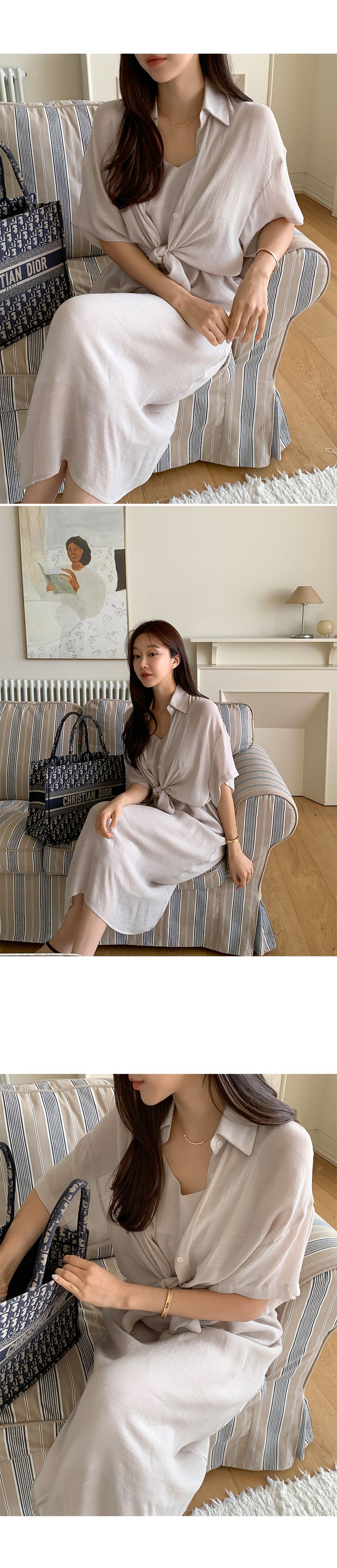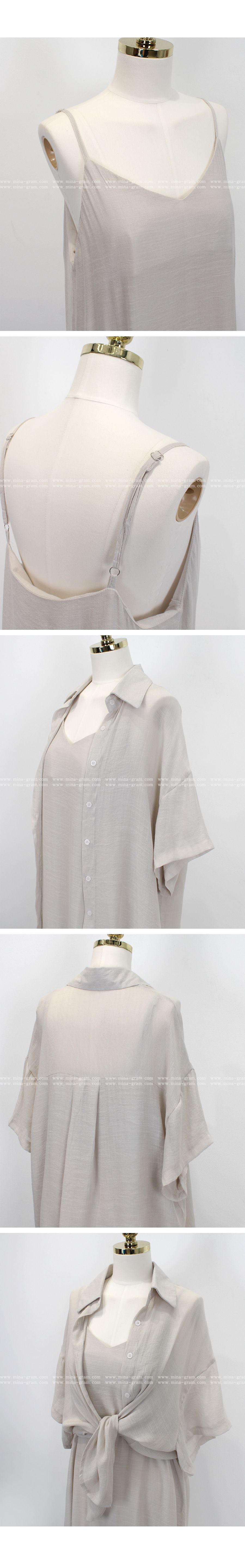 【C55078】韓國MNG 吊帶洋裝套裝-素面七分袖襯衫外套+無袖連身裙