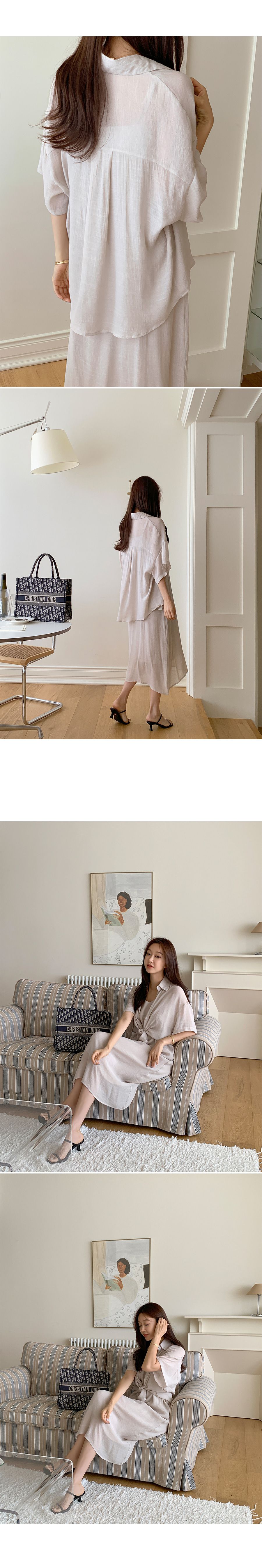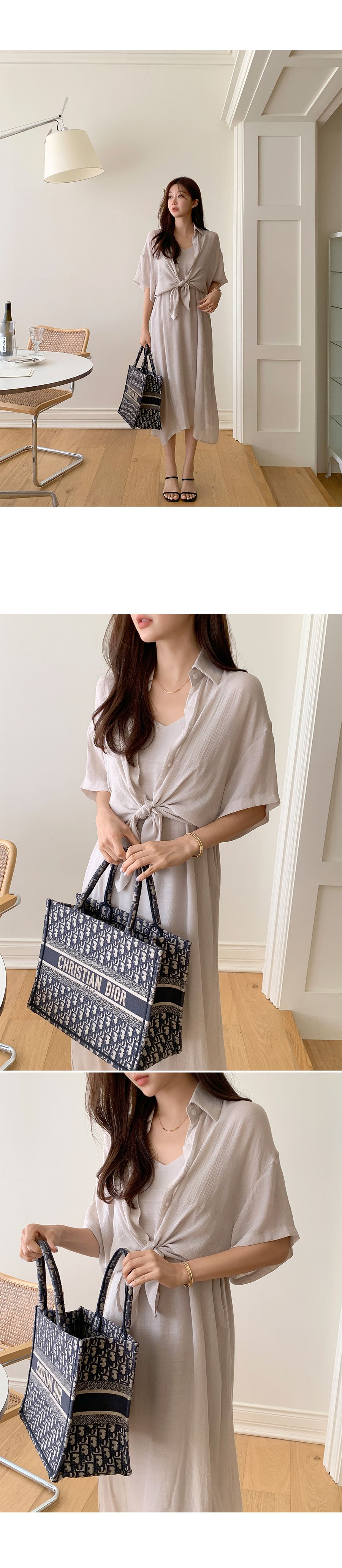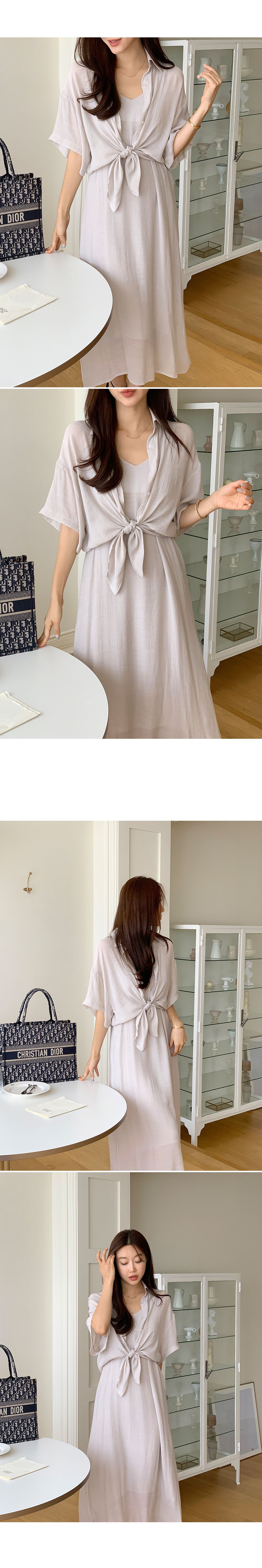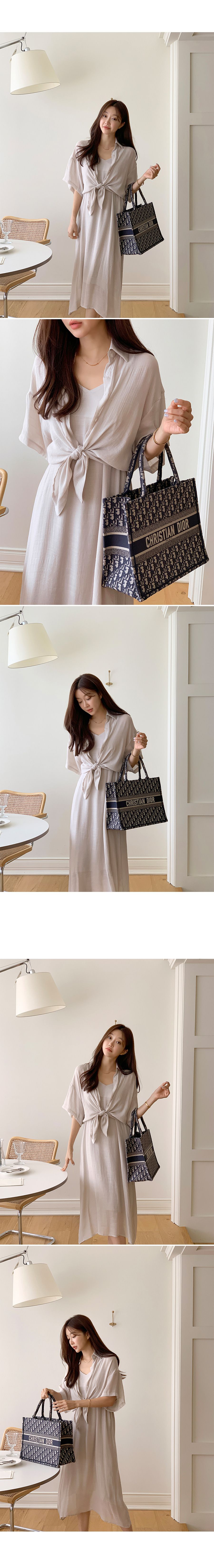 【C55078】韓國MNG 吊帶洋裝套裝-素面七分袖襯衫外套+無袖連身裙