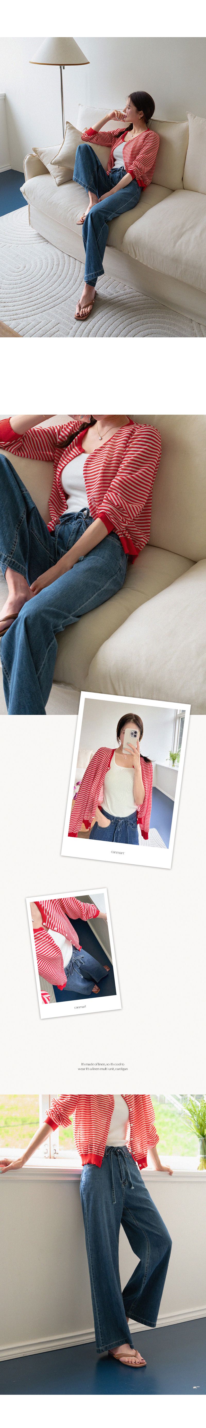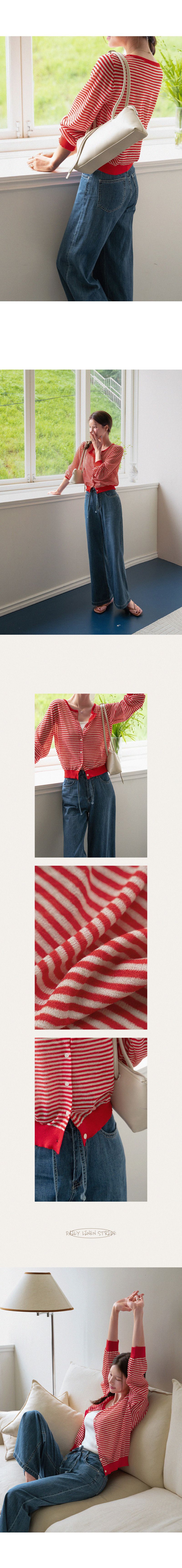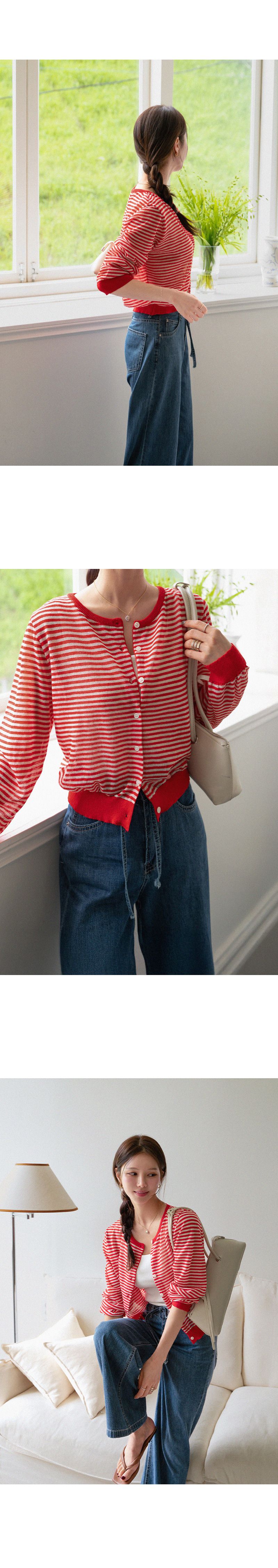 涼感混亞麻/好氣色/滾邊圓領/短版外套/開襟排釦 - 休閒居家渡假配色條紋外套條紋針織外套長袖外套紅色深灰色黑色棕色