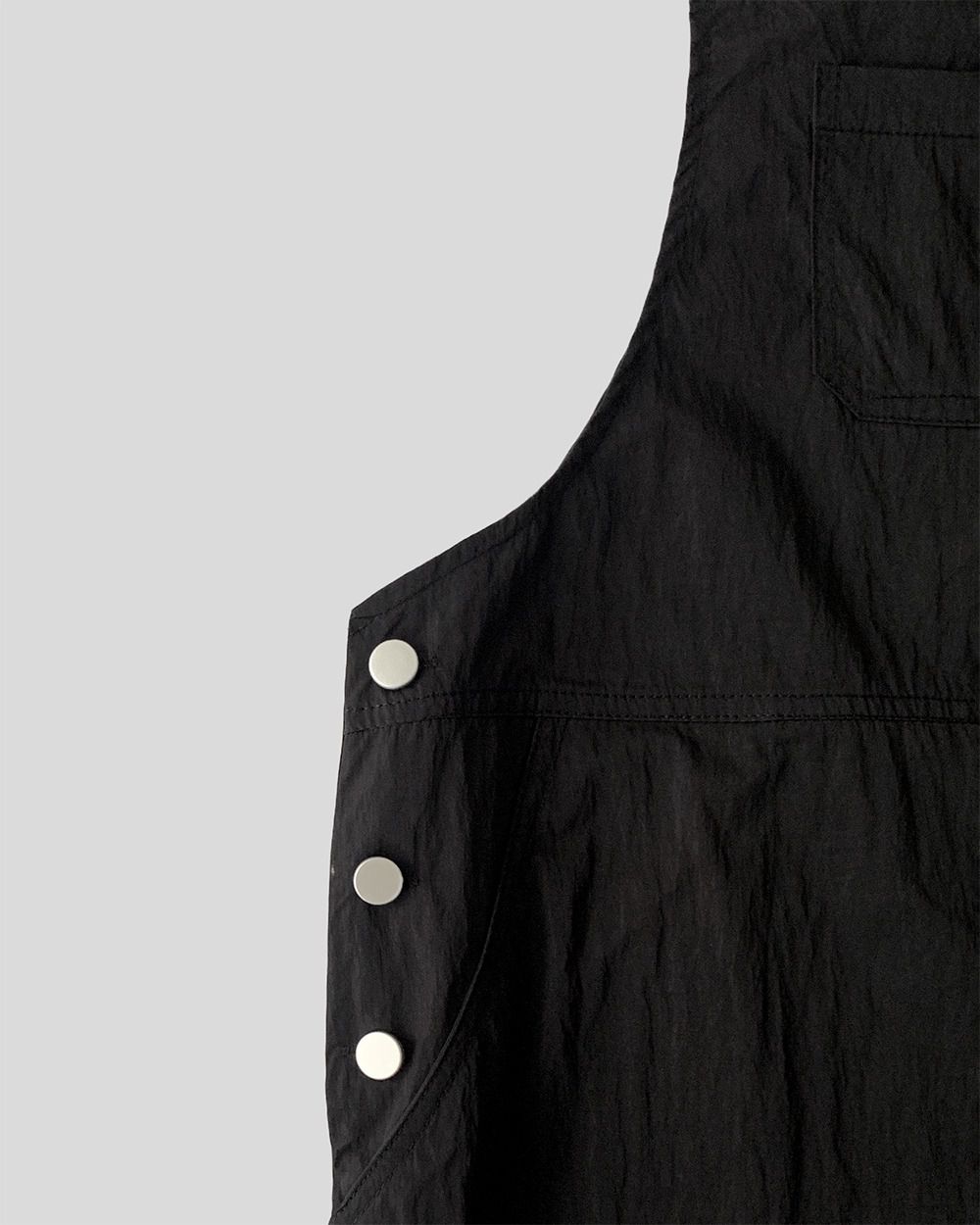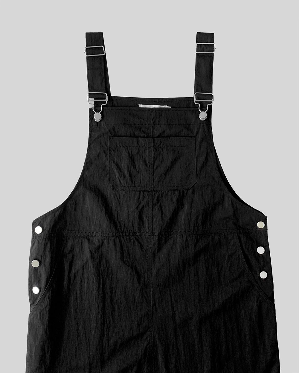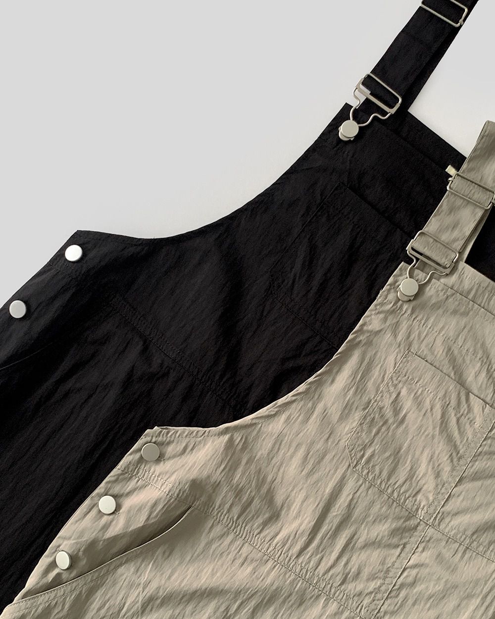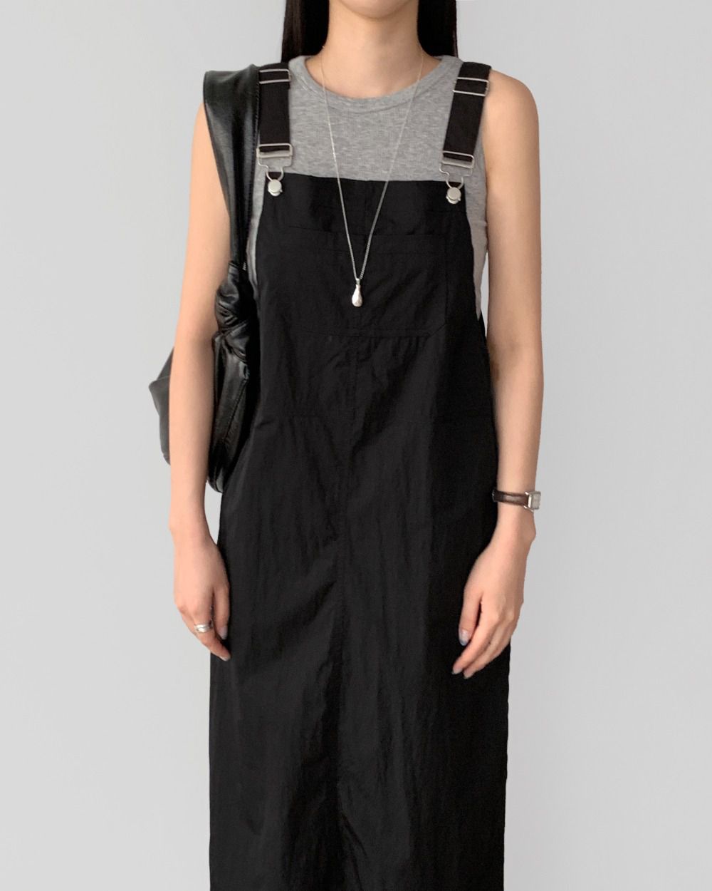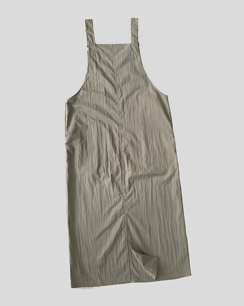 胸前大口袋/可調肩帶/平口/雙口袋/側邊三釦/直筒後開衩 - 休閒居家渡假簡約百搭素面平口吊帶裙無袖連身裙一件式洋裝吊帶洋裝