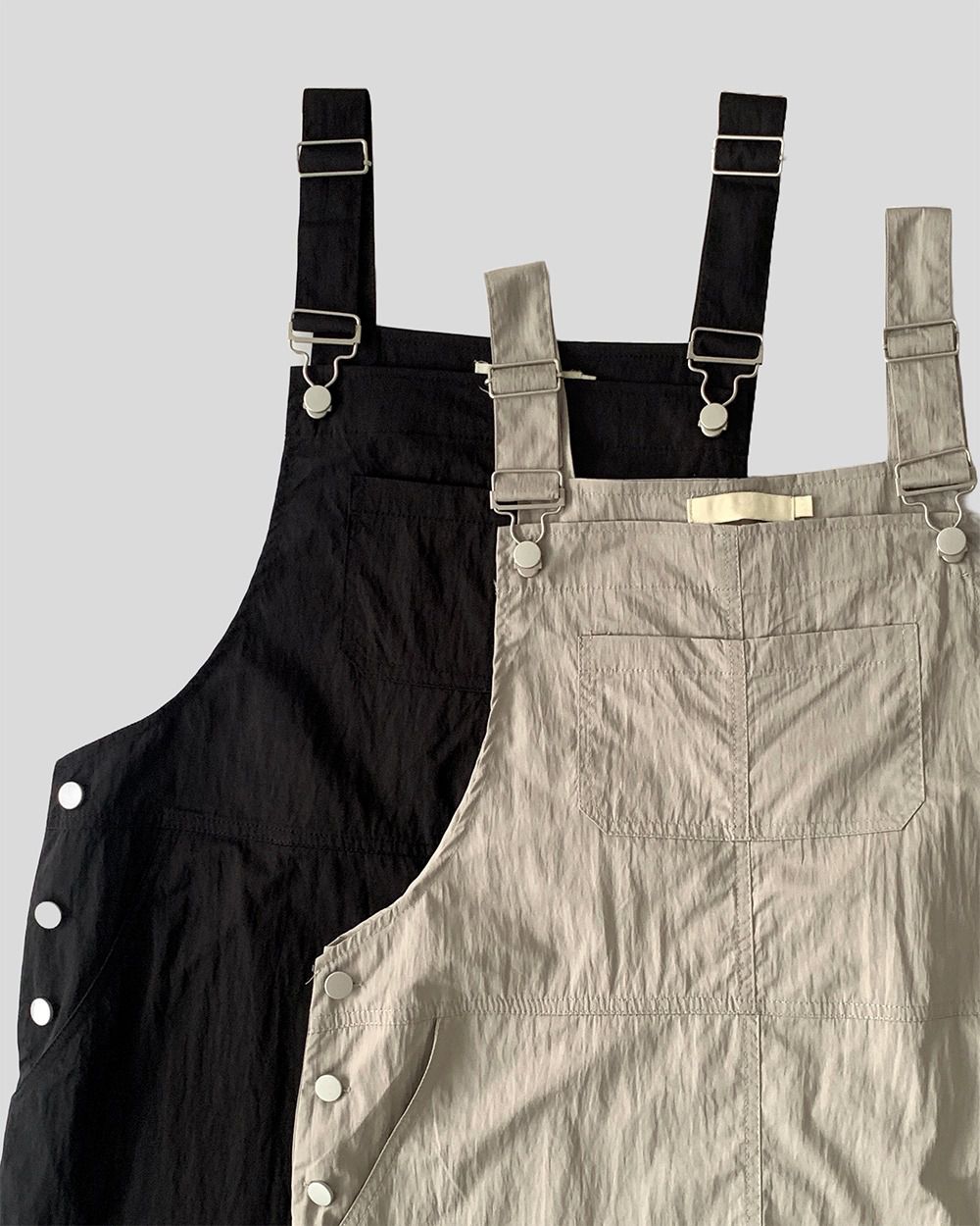【C55084】韓國GLO 平口吊帶裙-素面胸前大口袋可調肩帶無袖連身洋裝★★