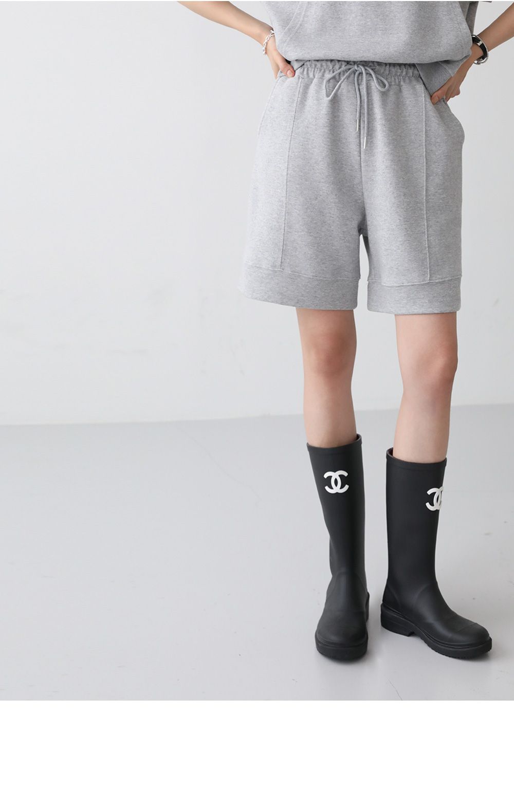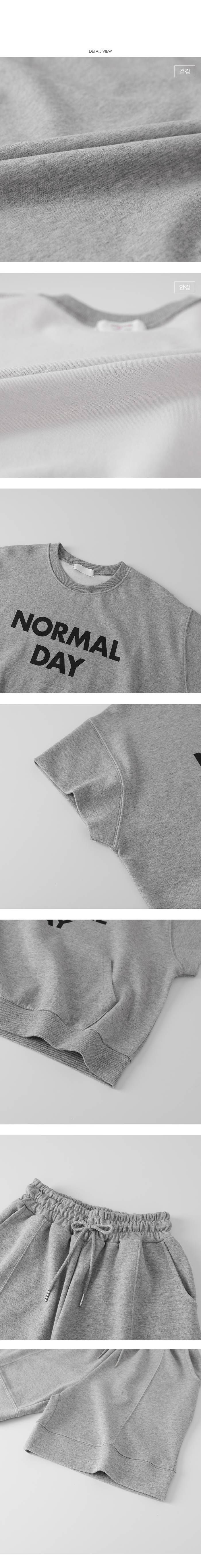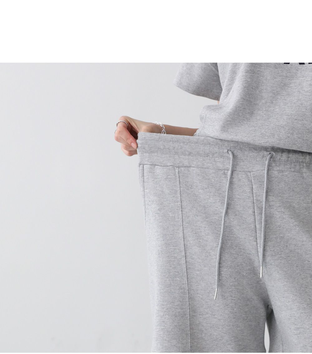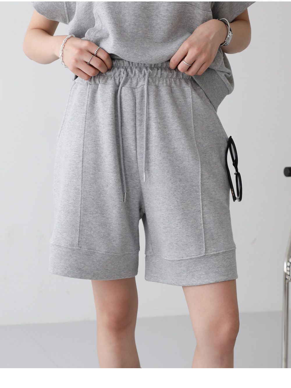 超值兩件組/圓領/寬袖/大口袋上衣/棉質/加寬抽繩鬆緊腰/雙口袋/立體車線短褲 - 大口袋字母套裝短袖上衣出芽車線短褲兩件式套裝灰色奶油色深藍色