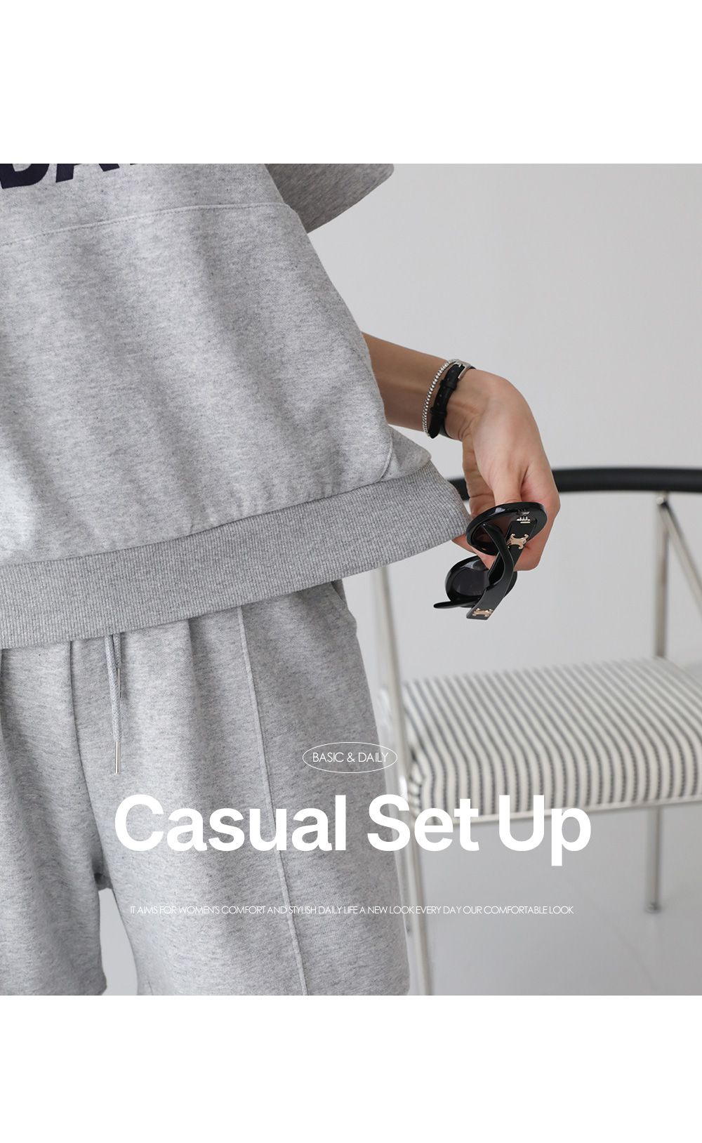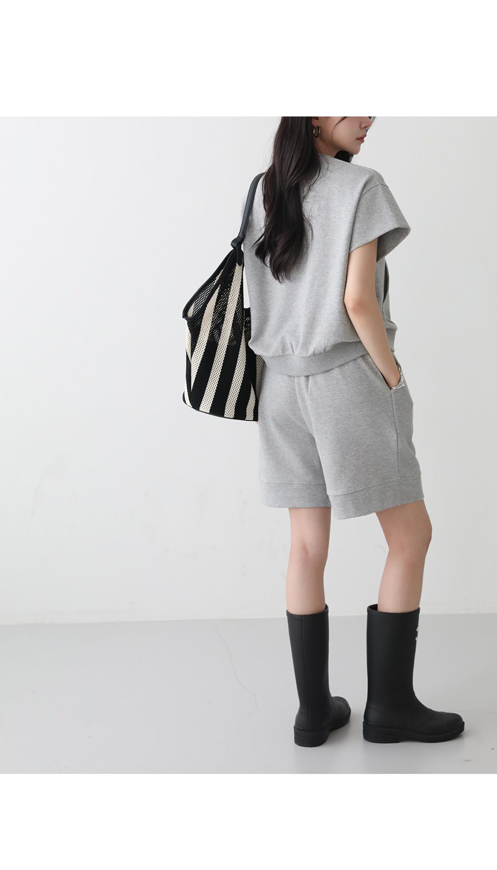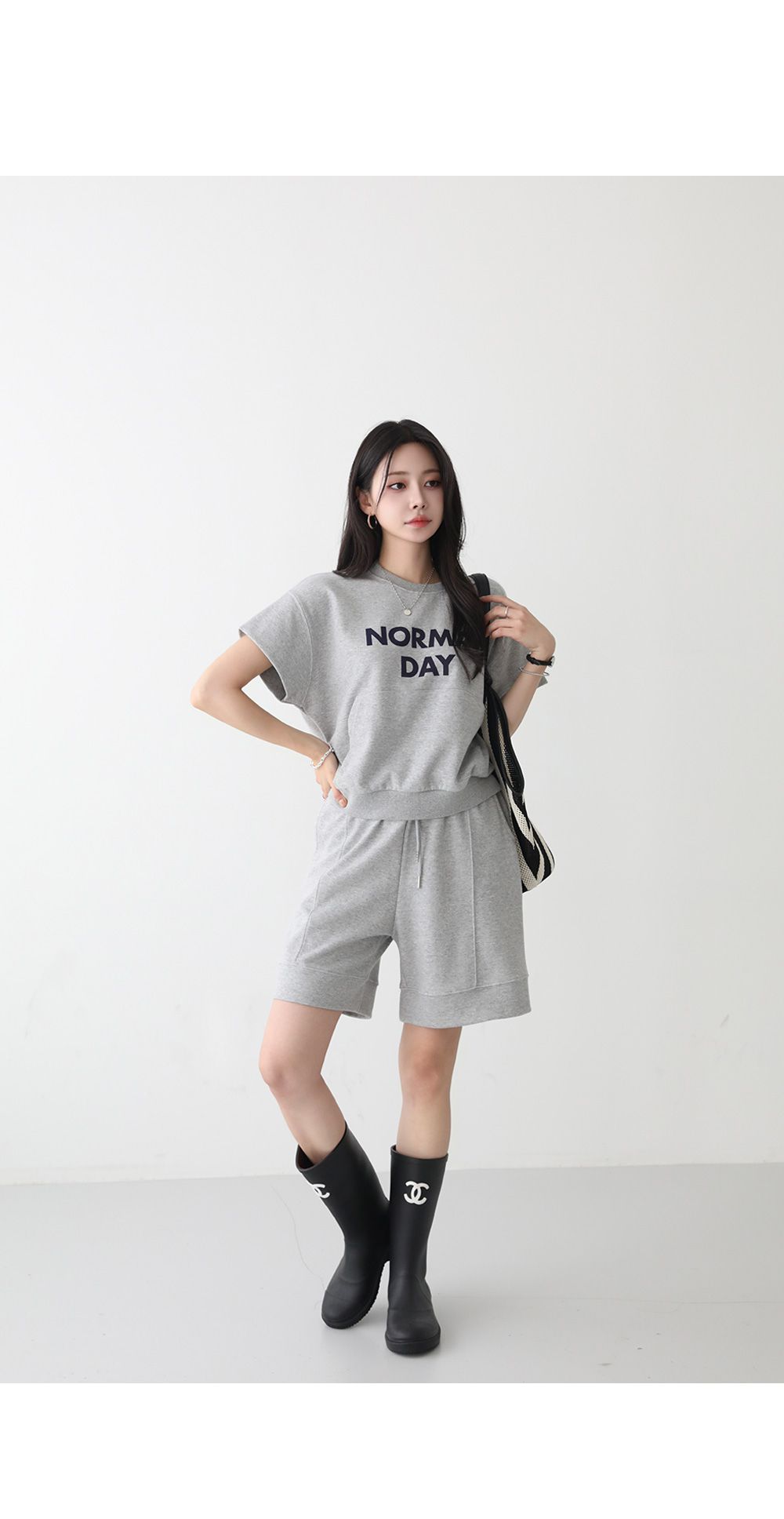 【C55108】韓國PPI 大口袋字母套裝-圓領寬袖短袖上衣+出芽車線短褲★★