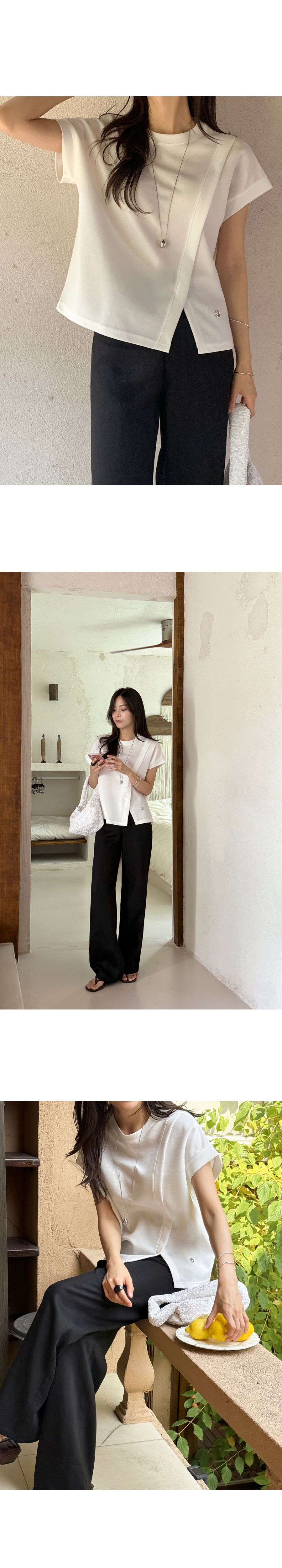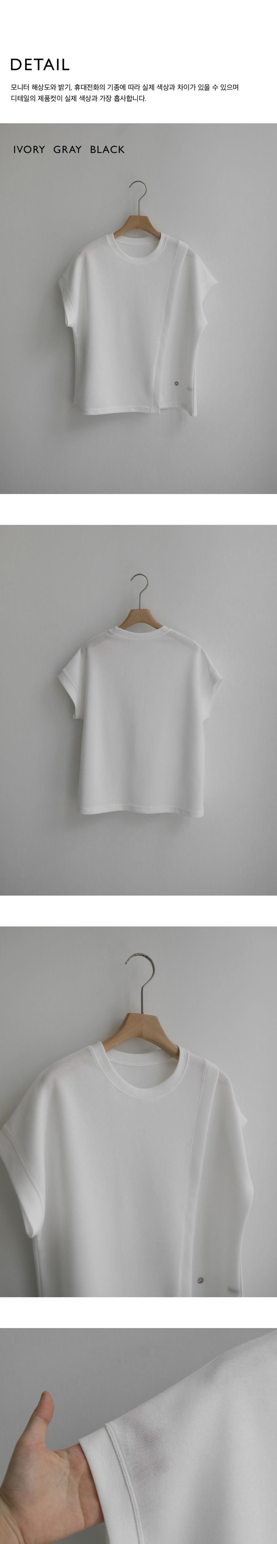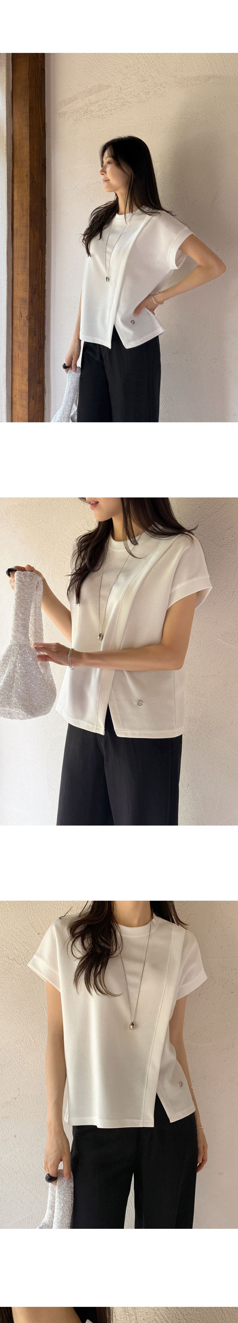 LOGO吊牌/不對稱斜邊開衩/圓領/連肩袖 - 休閒居家簡約百搭素面斜切開衩T恤上衣短袖上衣白色深灰色黑色