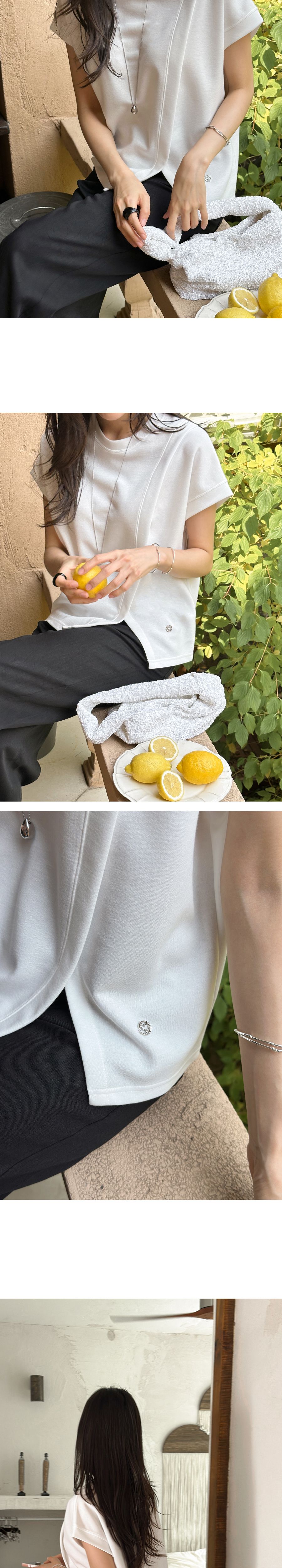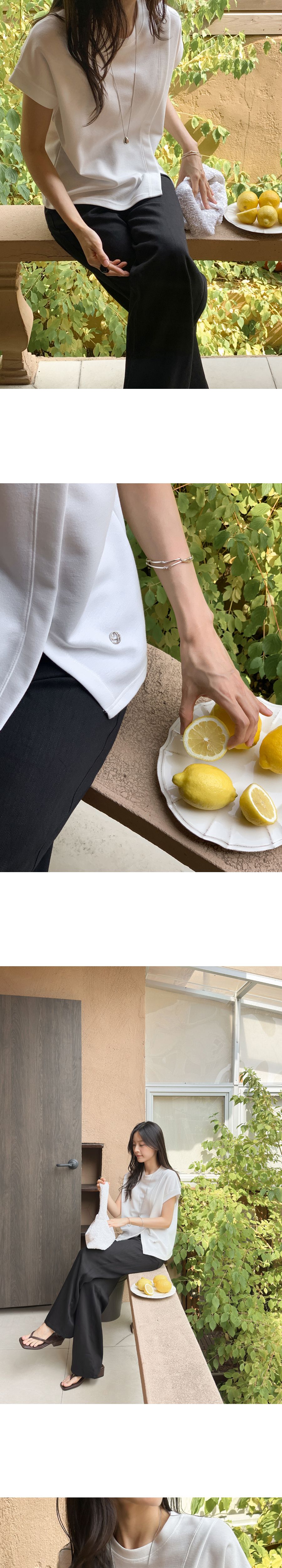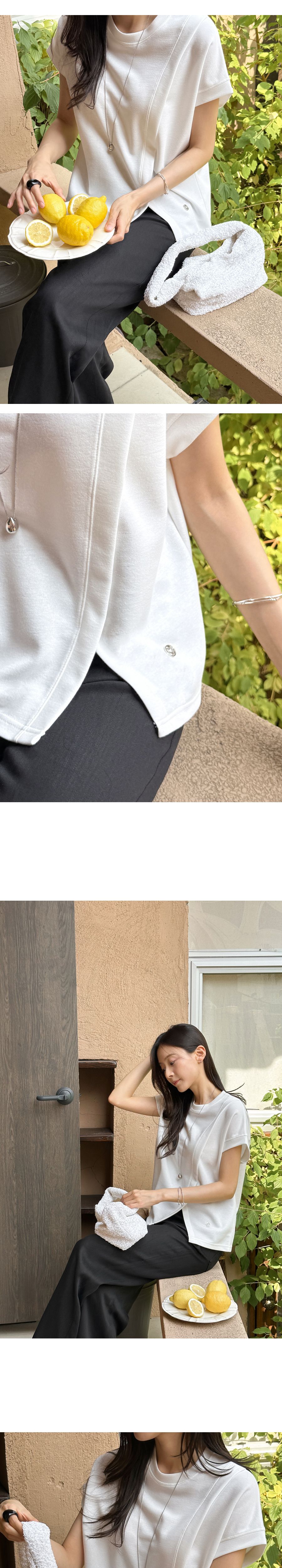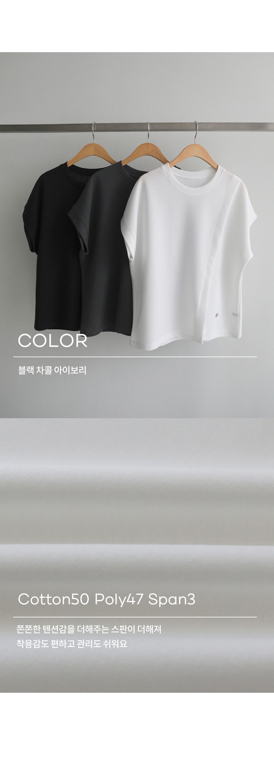 LOGO吊牌/不對稱斜邊開衩/圓領/連肩袖 - 休閒居家簡約百搭素面斜切開衩T恤上衣短袖上衣白色深灰色黑色