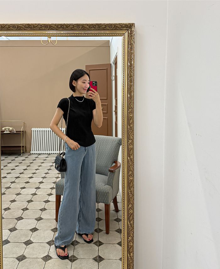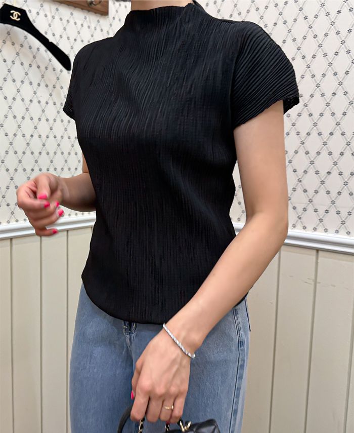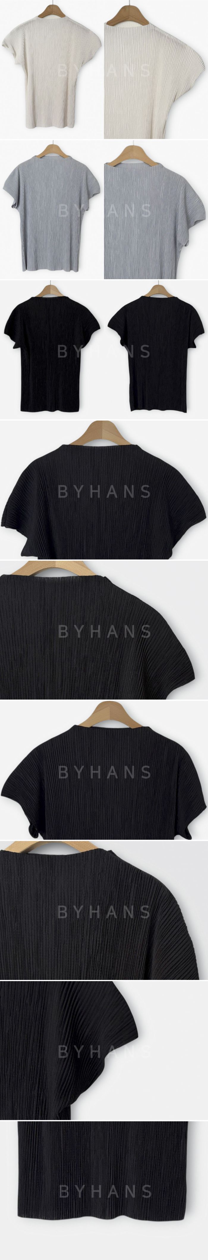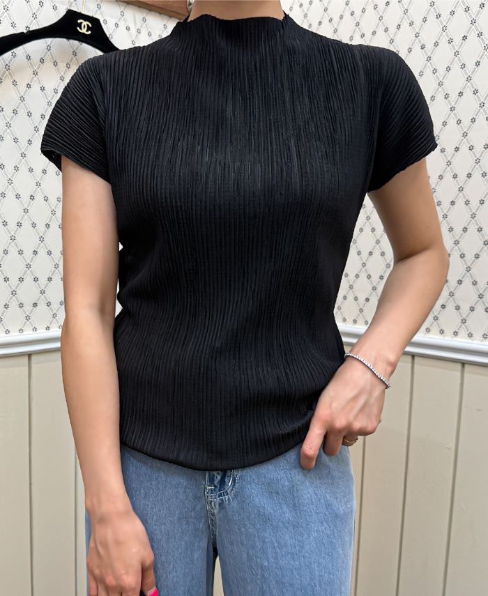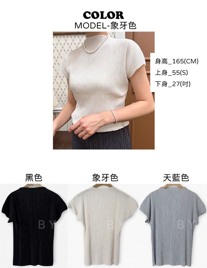 【C55122】韓國BYH 褶襉立領上衣-素面高領不收邊連肩袖短袖T恤★★