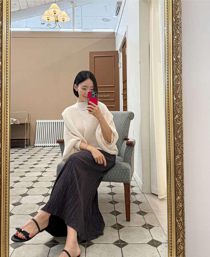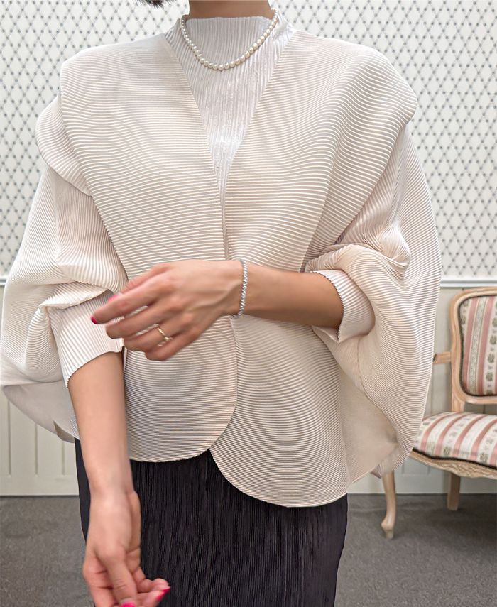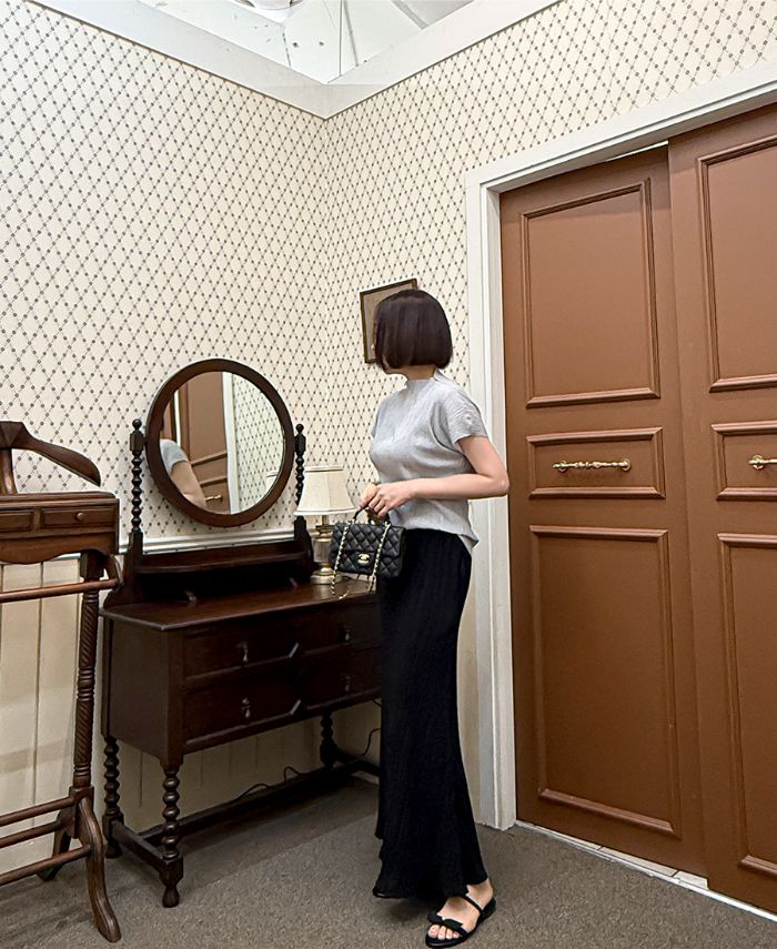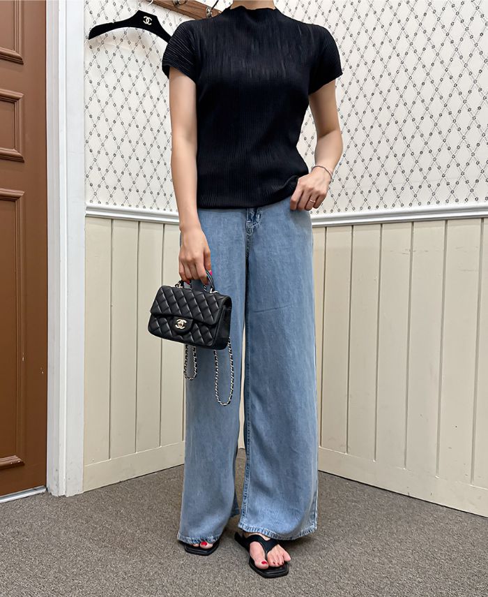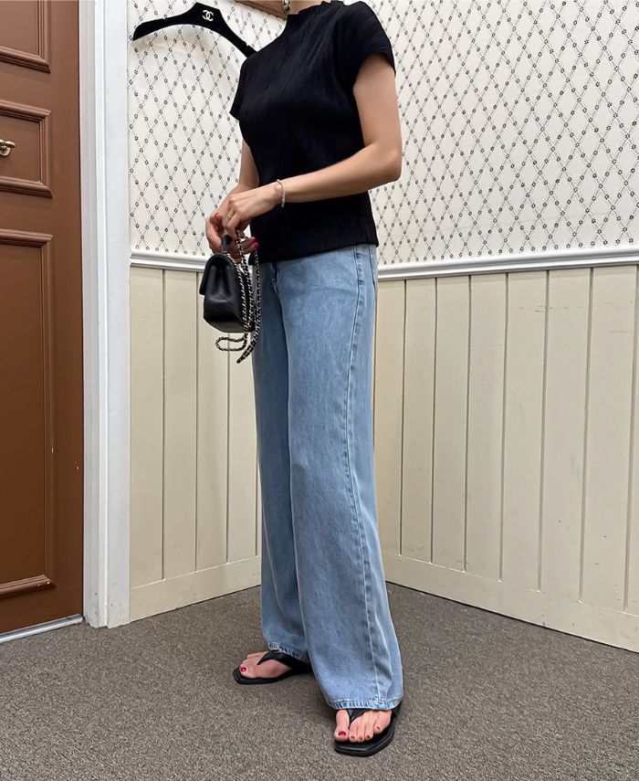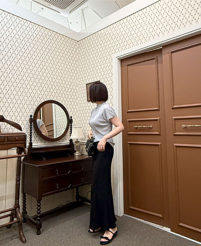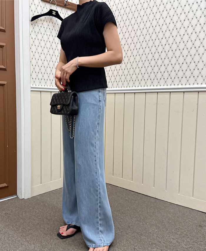 【C55122】韓國BYH 褶襉立領上衣-素面高領不收邊連肩袖短袖T恤★★