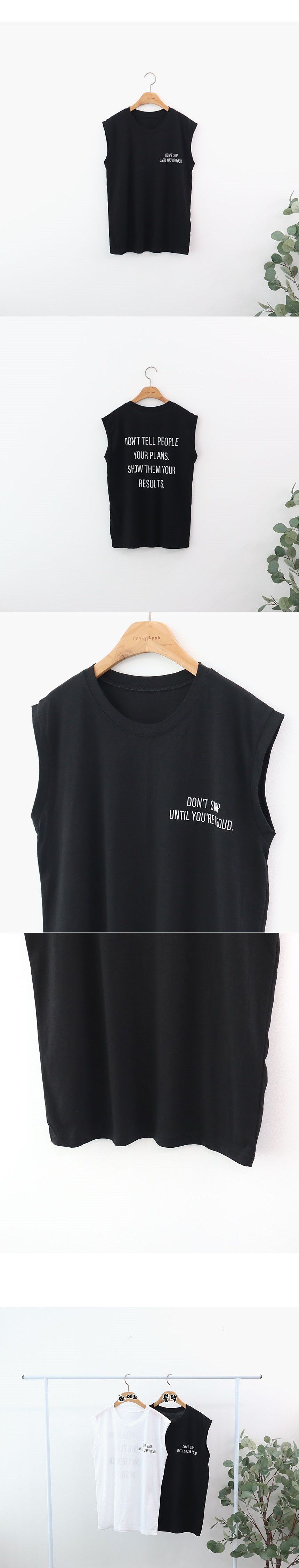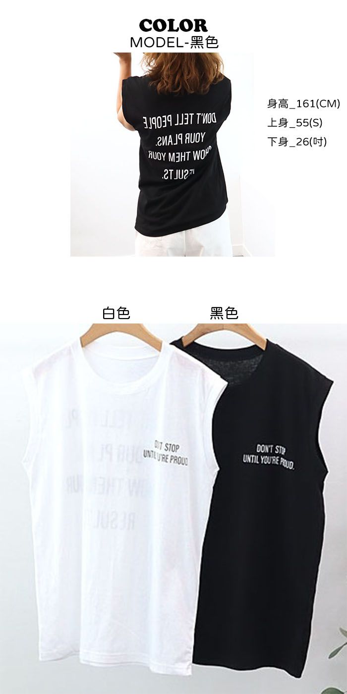 圓領/膠印字母/個性英文/連肩袖/寬肩無袖/輕薄面料 - 休閒居家英文字母上衣字母T恤細線字母背心上衣無袖上衣黑色白色
