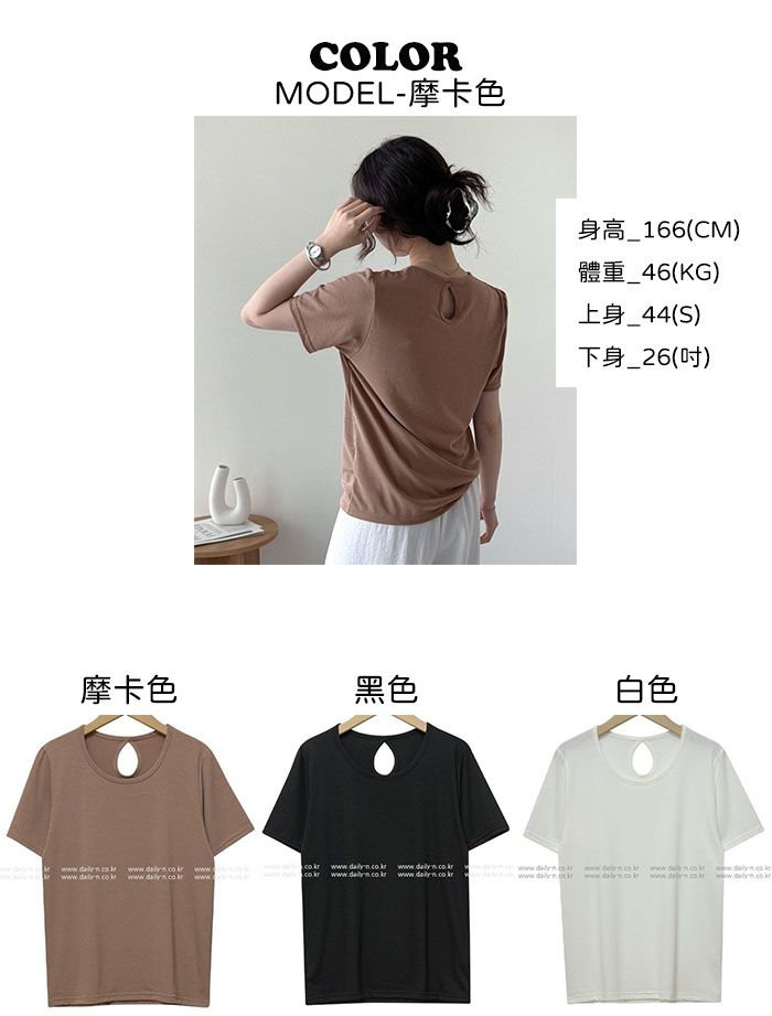 【C55141】韓國DLY 後背挖洞上衣-素面圓領美背縷空合身短袖T恤