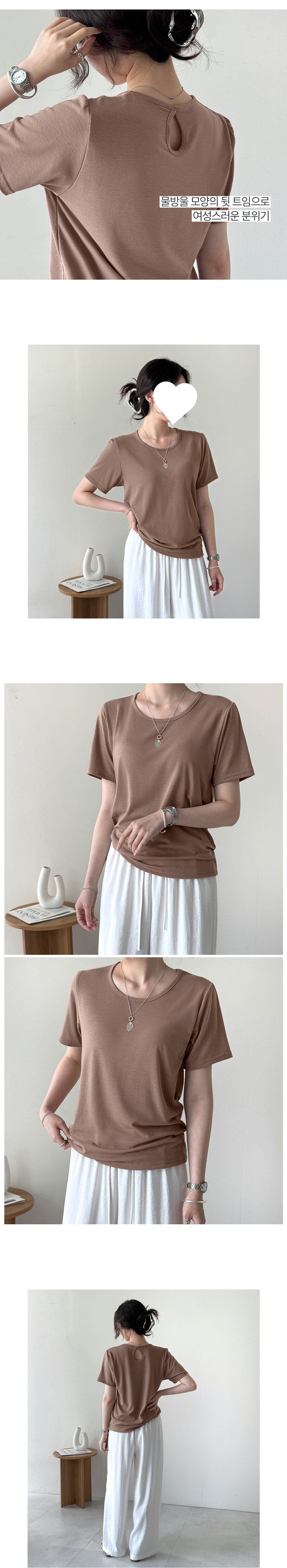 美背縷空/露背上衣/圓領/合身內搭上衣 - 休閒居家簡約百搭素面後背挖洞上衣短袖T恤短袖上衣摩卡色黑色白色