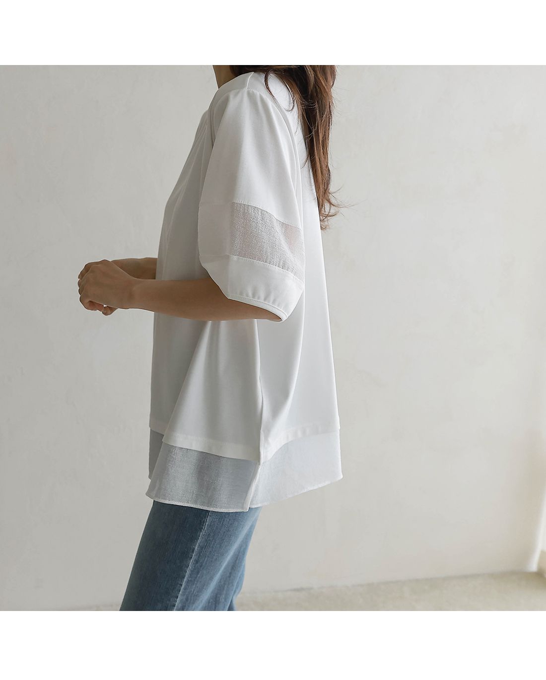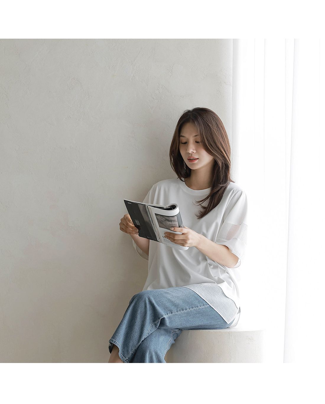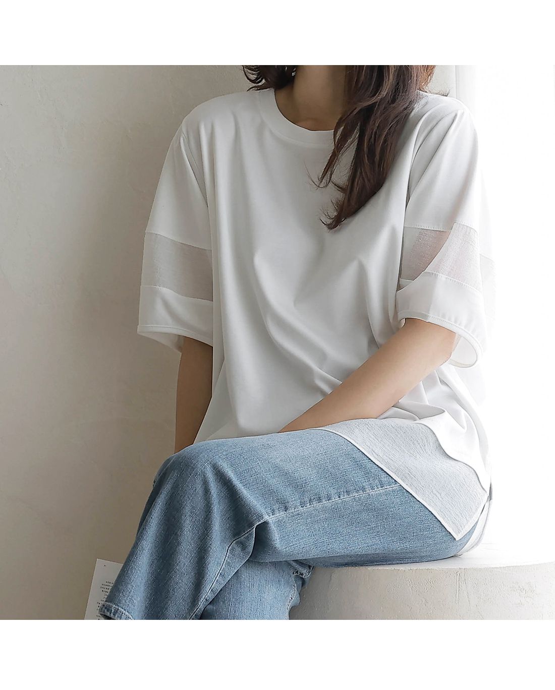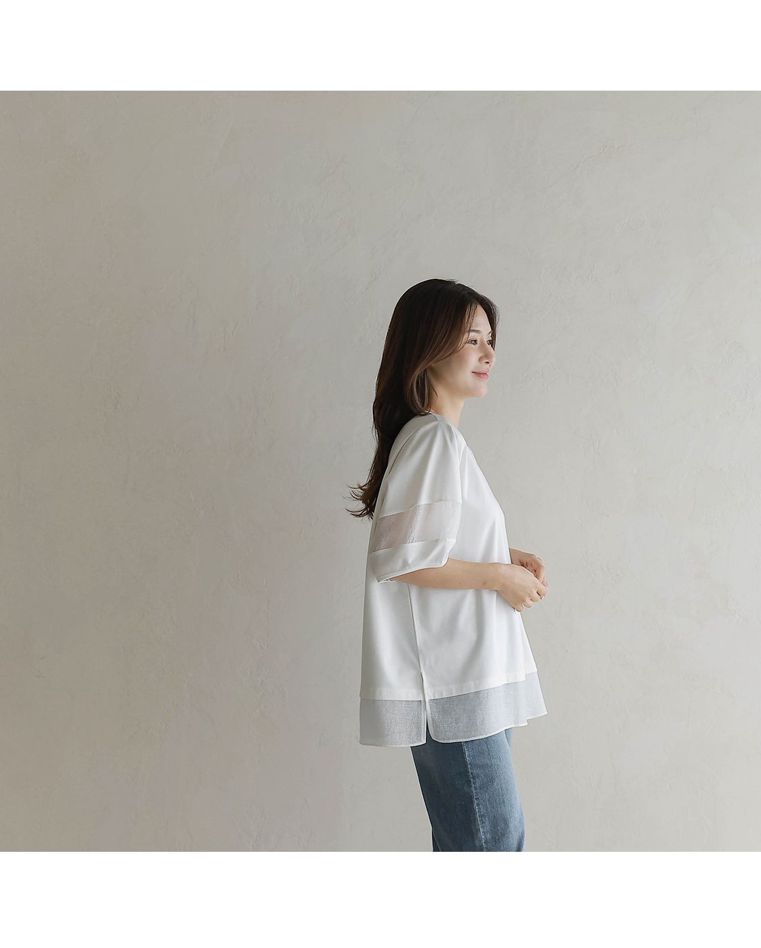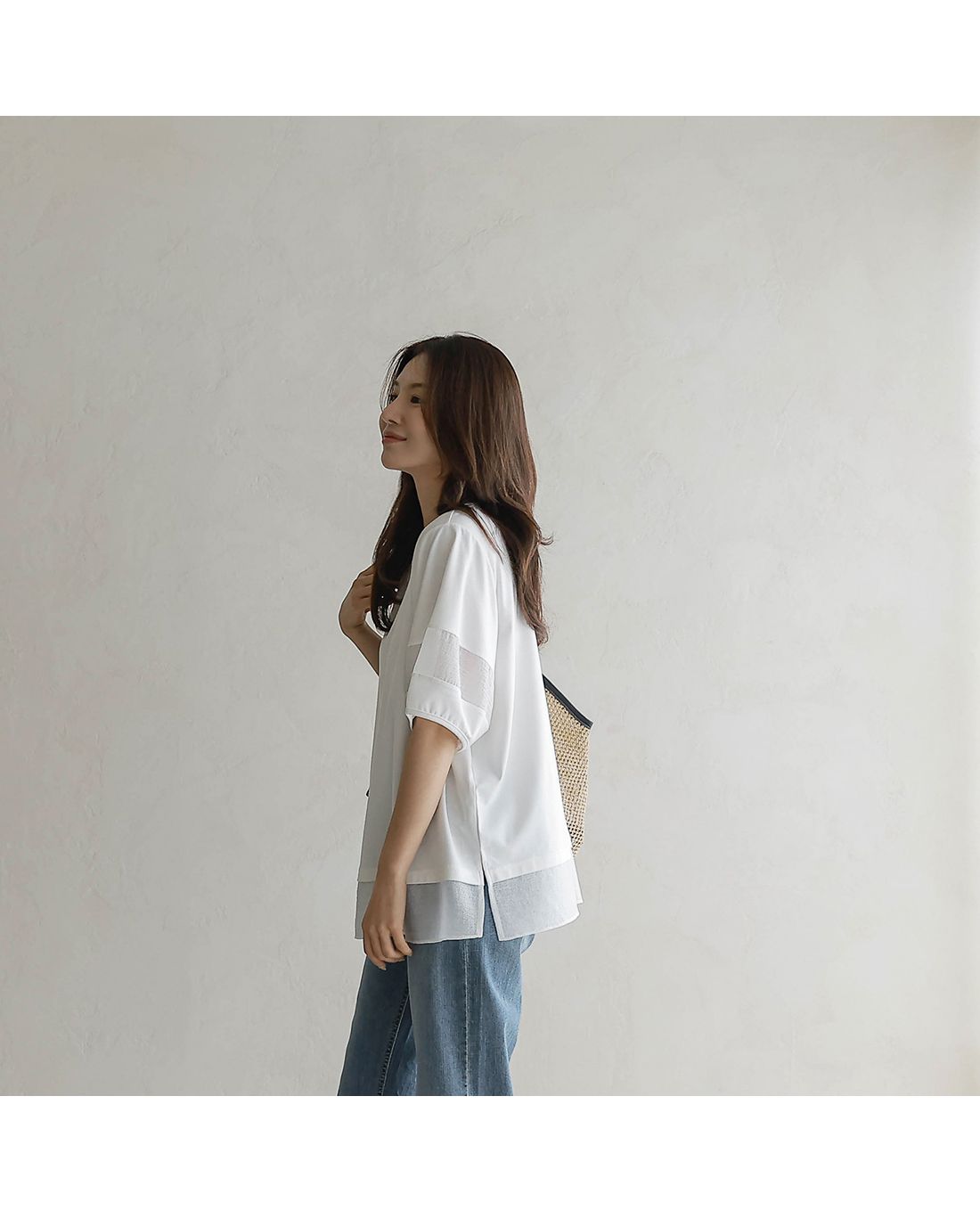 透紗拼接袖上衣呈現出柔軟又不失精神的線條感