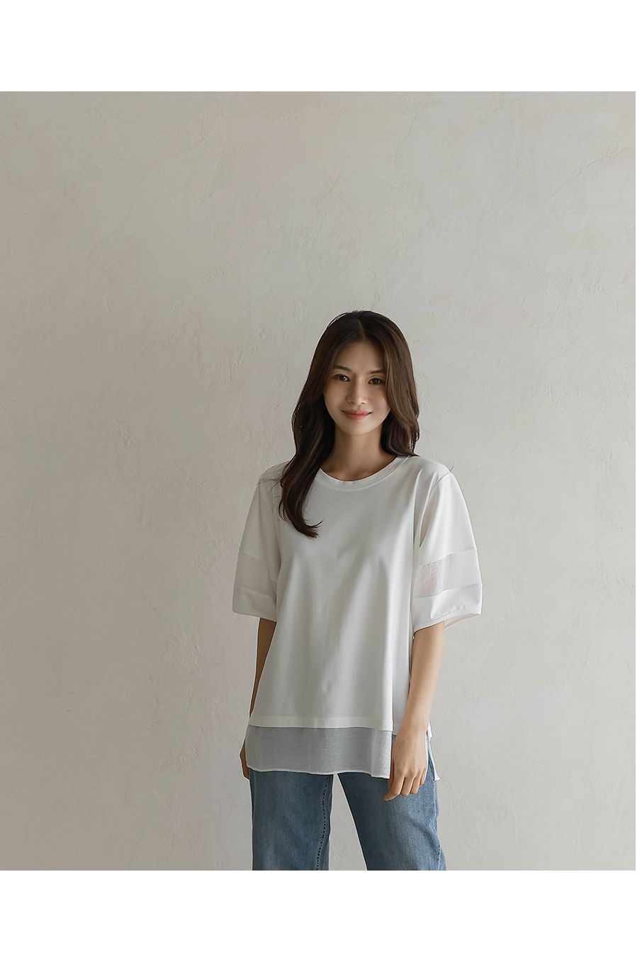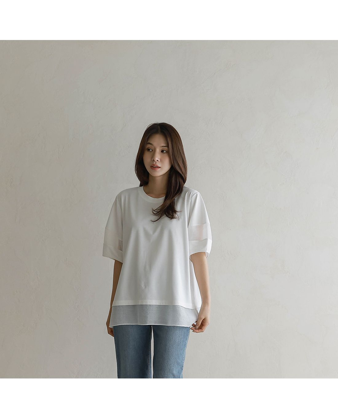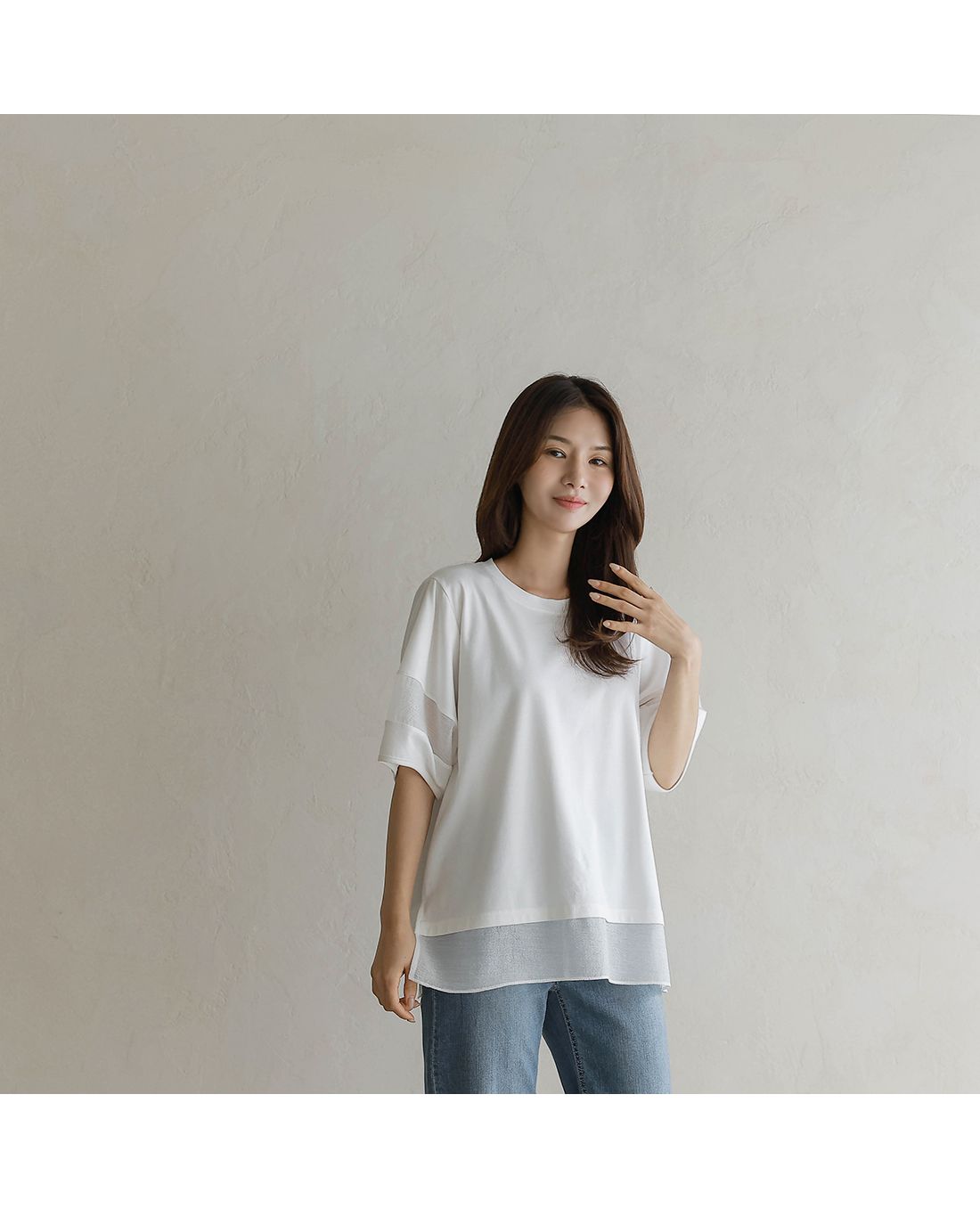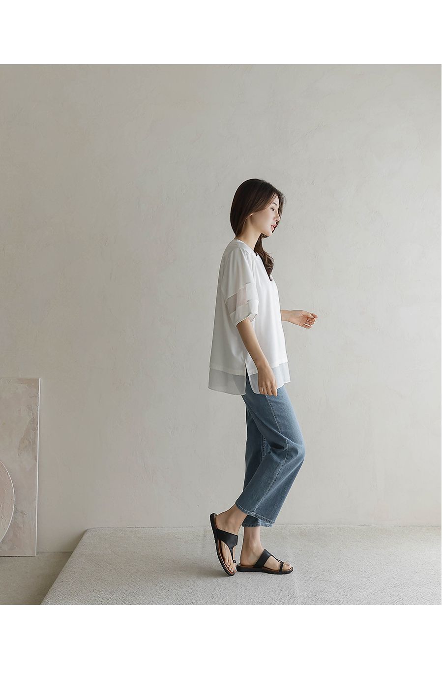 透紗拼接袖上衣呈現出柔軟又不失精神的線條感