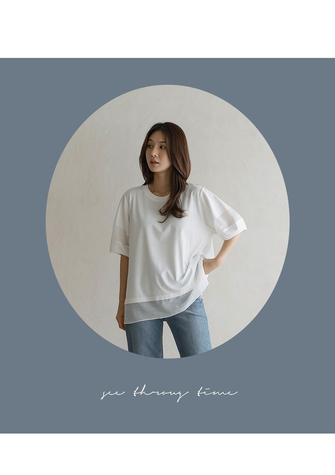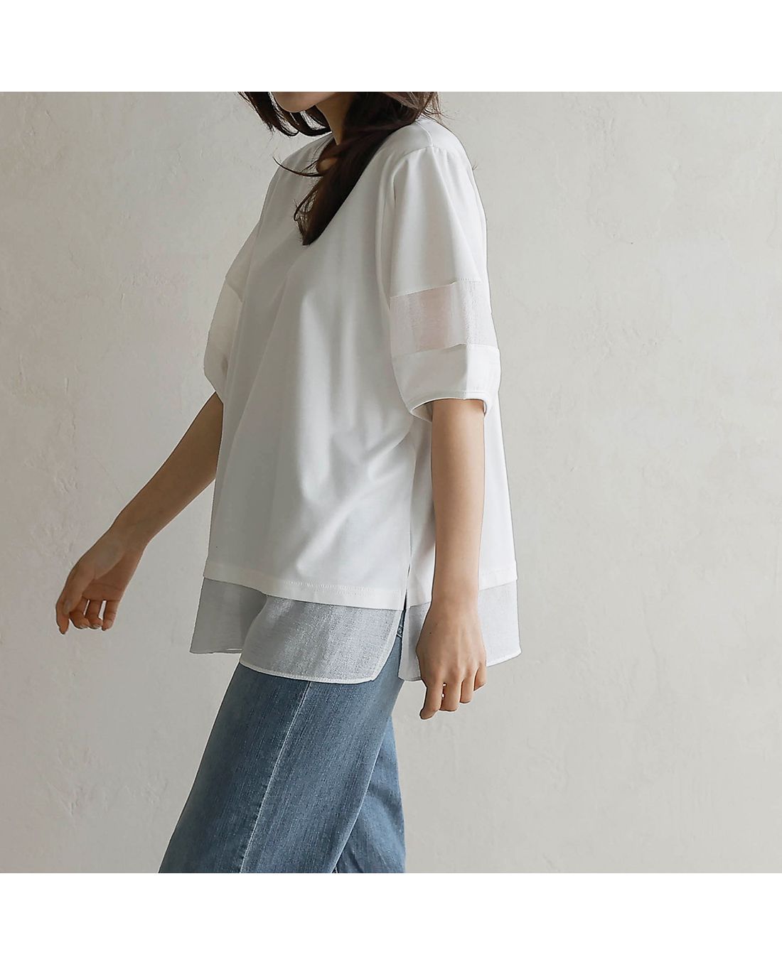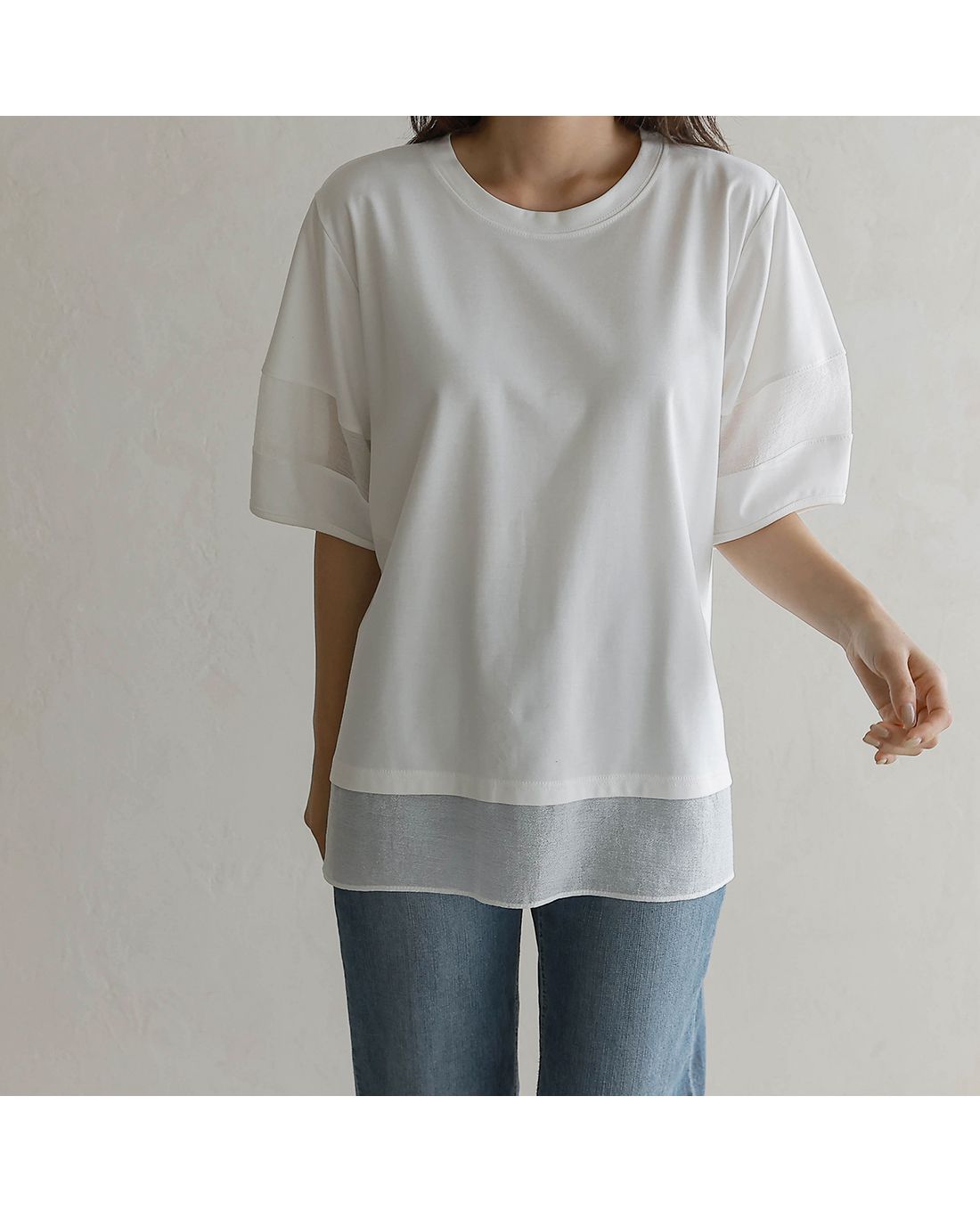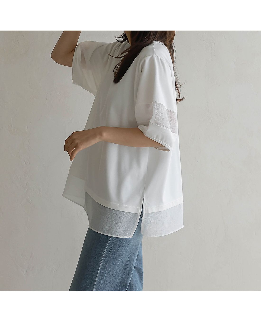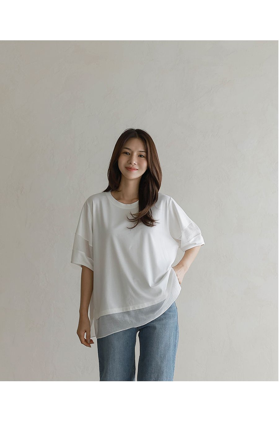 透紗拼接袖上衣呈現出柔軟又不失精神的線條感