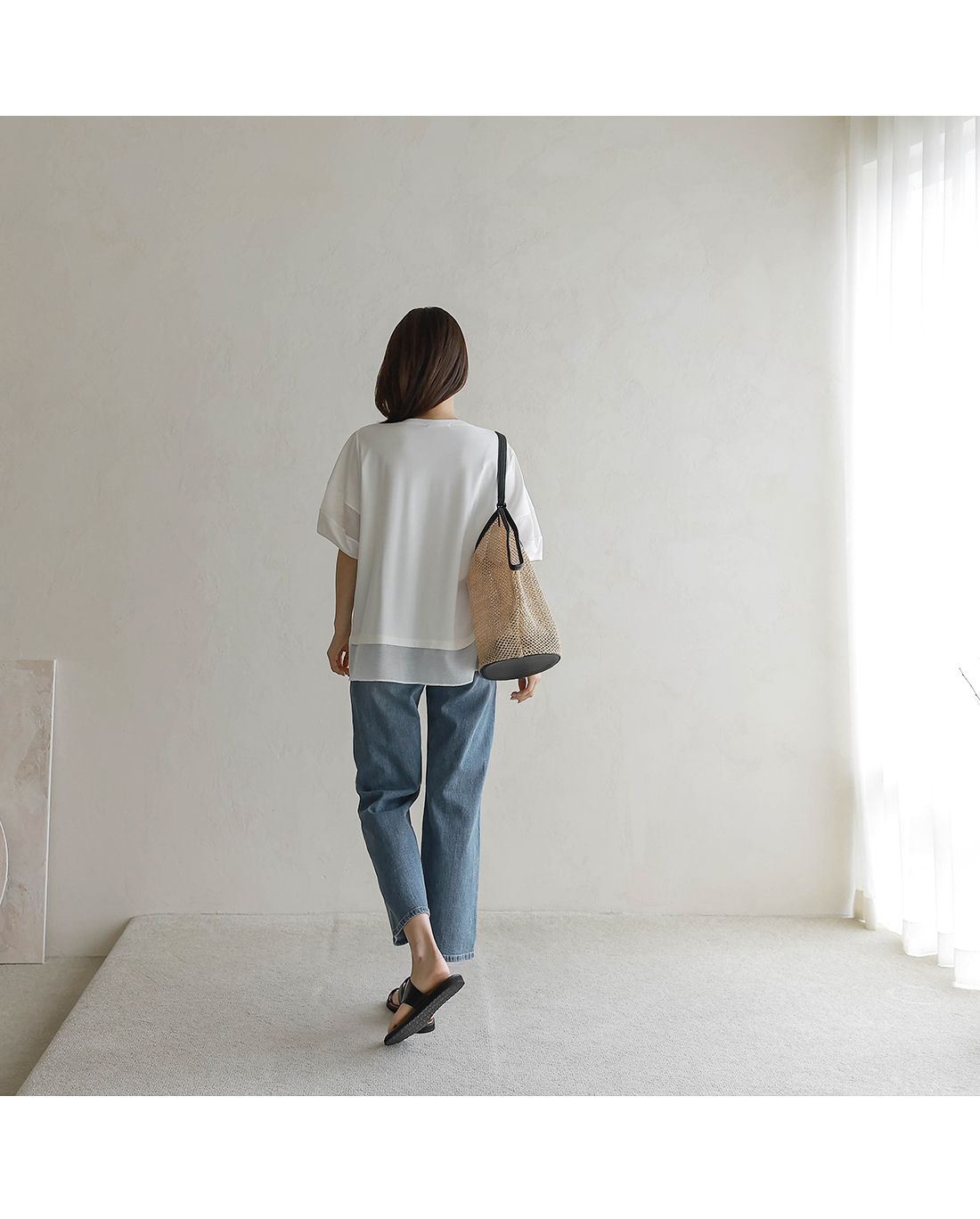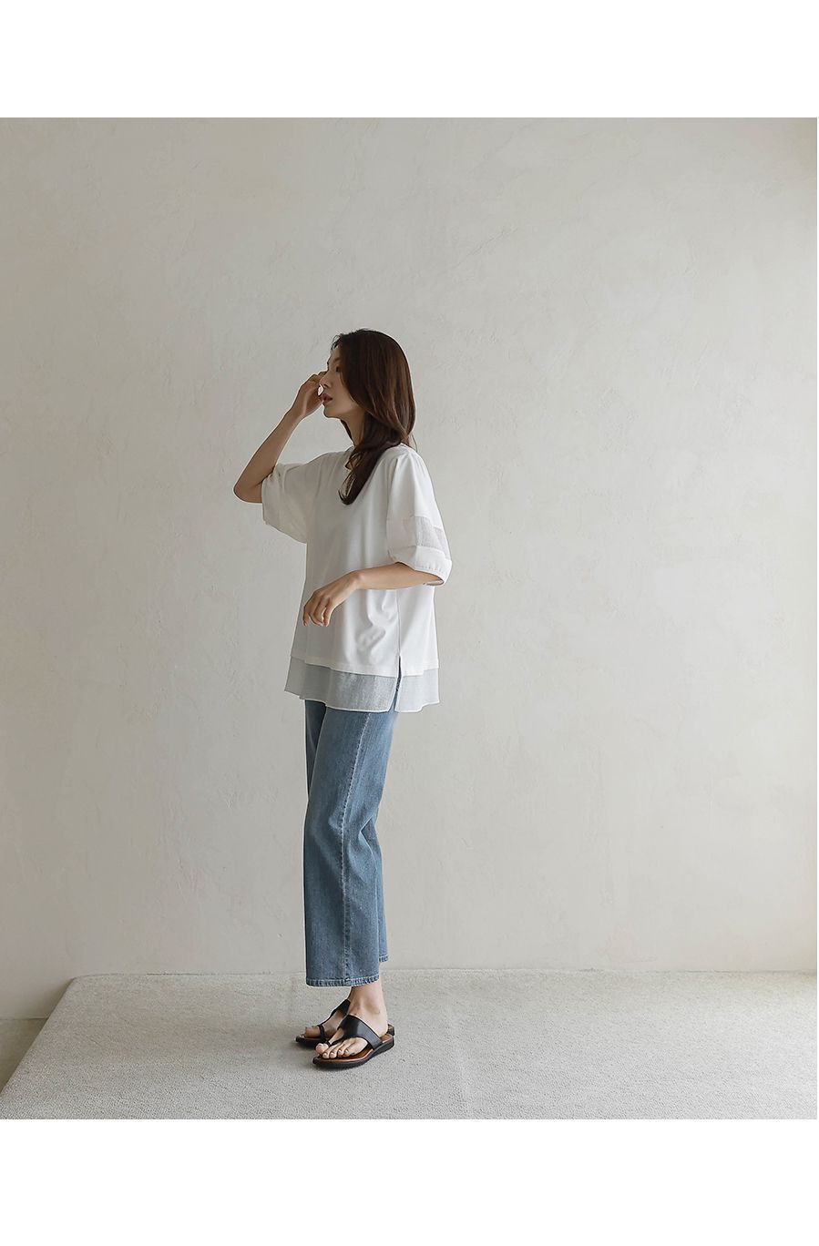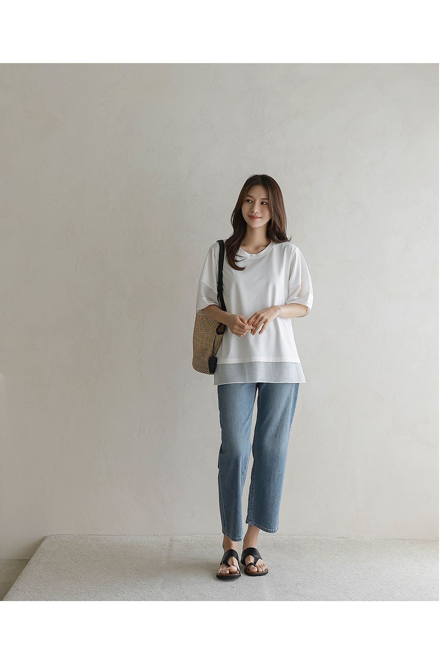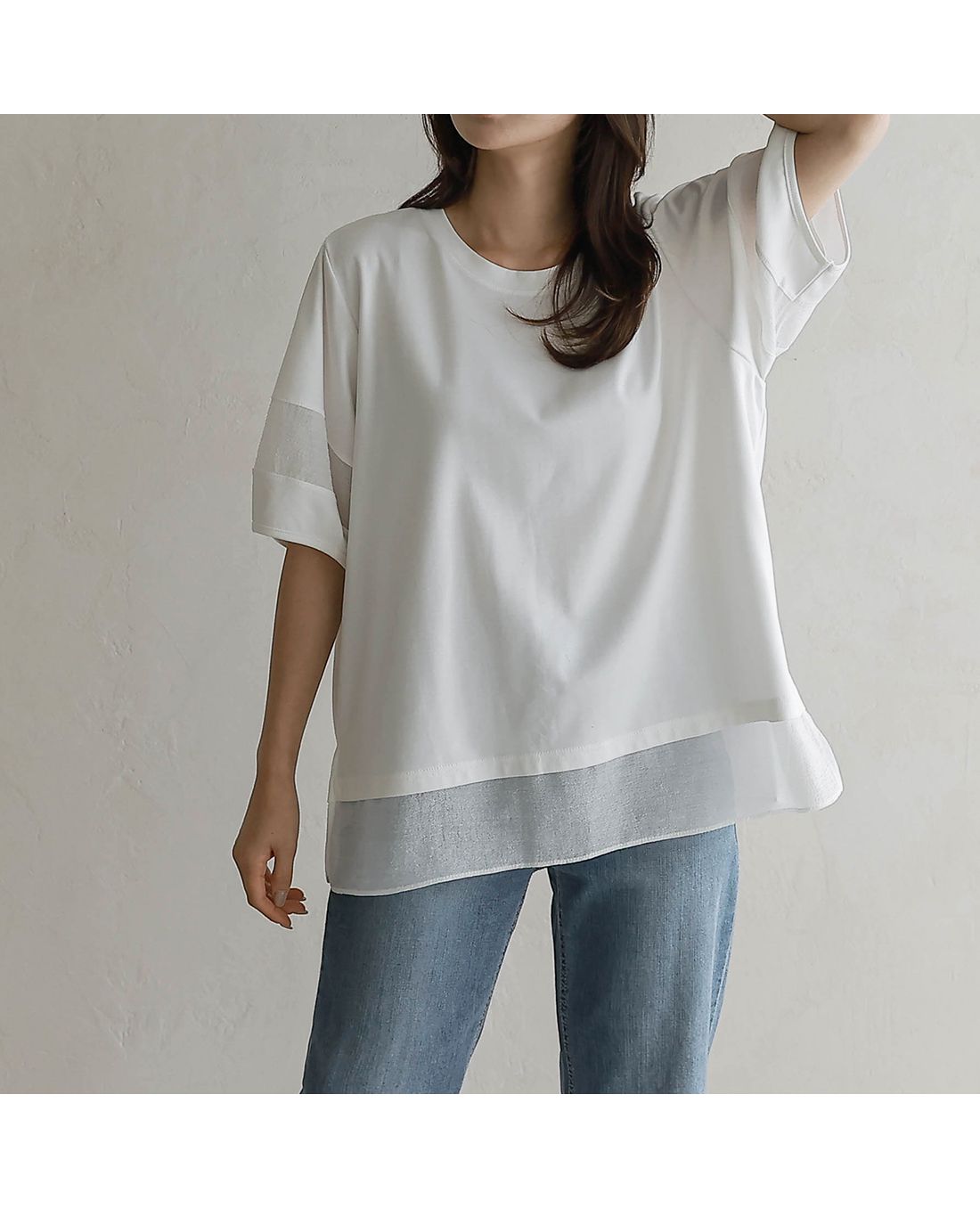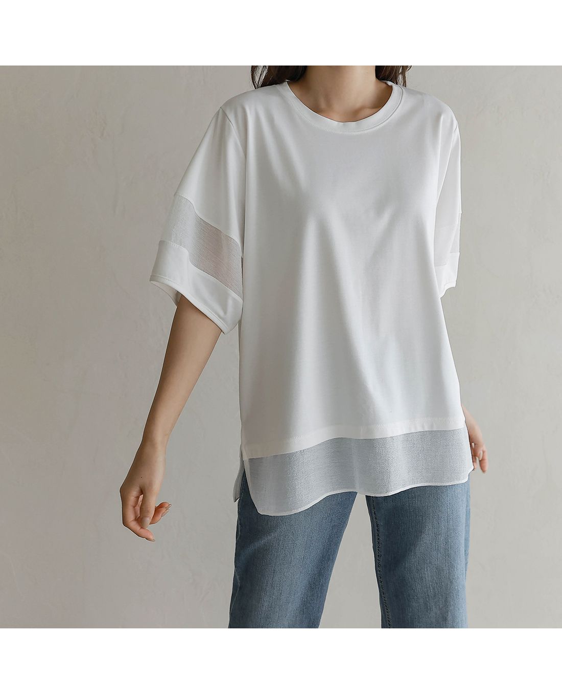 透紗拼接袖上衣呈現出柔軟又不失精神的線條感