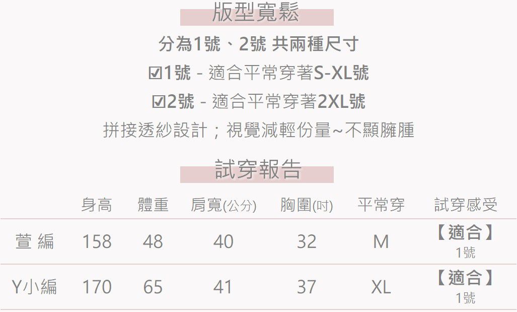 共推出兩種尺寸: 1號 / 2號 XL–2XL