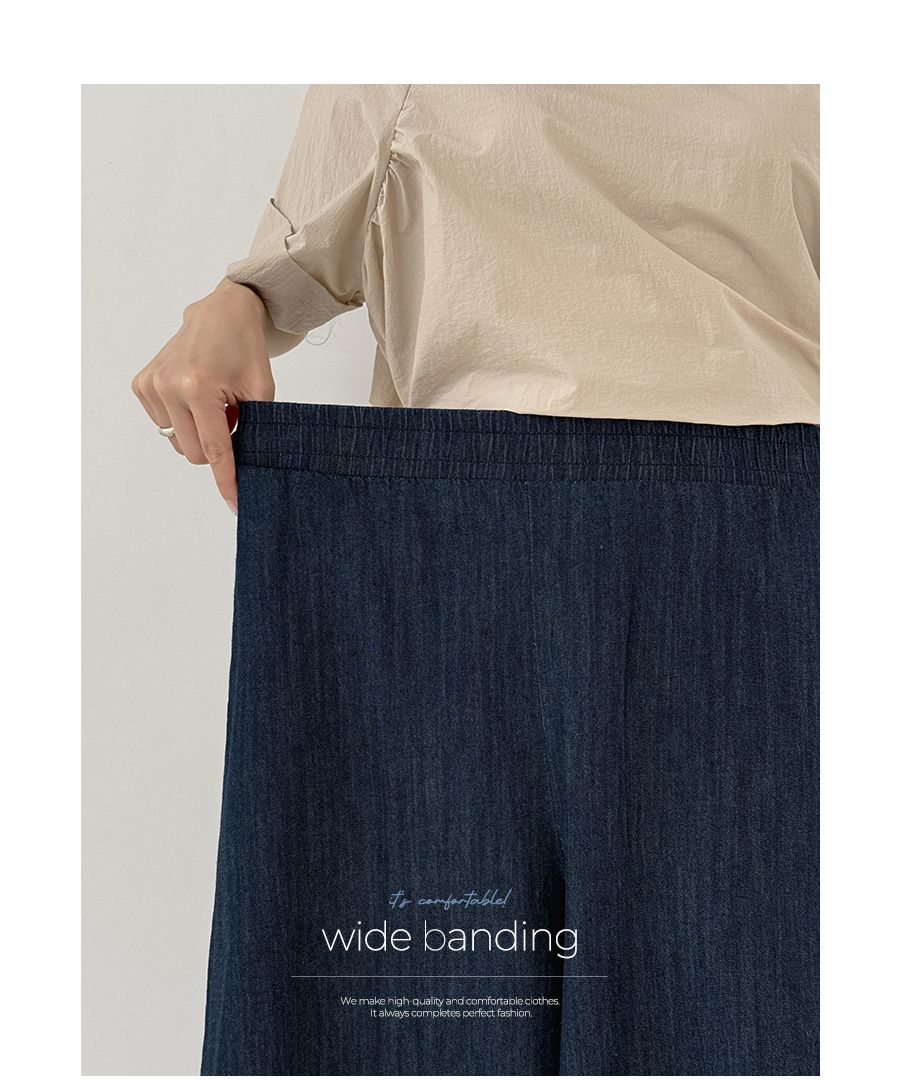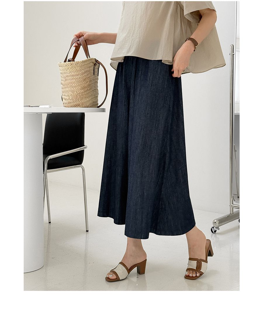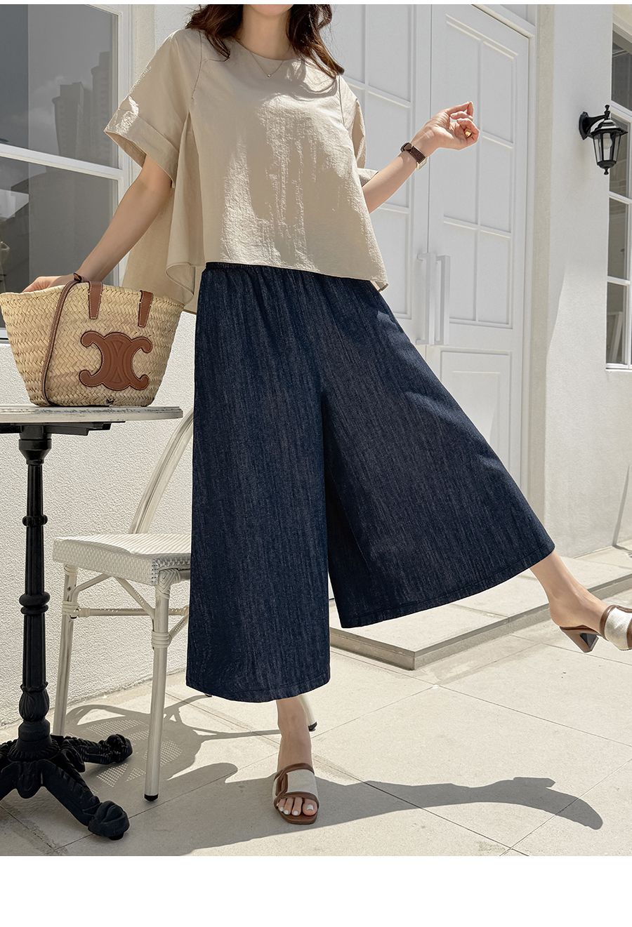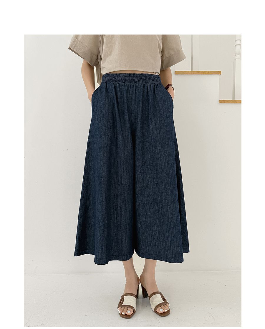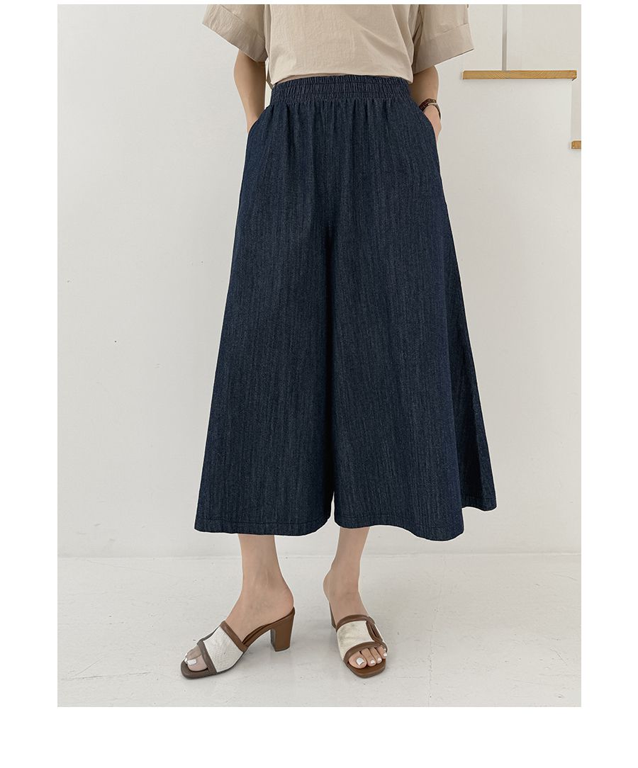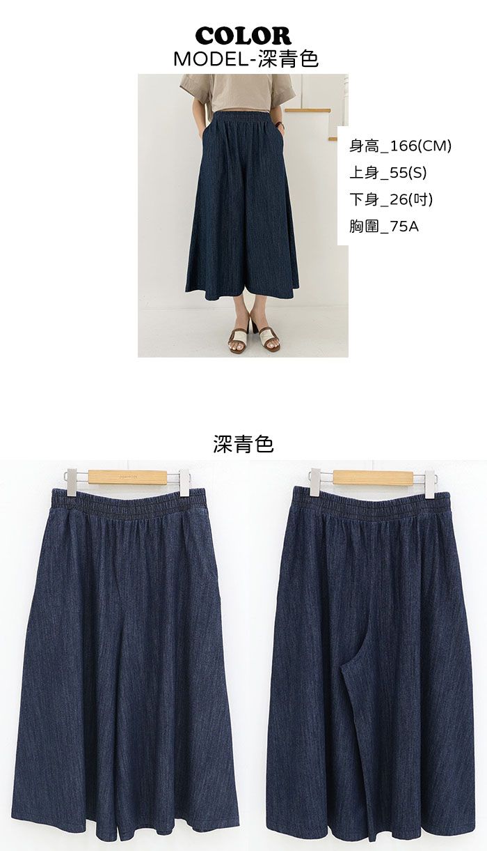 【C55144】韓國JOA 棉質牛仔寬褲-素面全腰鬆緊寬鬆A字雙口袋八分褲★★
