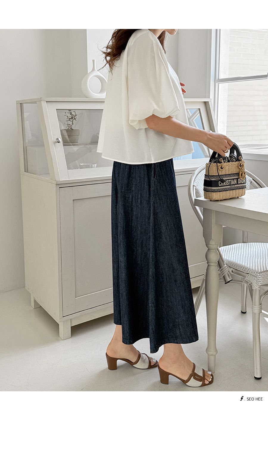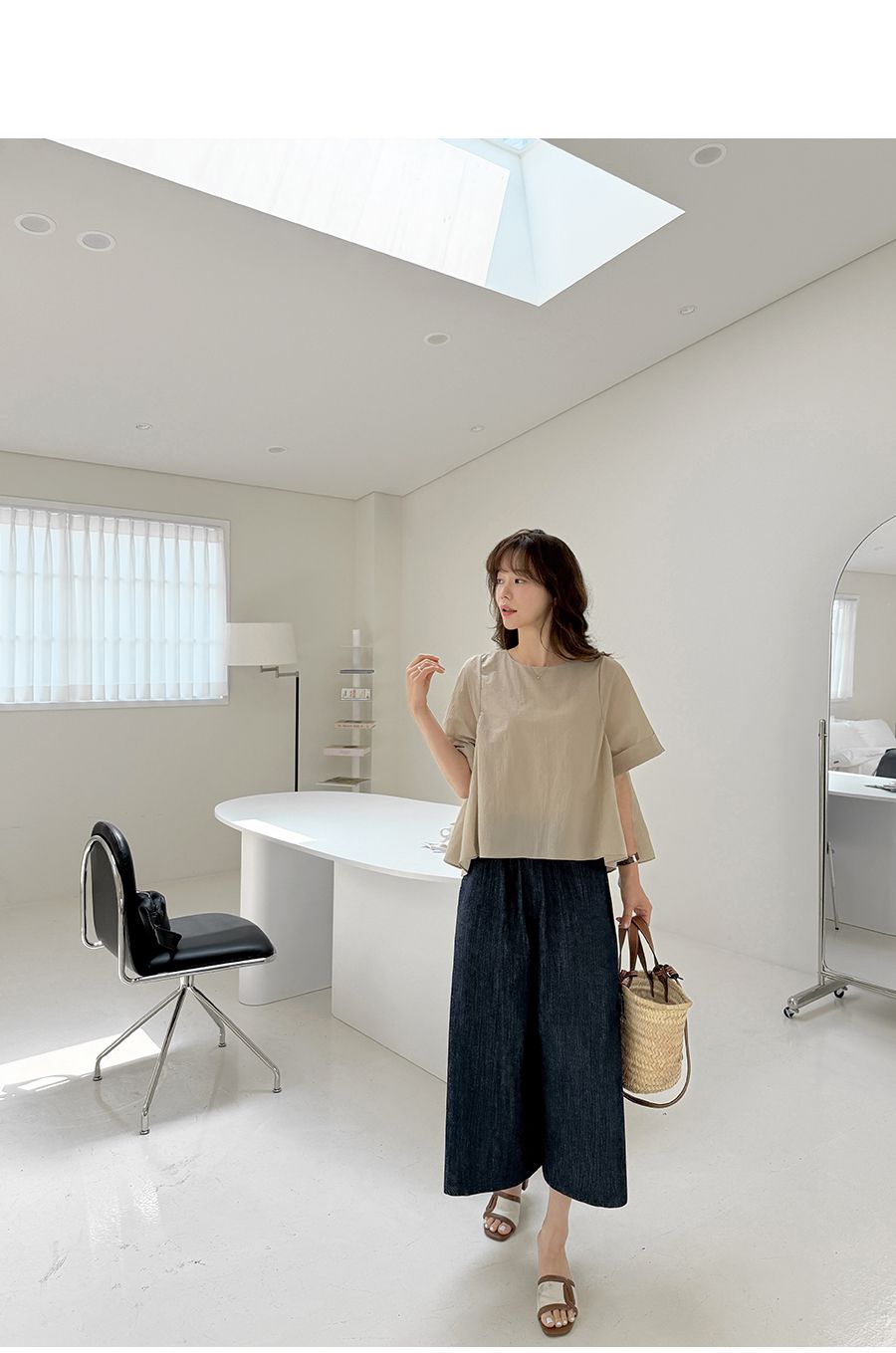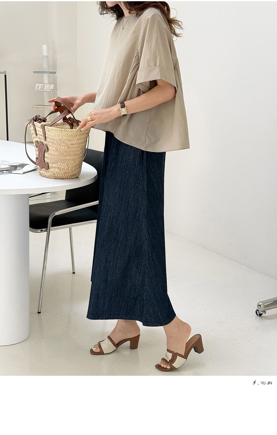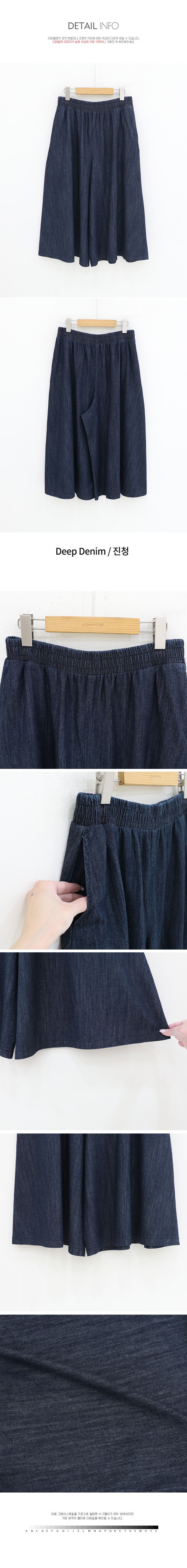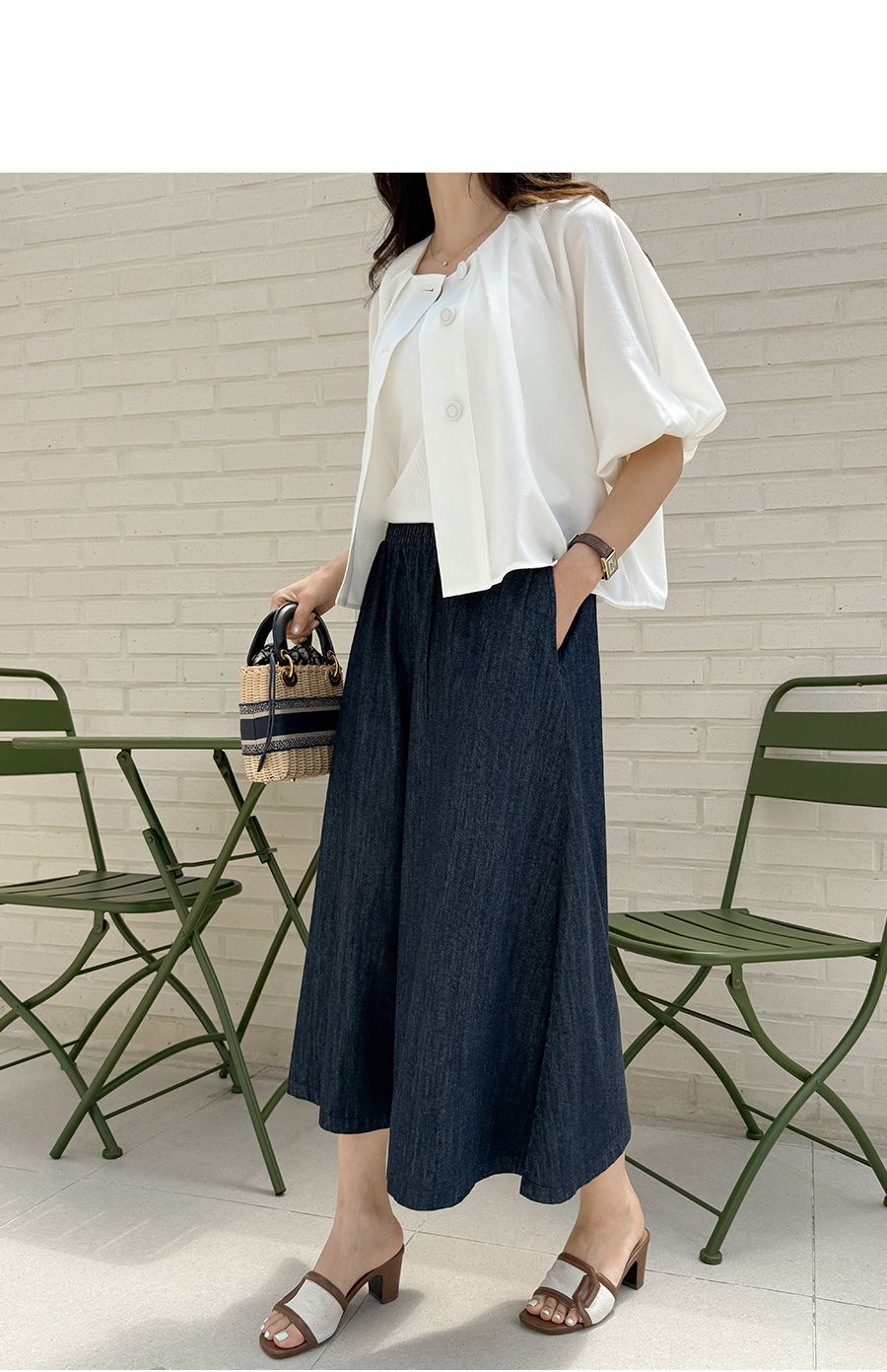 【C55144】韓國JOA 棉質牛仔寬褲-素面全腰鬆緊寬鬆A字雙口袋八分褲★★