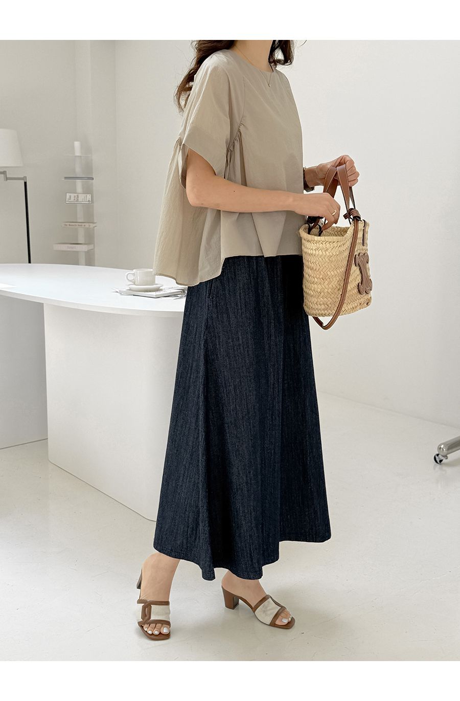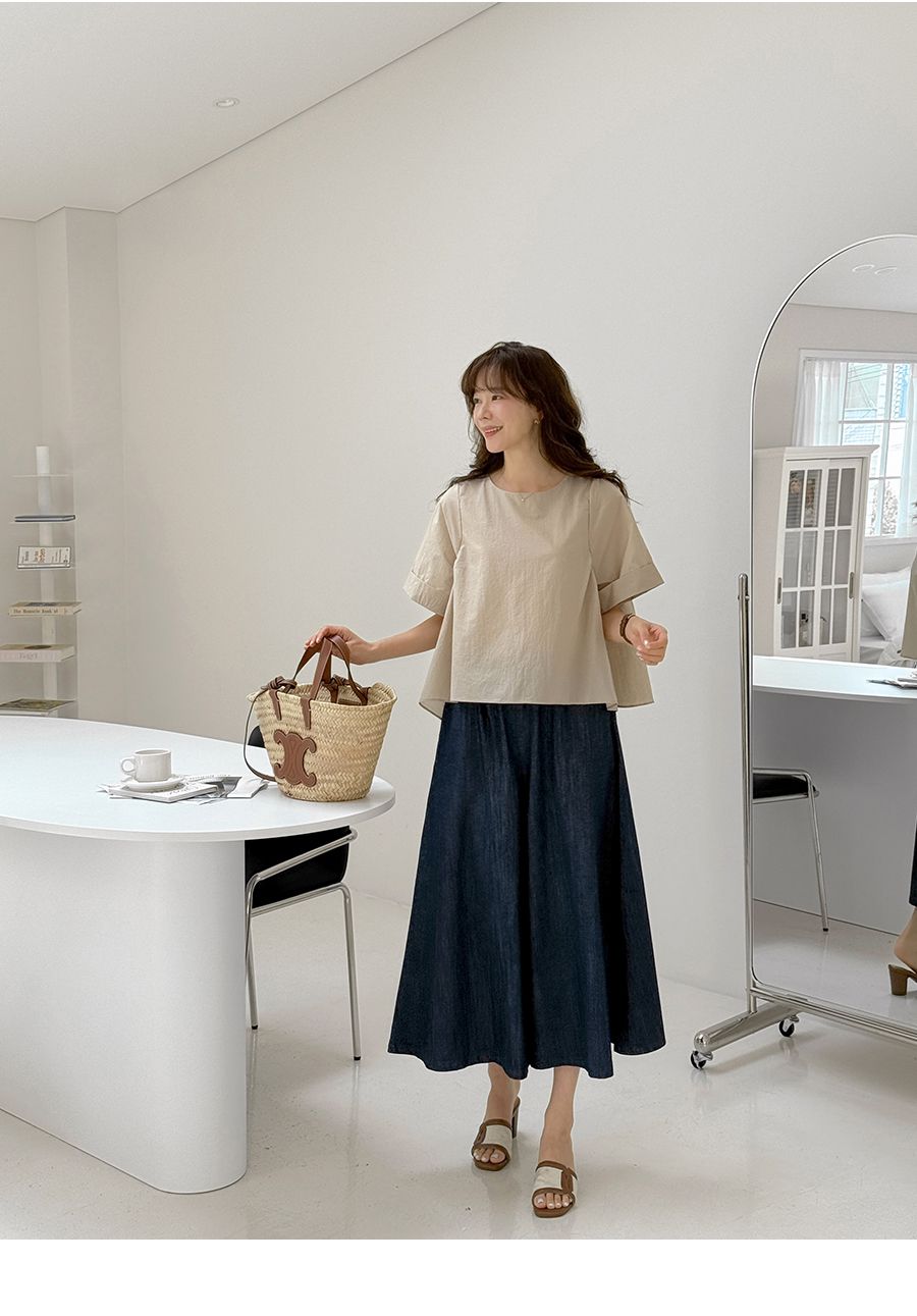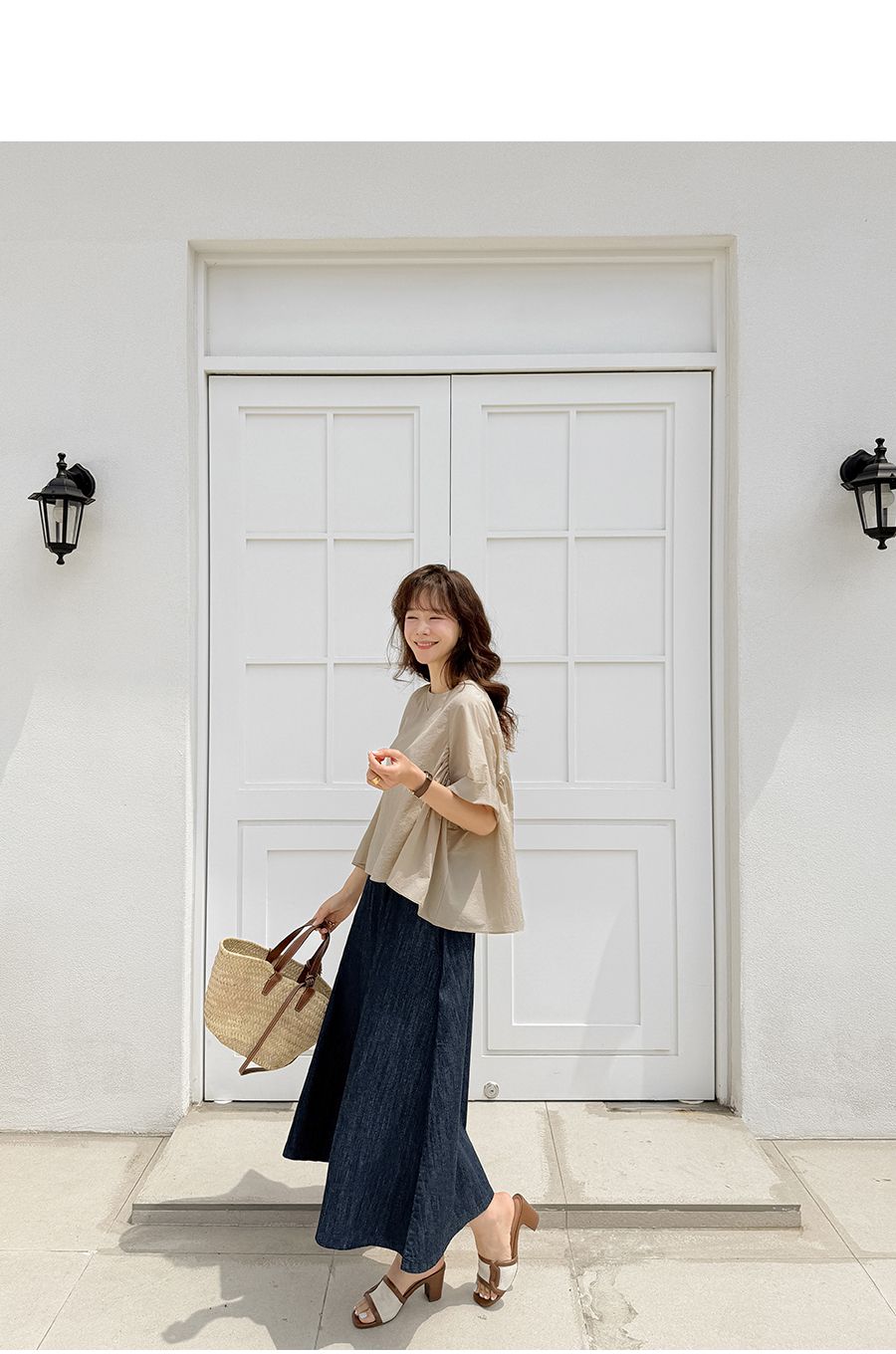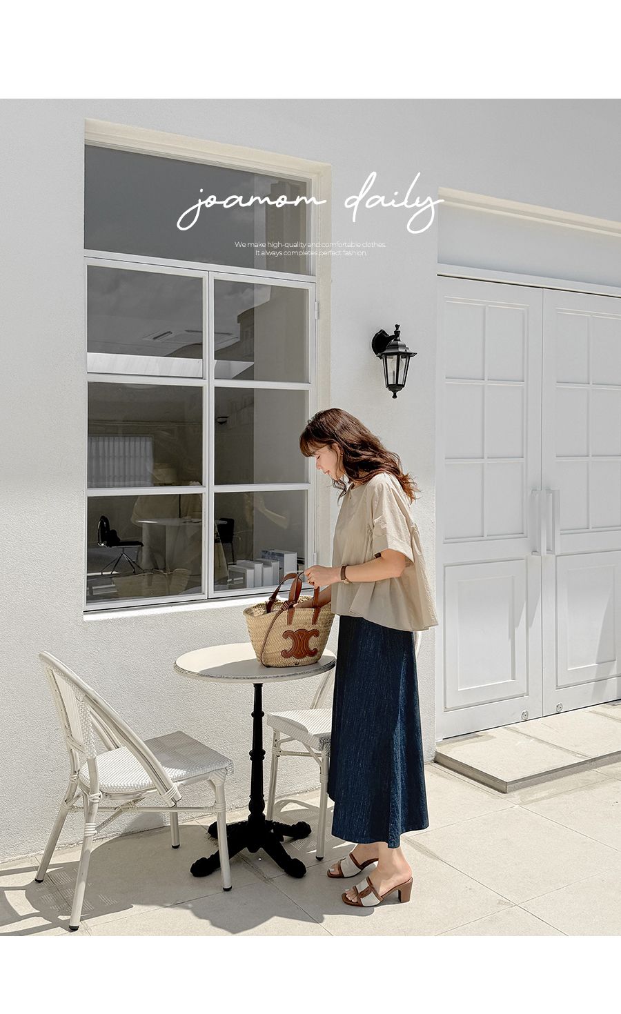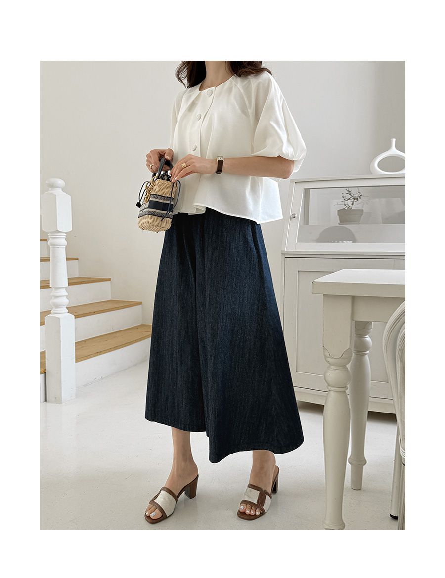 【C55144】韓國JOA 棉質牛仔寬褲-素面全腰鬆緊寬鬆A字雙口袋八分褲★★