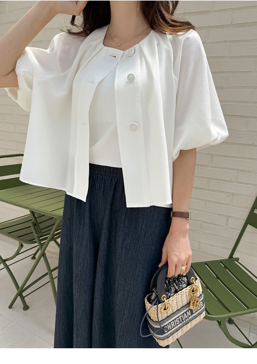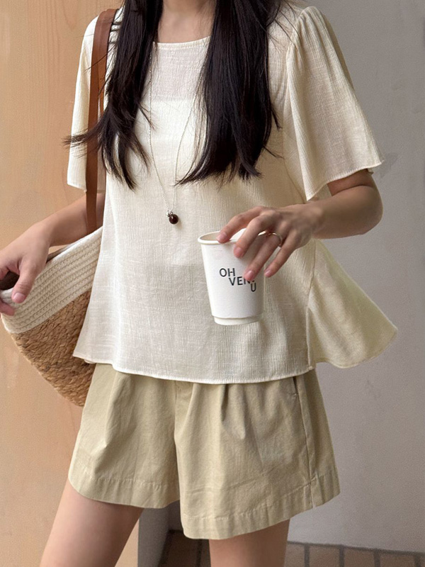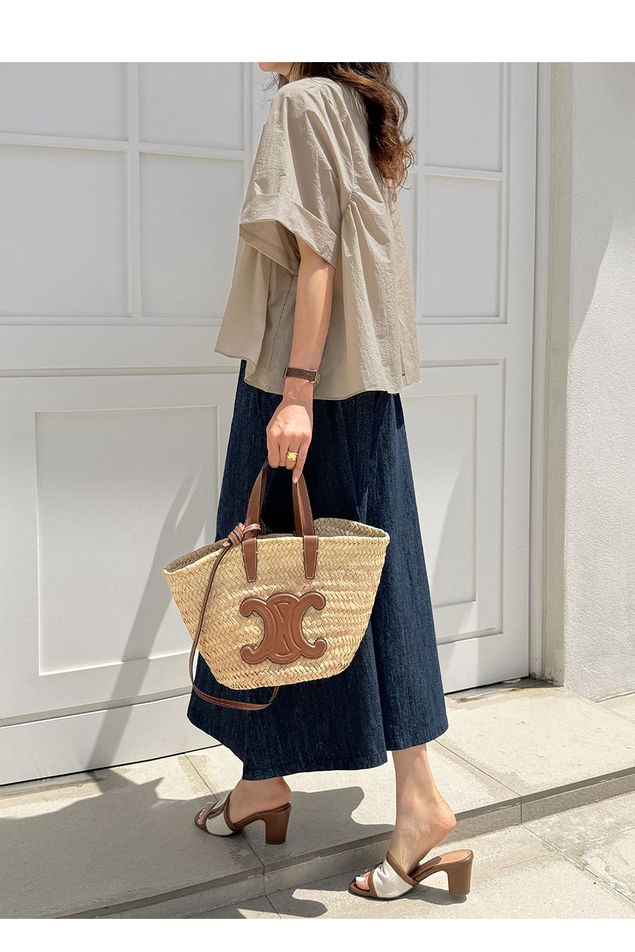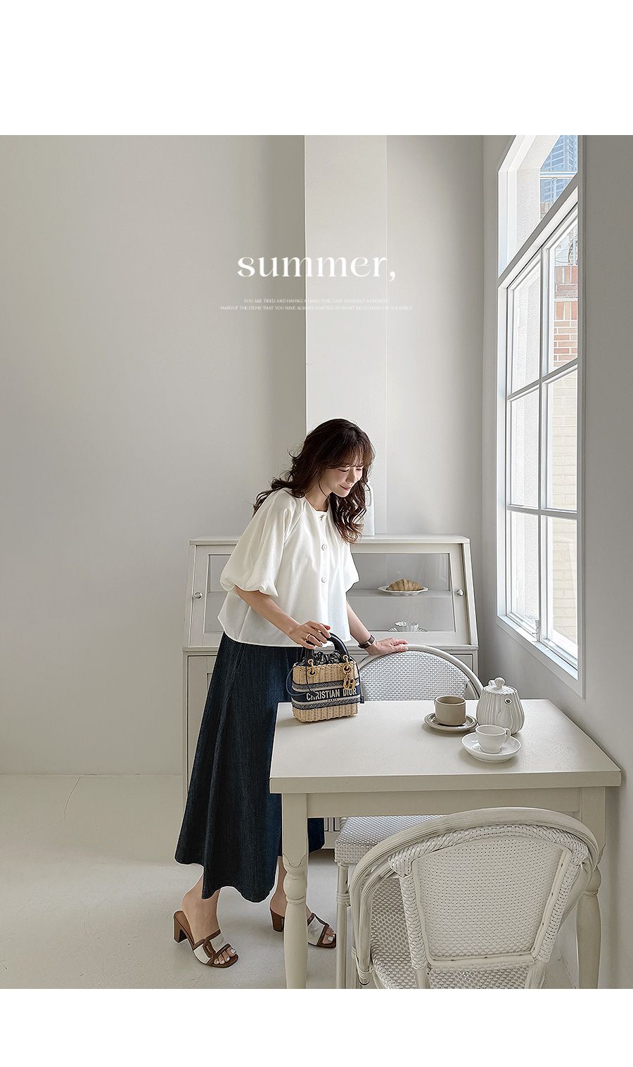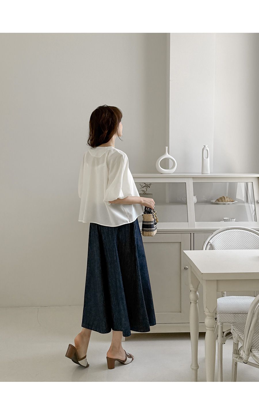 【C55144】韓國JOA 棉質牛仔寬褲-素面全腰鬆緊寬鬆A字雙口袋八分褲★★