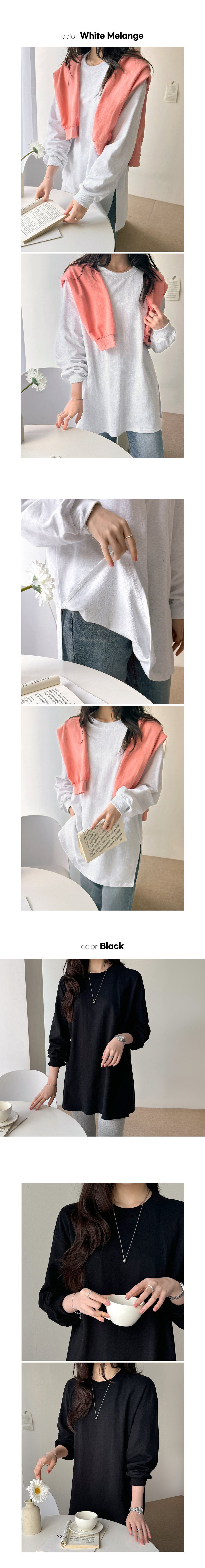 【C55150】韓國DLY 長版大學T-素面圓領側開衩落肩束口長袖上衣★★