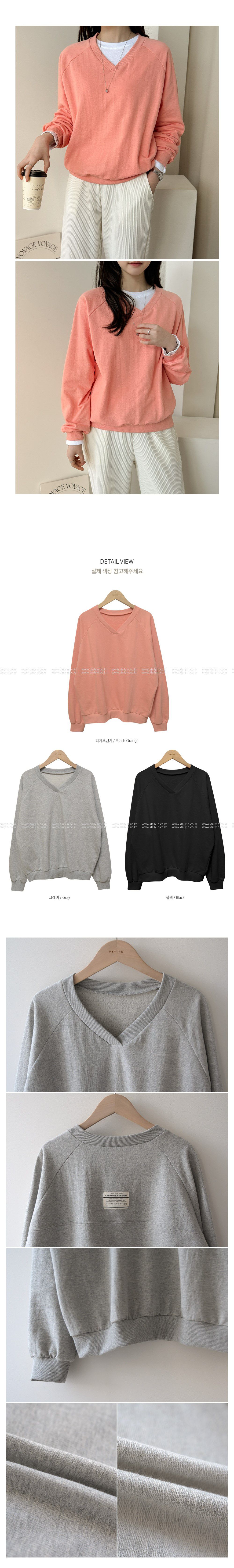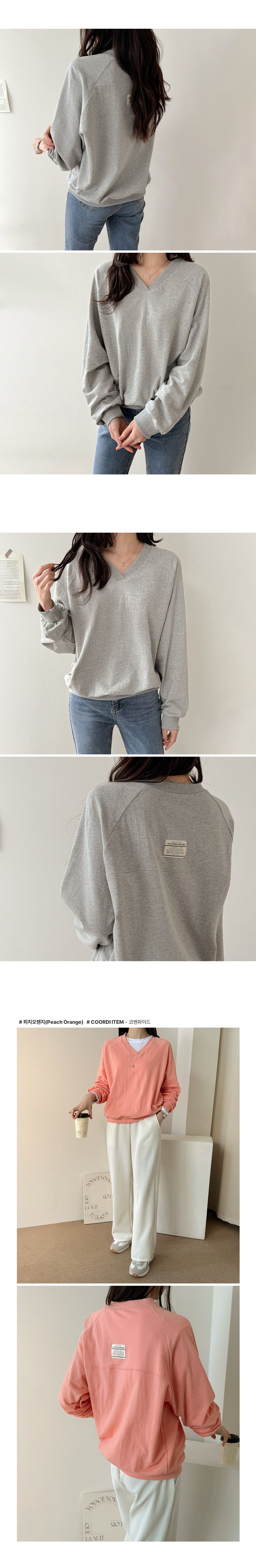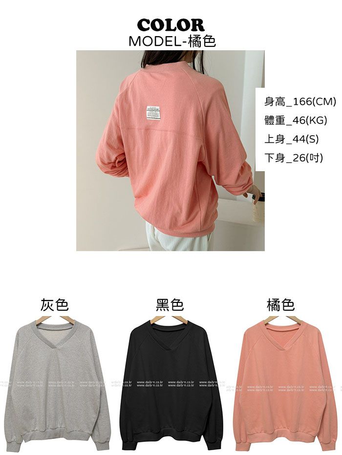 後背字母布標/交叉V領/連肩袖/束口袖/內裏毛圈棉 - 休閒居家簡約百搭素面布標大學T長袖上衣灰色黑色橘色