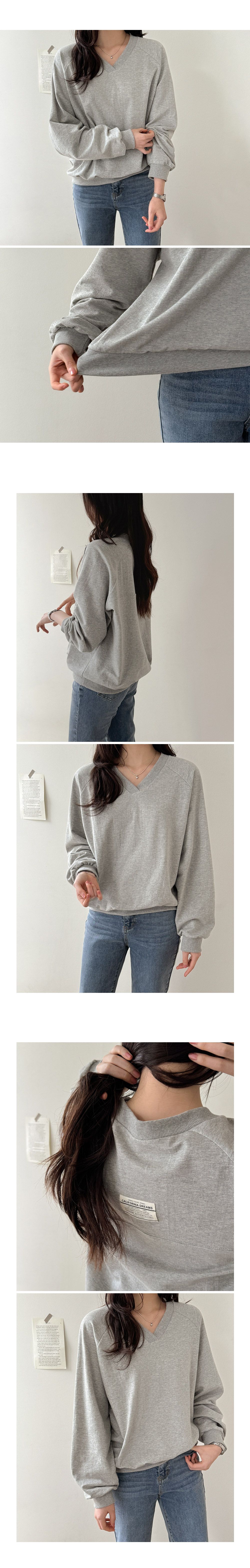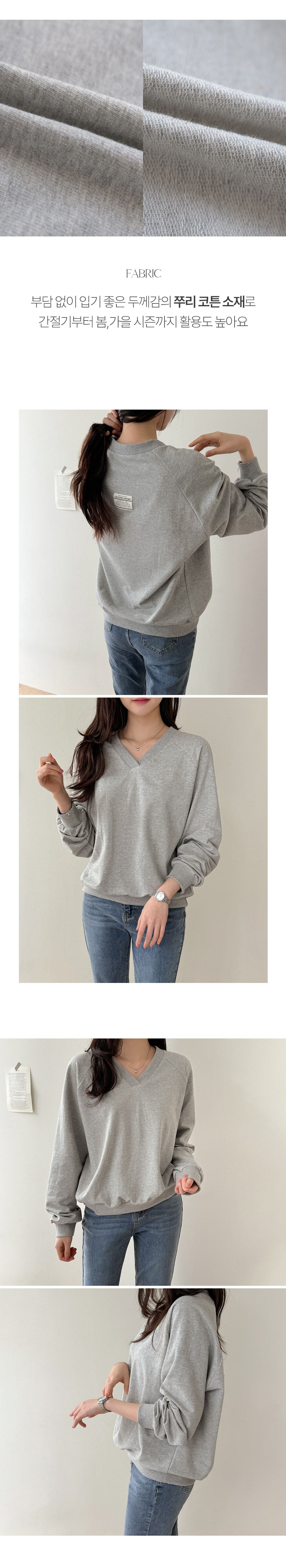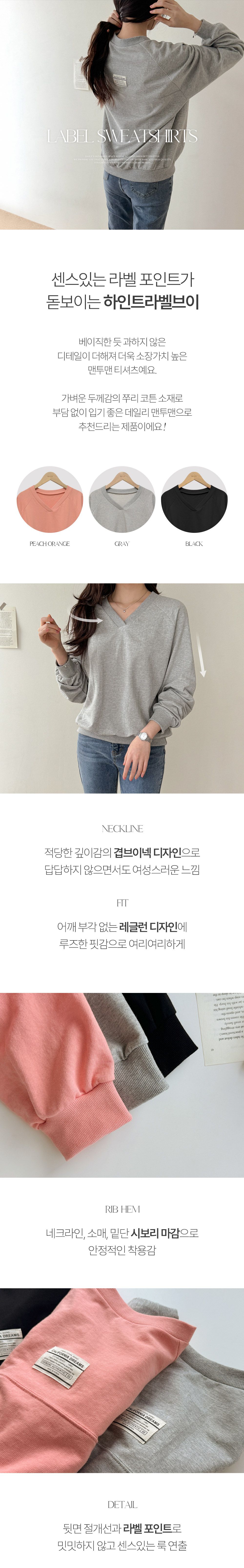 後背字母布標/交叉V領/連肩袖/束口袖/內裏毛圈棉 - 休閒居家簡約百搭素面布標大學T長袖上衣灰色黑色橘色