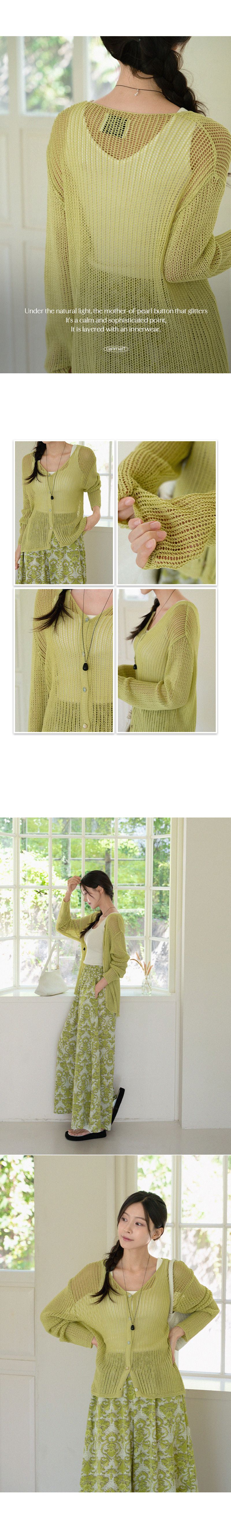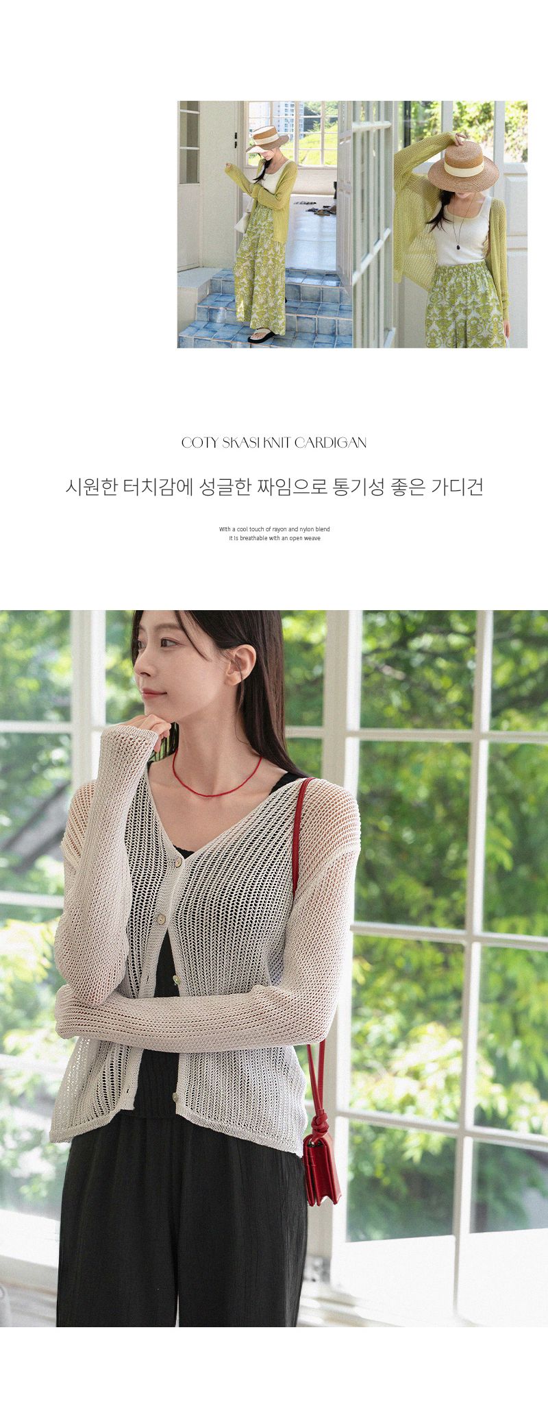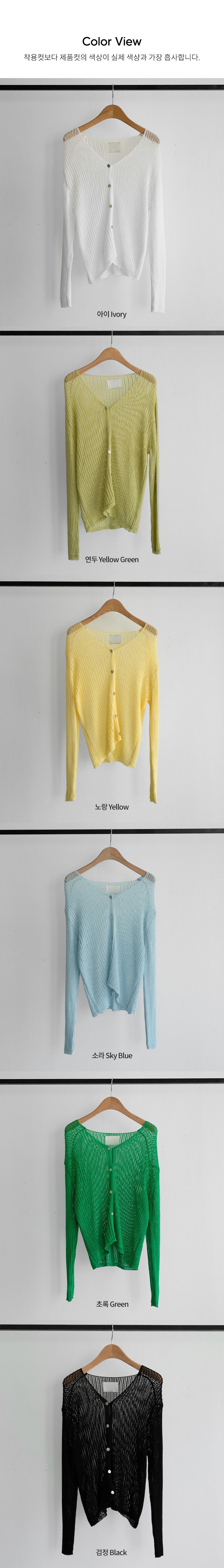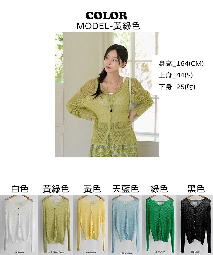 V領/貝殼鈕釦/好氣色/洞洞衫 - 休閒居家渡假簡約百搭素面縷空針織外套落肩長袖外套白色黃綠色黃色天藍色綠色黑色