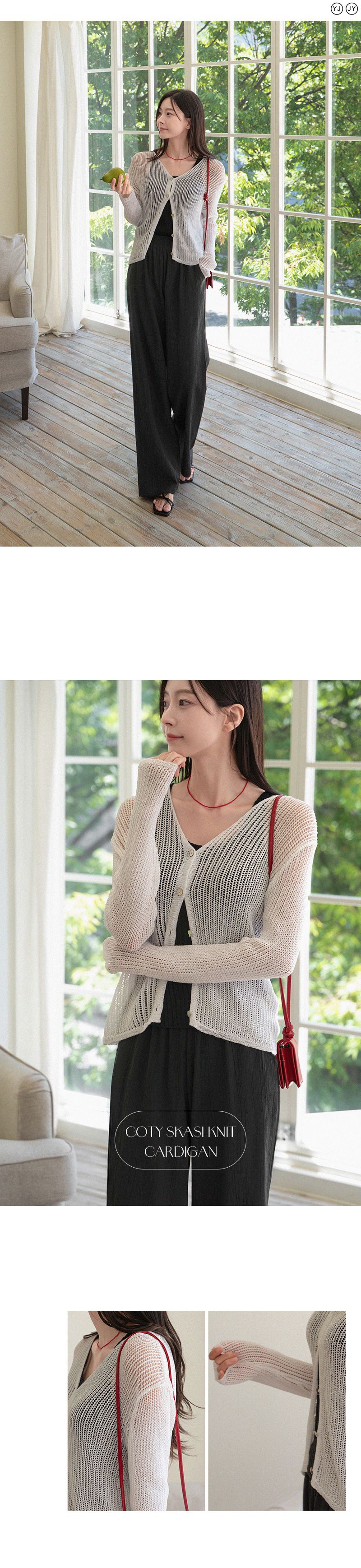 【C55167】韓國CAN 縷空針織外套-素面V領貝殼鈕釦好氣色落肩長袖