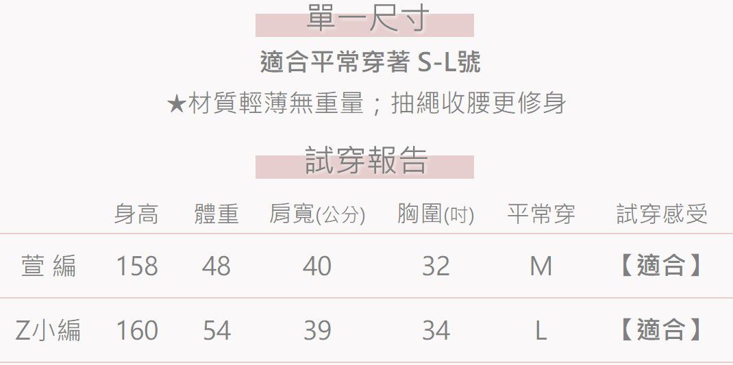 尺寸(cm) | 肩寬 | 胸寬 | 腋下寬 | 腰寬 | 臀寬 | 全長 | 領口 | FREE | 35 | 46 | 29 | 40 | 61 | 120 | 寬20/深10 | 材質 | 產地 | 透光度 | 厚度 | 彈性情況 | 備註 | 建議洗滌 | 棉質 | 中國 | 不透 | 適中 | 無彈性 | 側口袋 無內裏 | 手洗乾洗 |