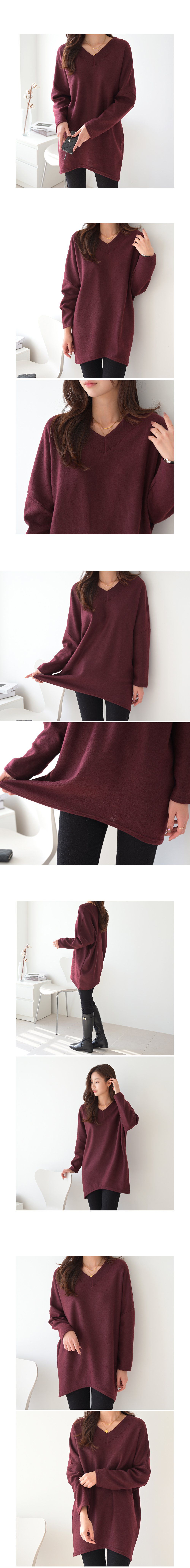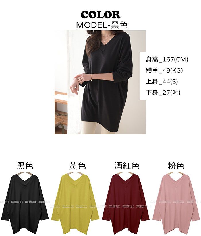 前後V領/寬鬆長版/倒V下襬 - 休閒居家簡約百搭素面長版V領上衣寬鬆大尺碼上衣長版上衣長袖T恤黑色黃色酒紅色粉色