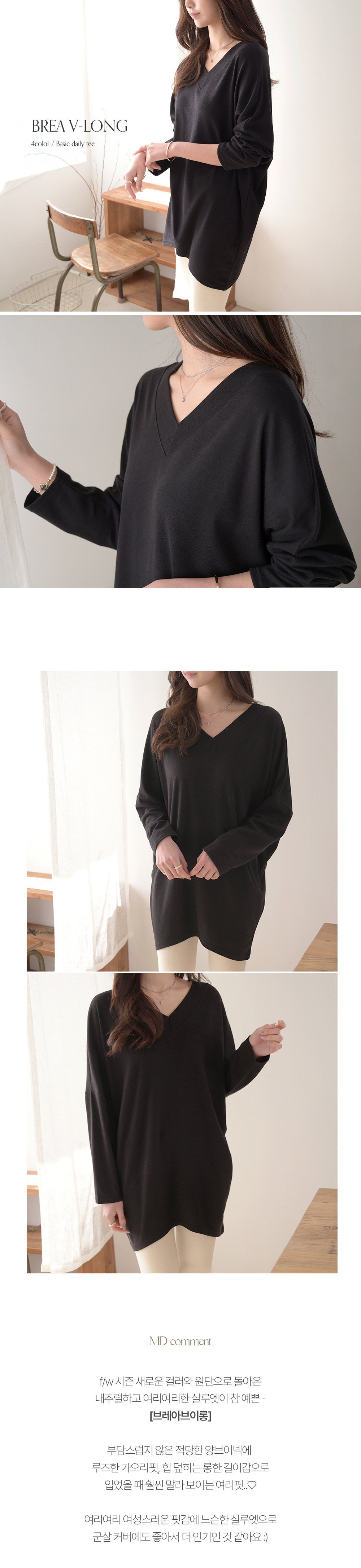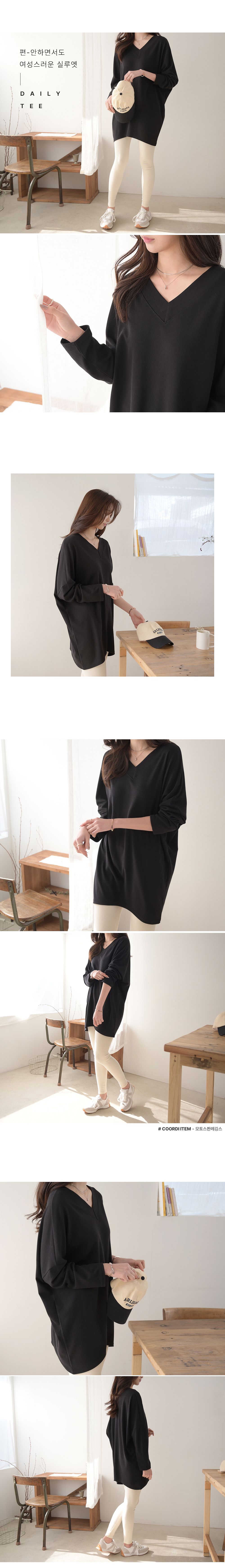 【C55181】韓國DLY 長版V領上衣-前後V領素面寬鬆倒V下襬長袖T恤★★