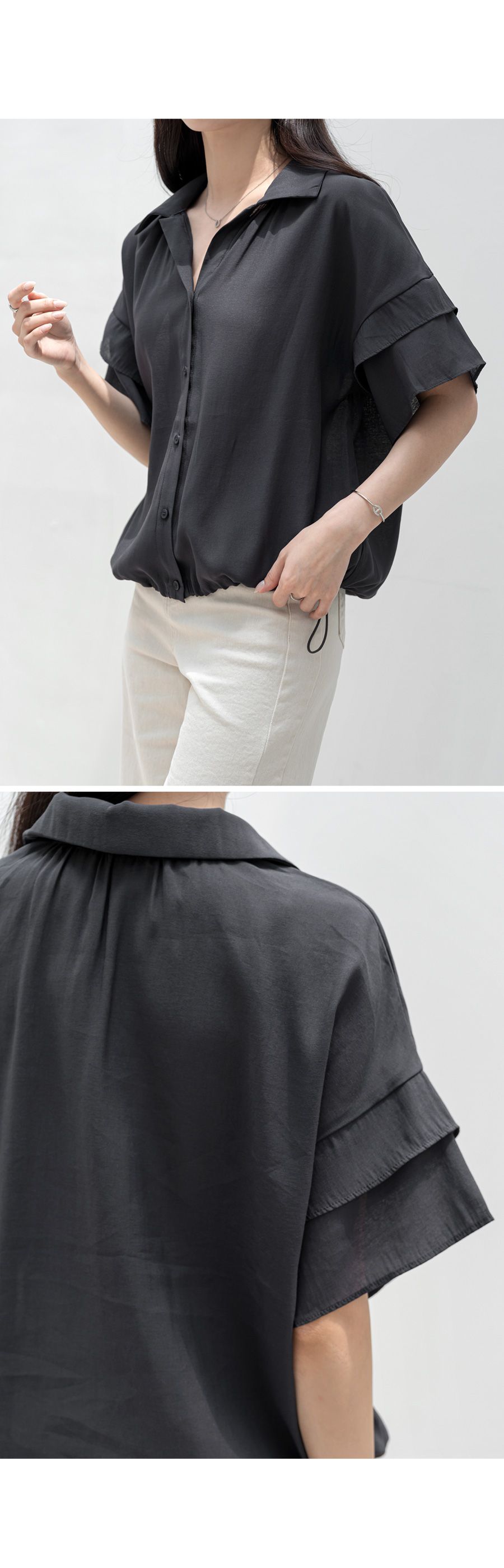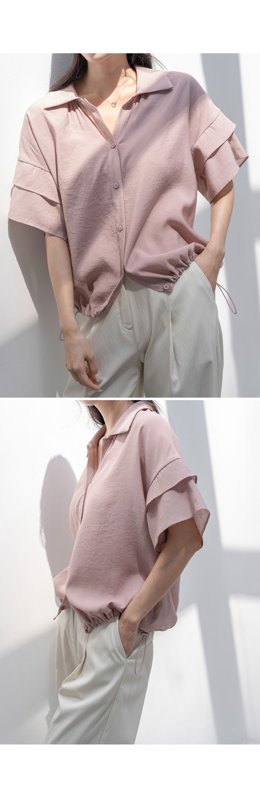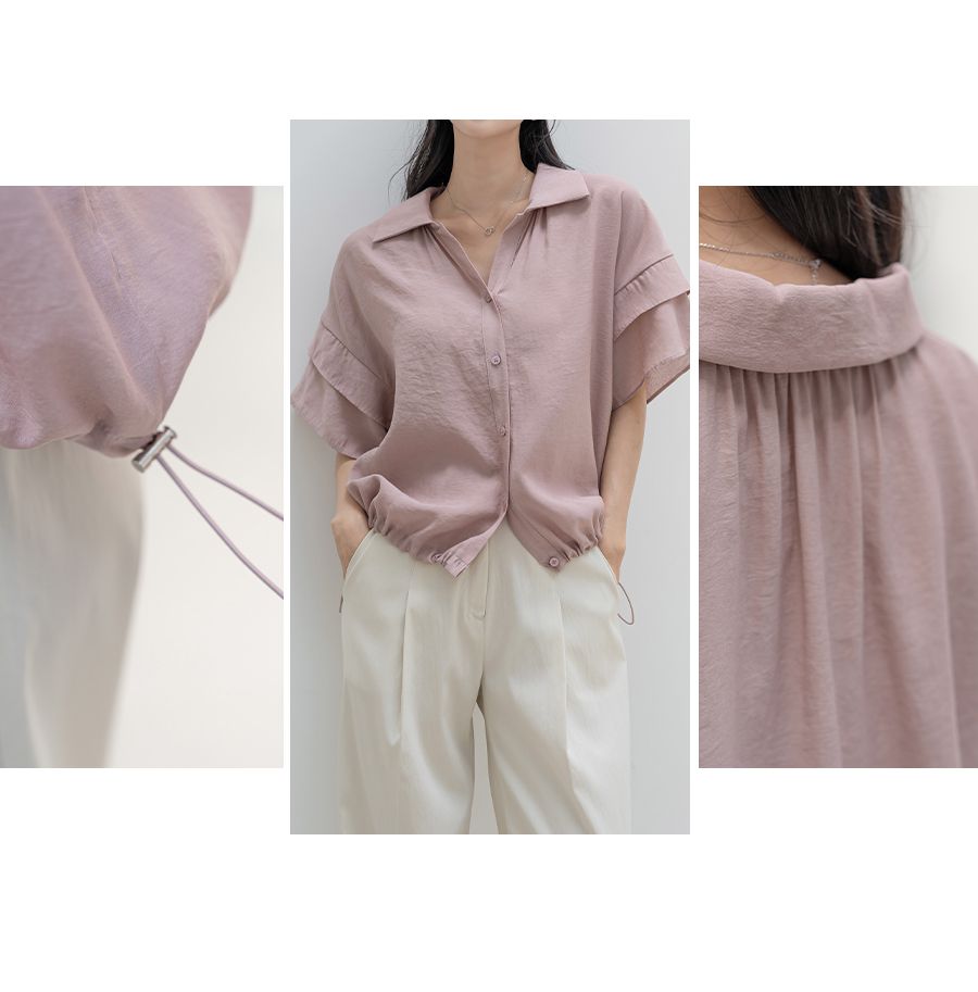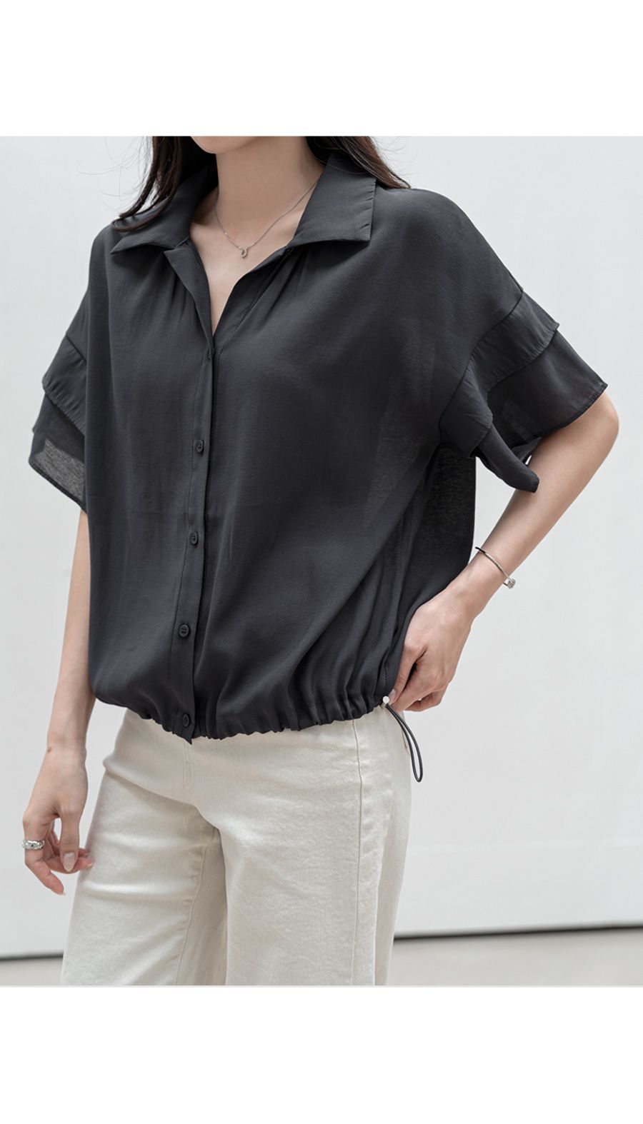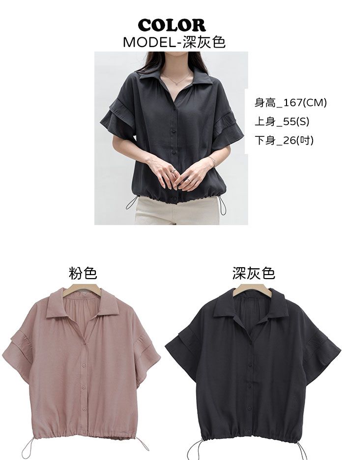 【C55191】韓國MNA 雙層寬袖襯衫-抽繩收腰好氣色素面排釦五分袖上衣★★