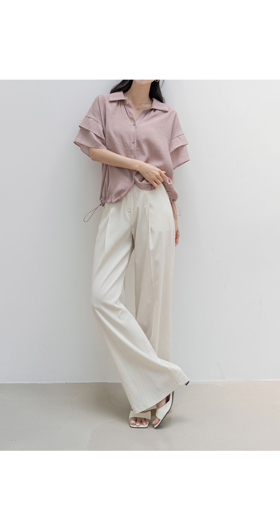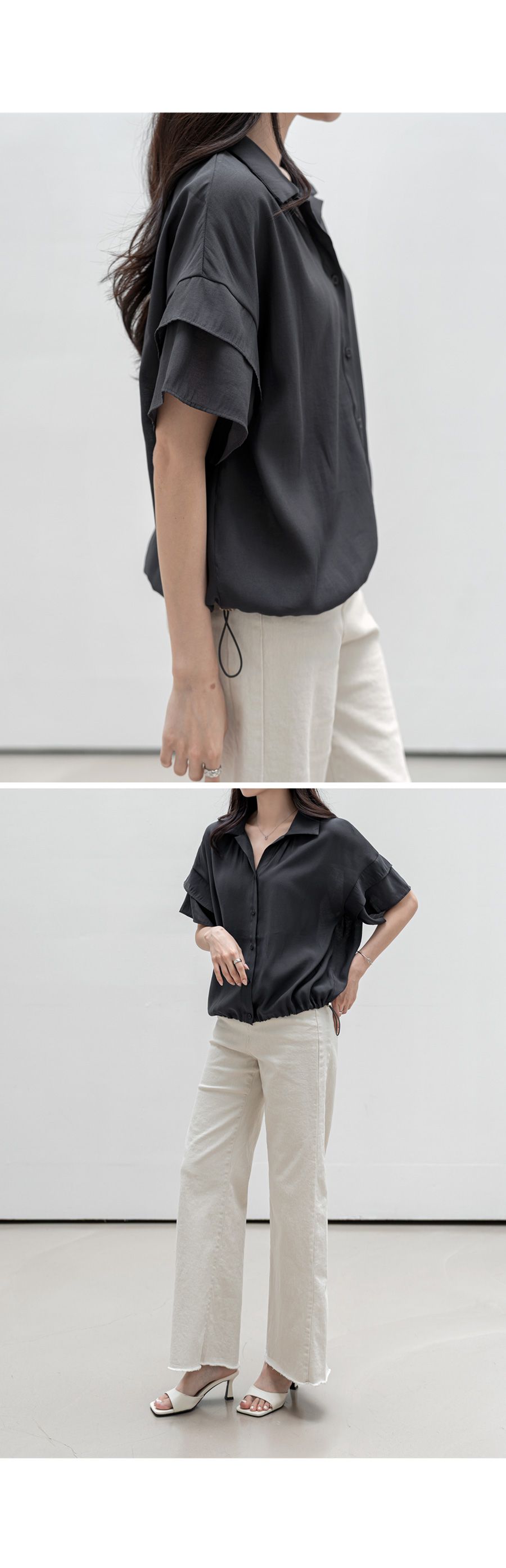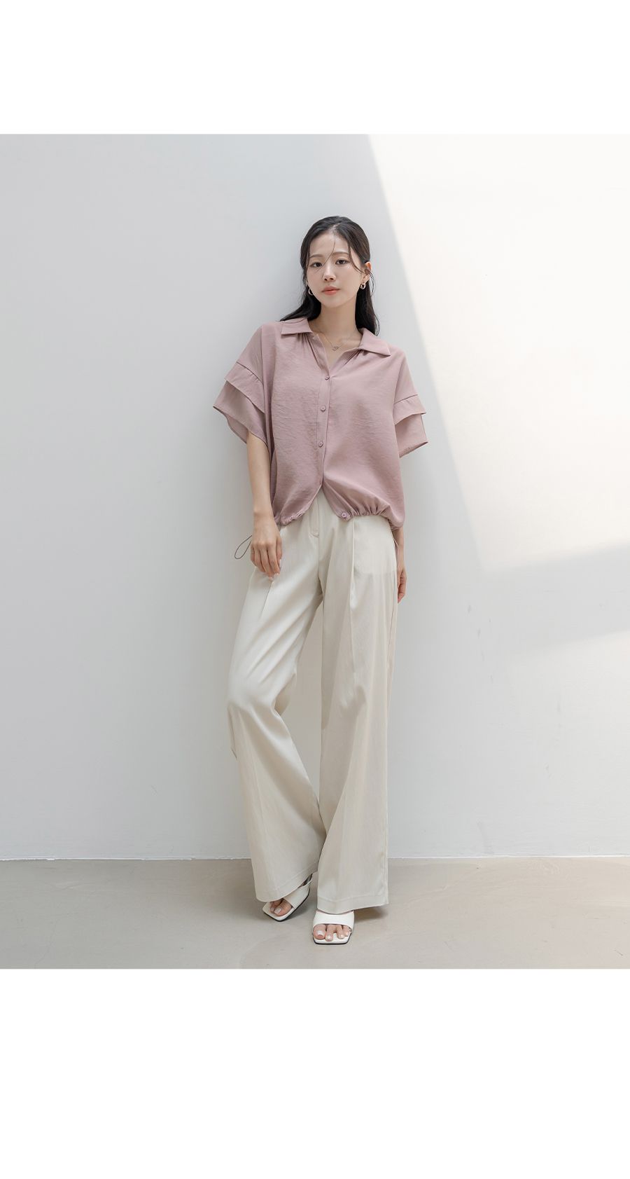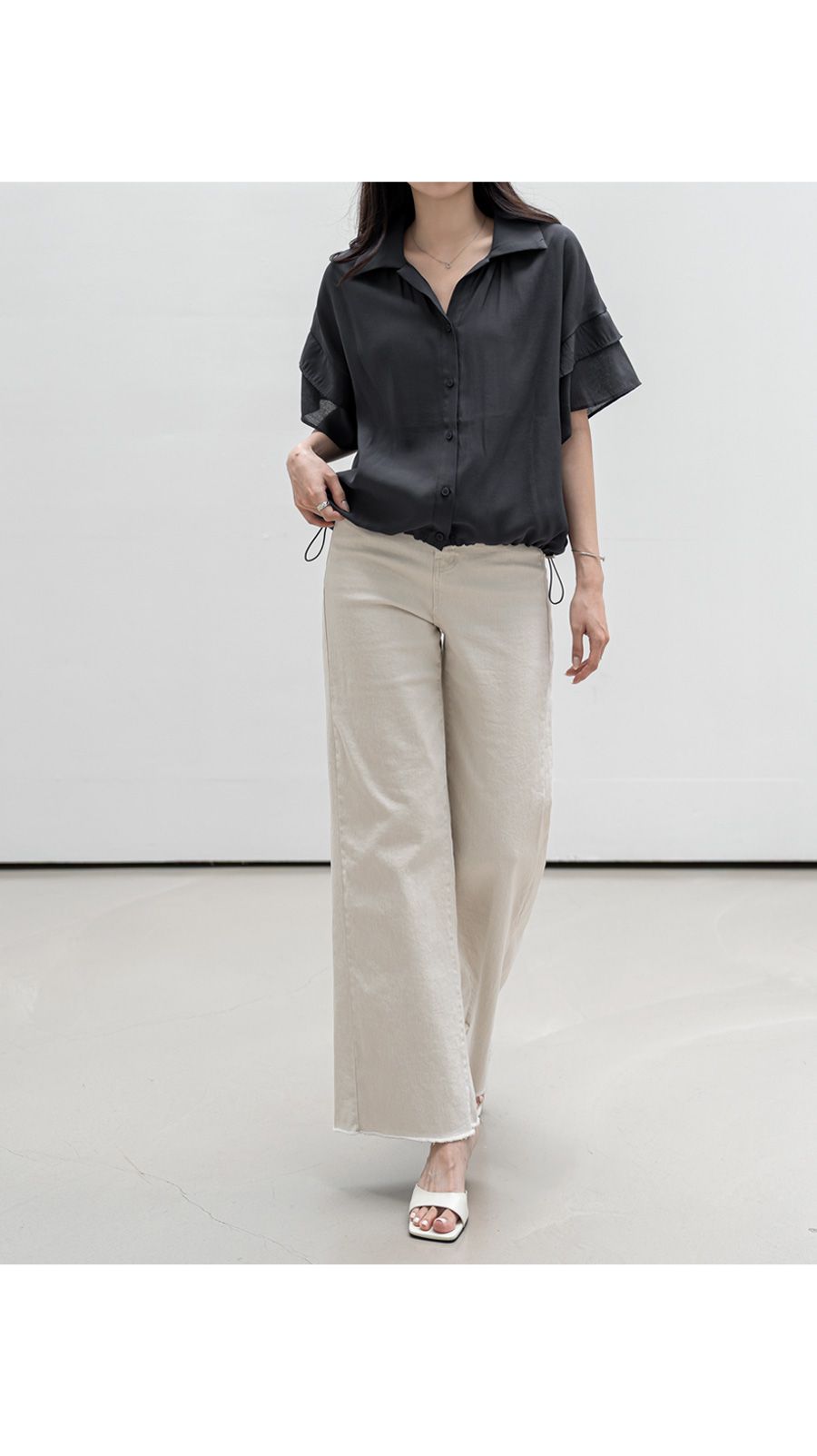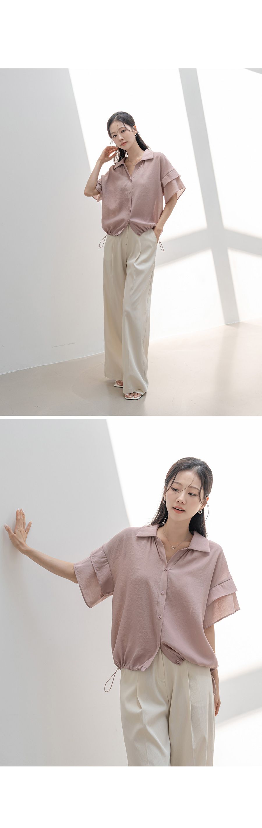 【C55191】韓國MNA 雙層寬袖襯衫-抽繩收腰好氣色素面排釦五分袖上衣★★