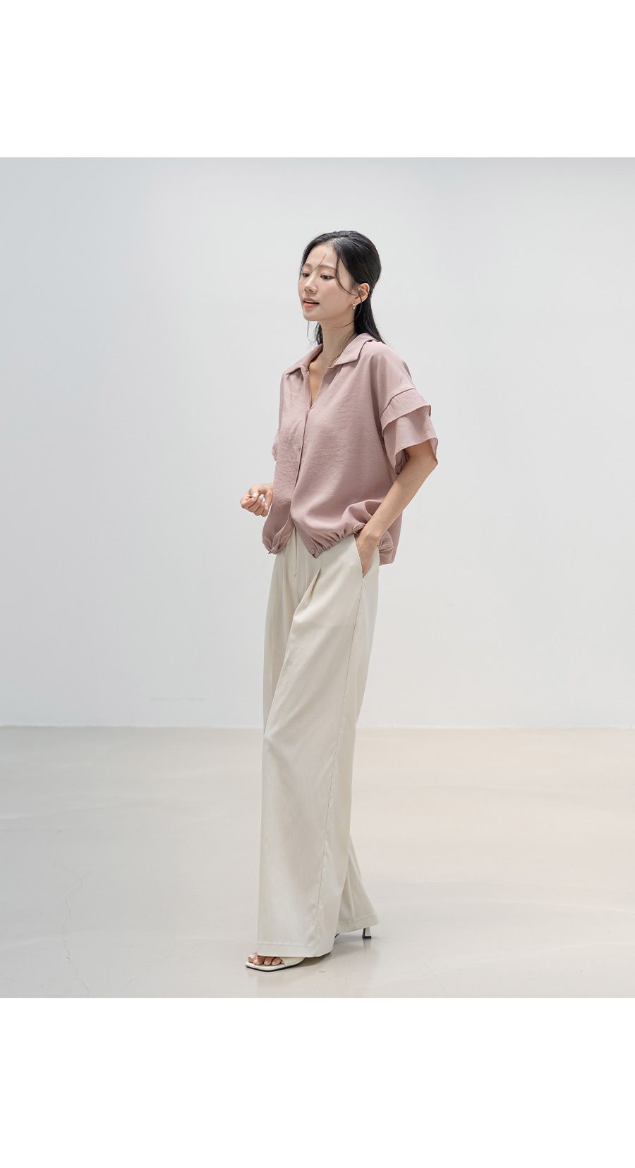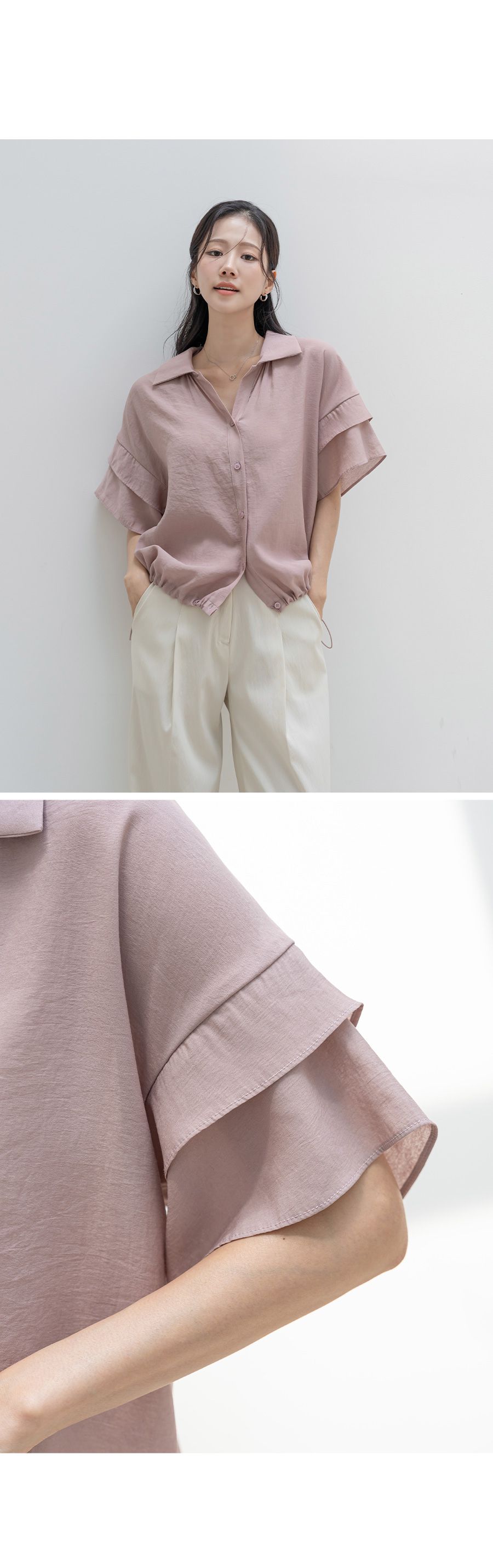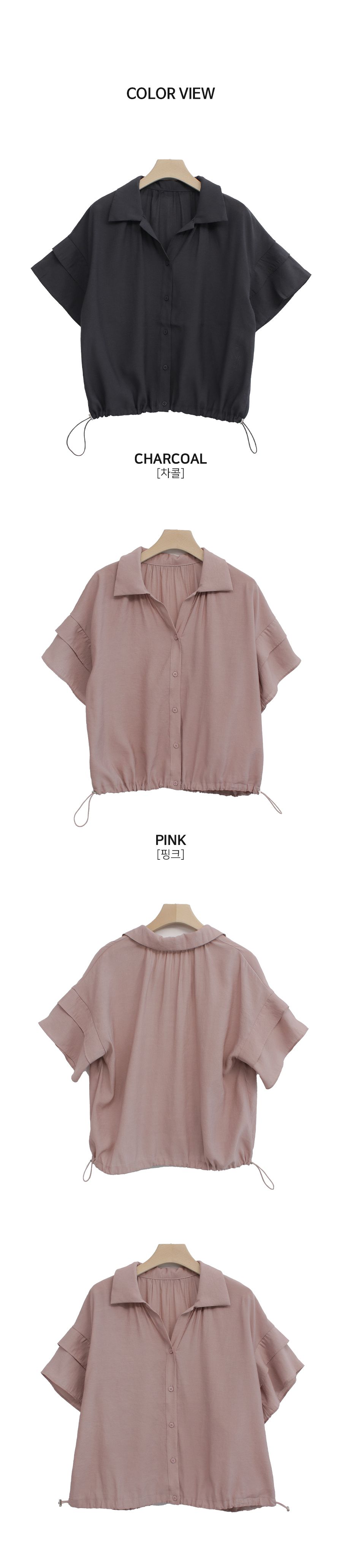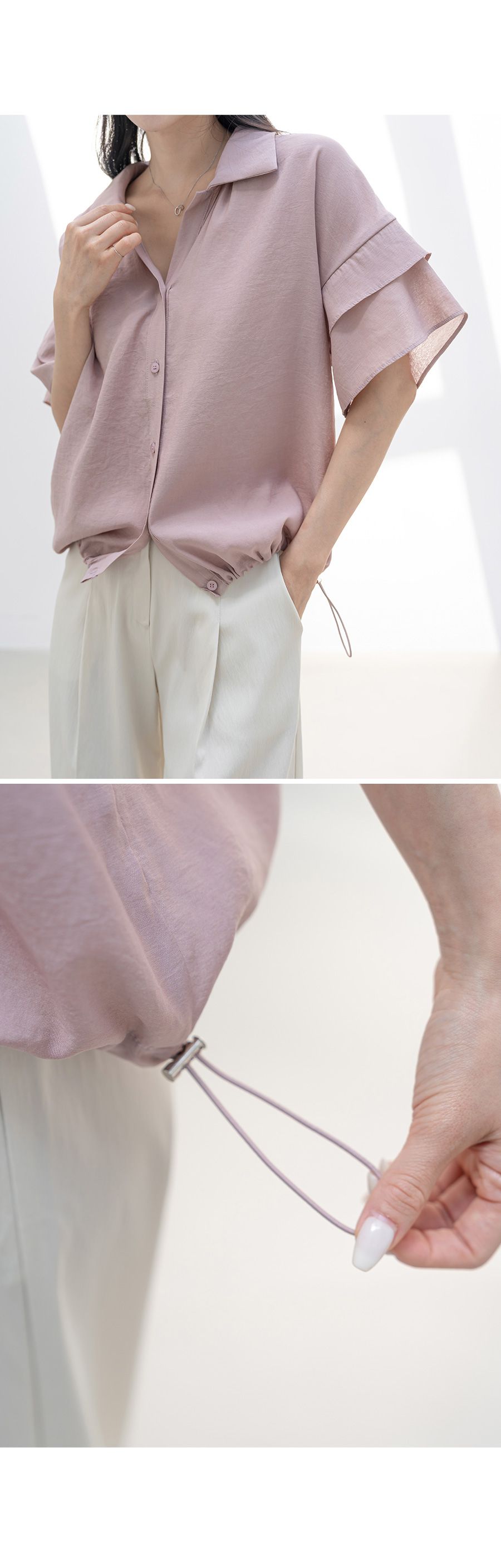 【C55191】韓國MNA 雙層寬袖襯衫-抽繩收腰好氣色素面排釦五分袖上衣★★
