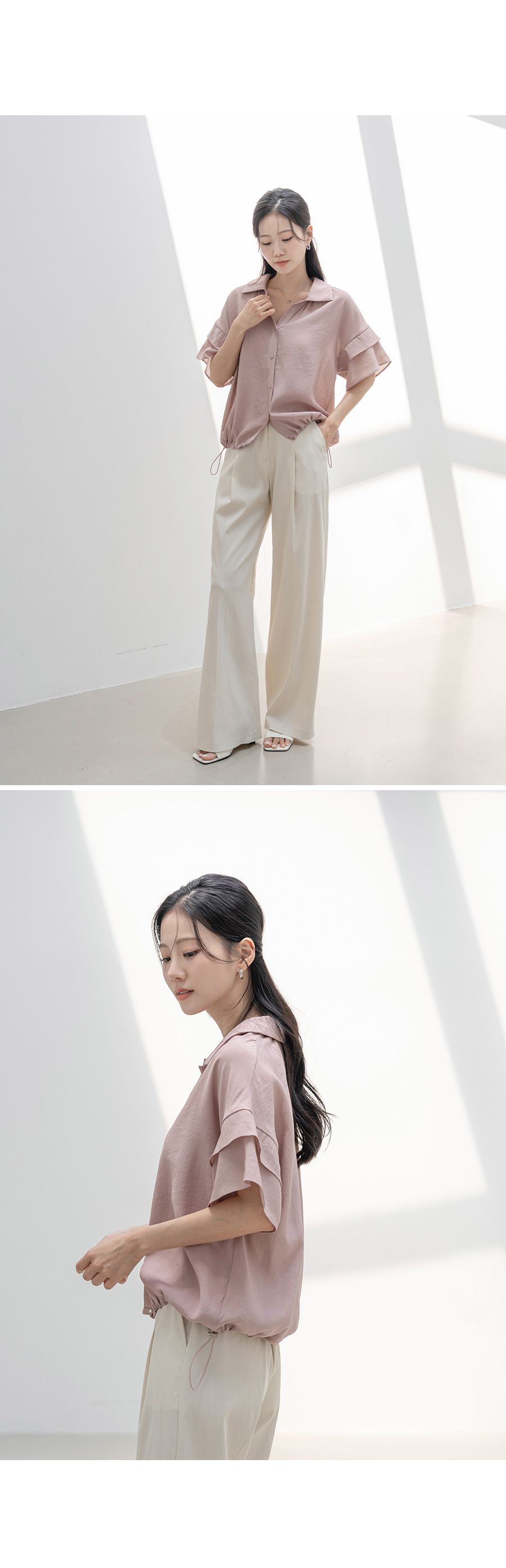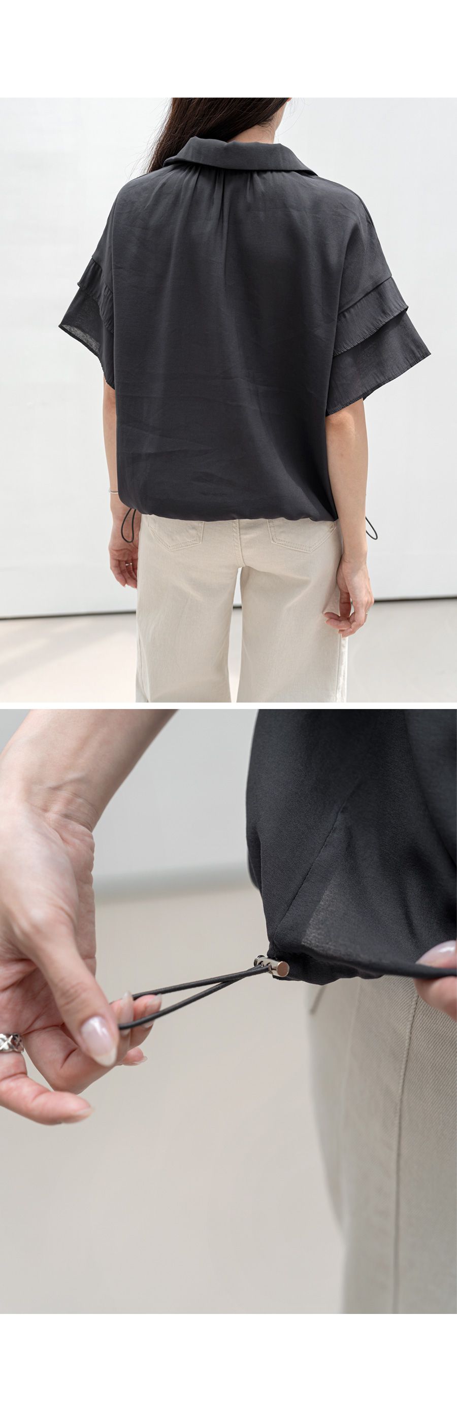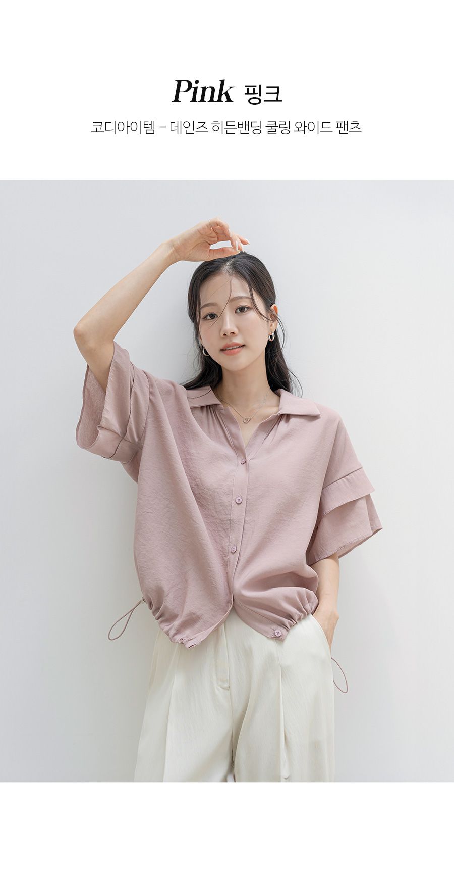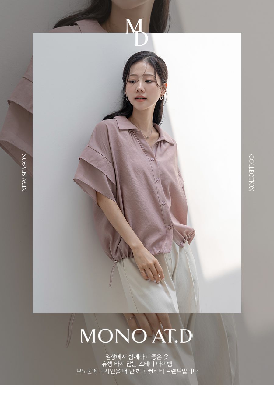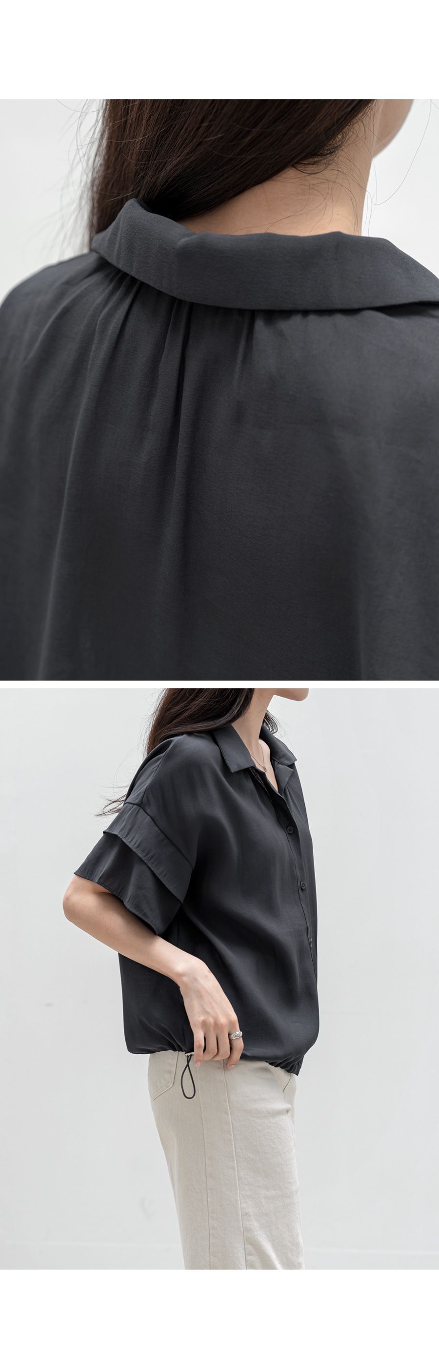 【C55191】韓國MNA 雙層寬袖襯衫-抽繩收腰好氣色素面排釦五分袖上衣★★