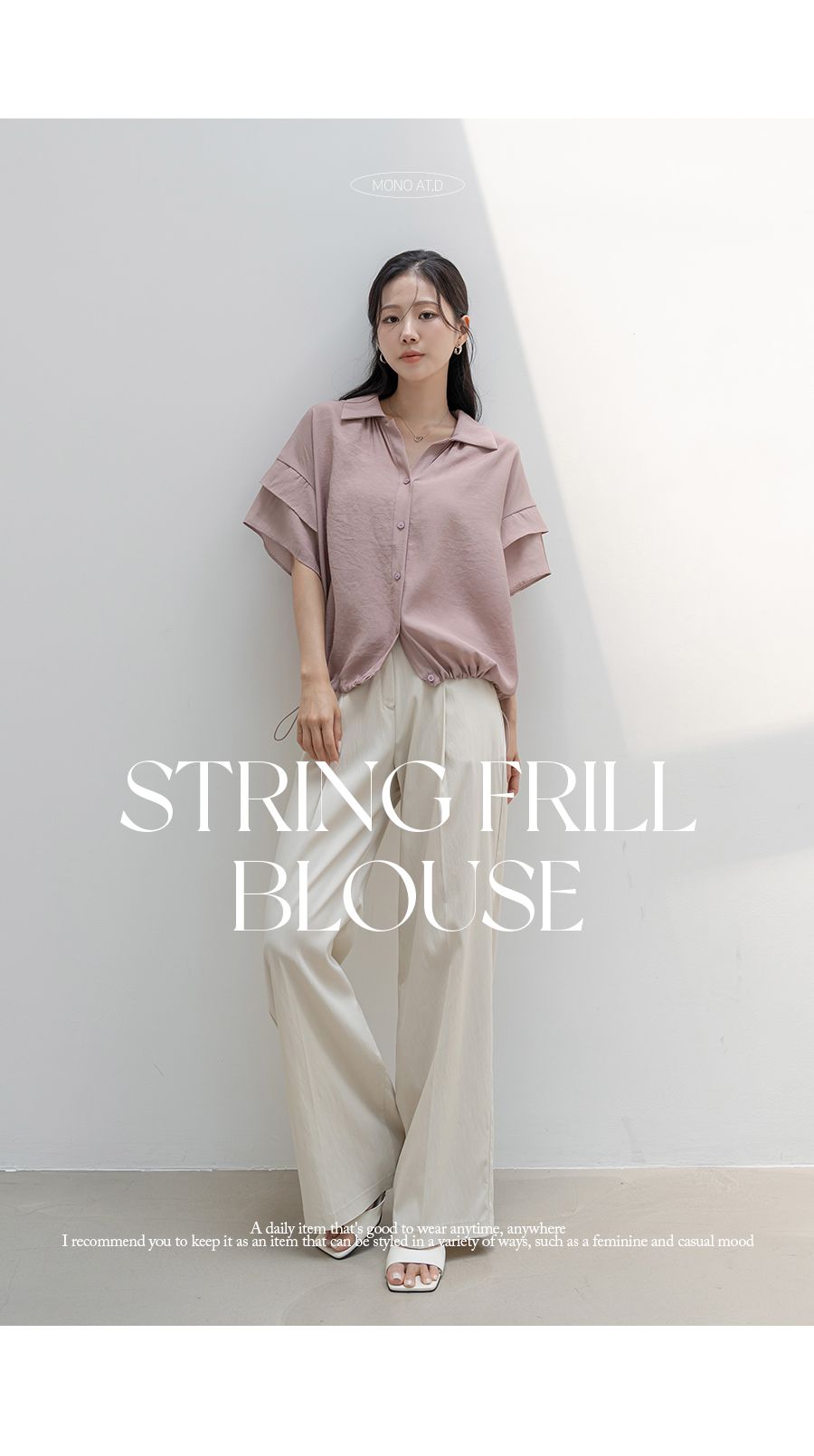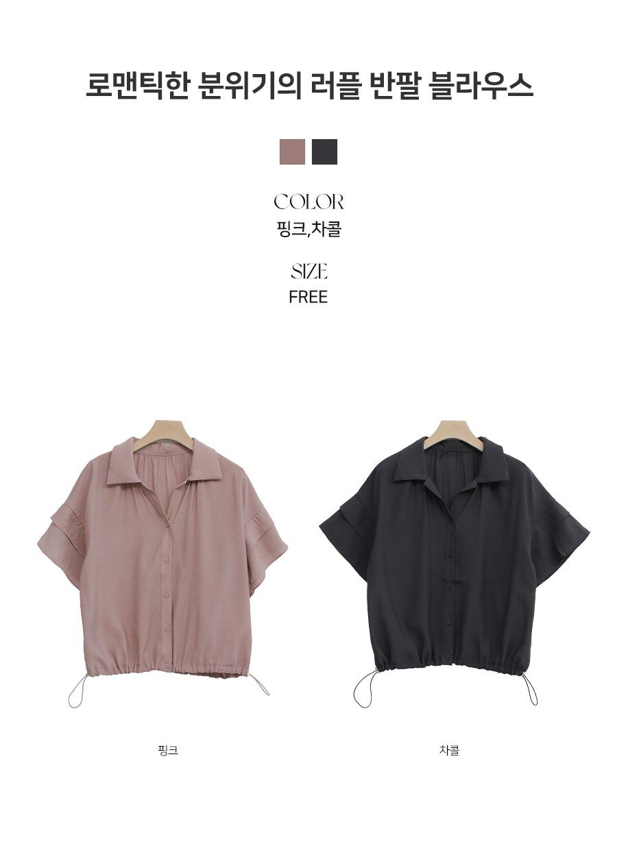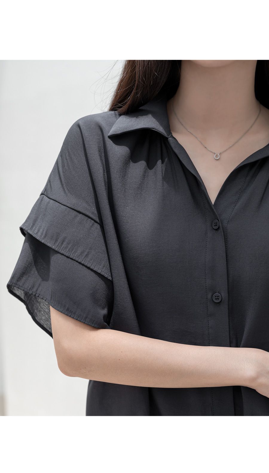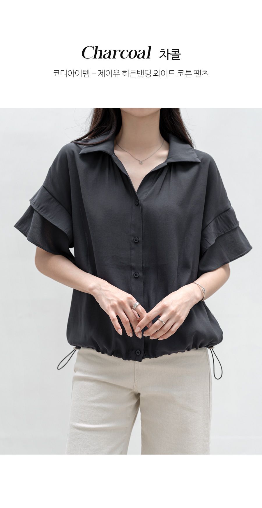 【C55191】韓國MNA 雙層寬袖襯衫-抽繩收腰好氣色素面排釦五分袖上衣★★