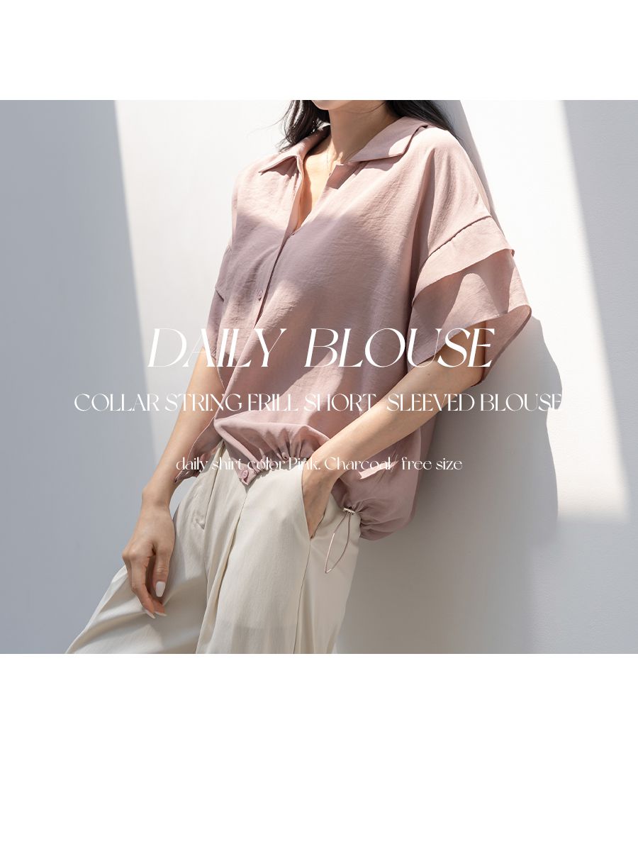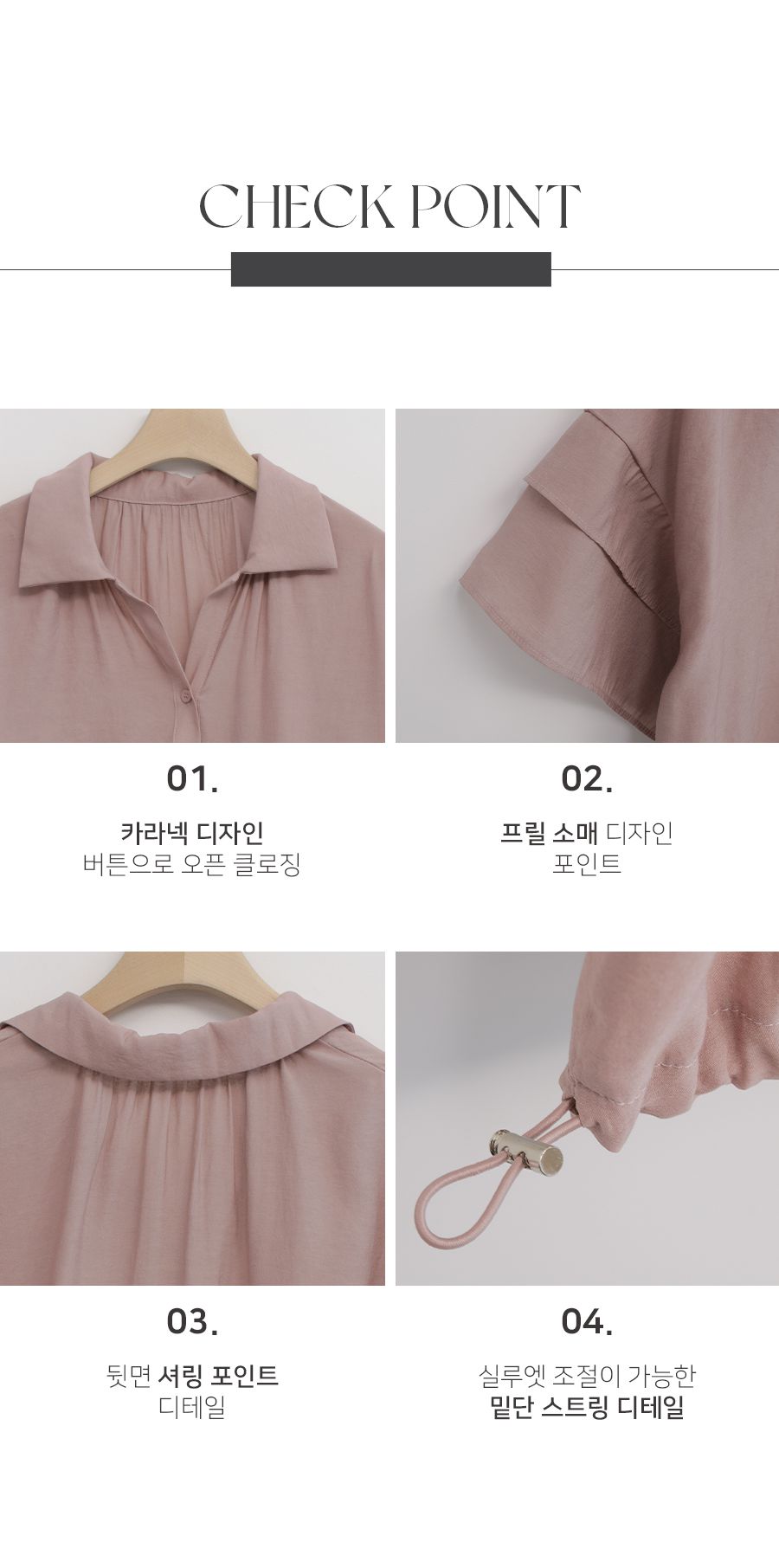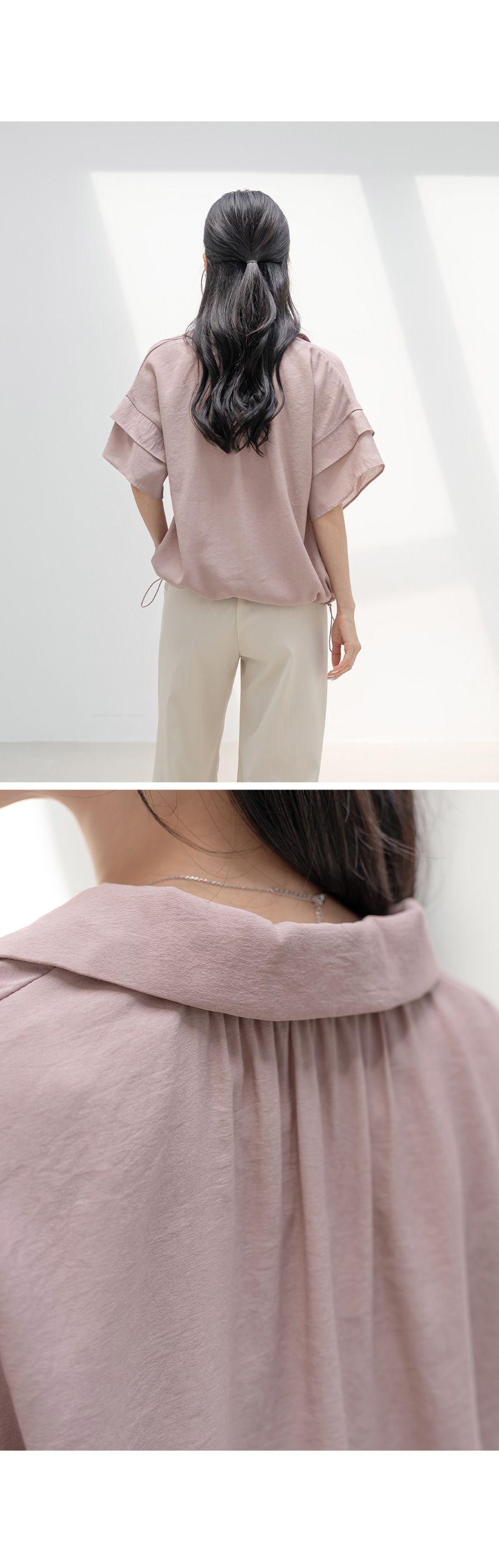 抽繩收腰/開襟排釦/雙層滾邊袖口/落肩寬袖/好氣色 - 休閒居家簡約百搭素面雙層寬袖襯衫上衣五分袖上衣粉色深灰色