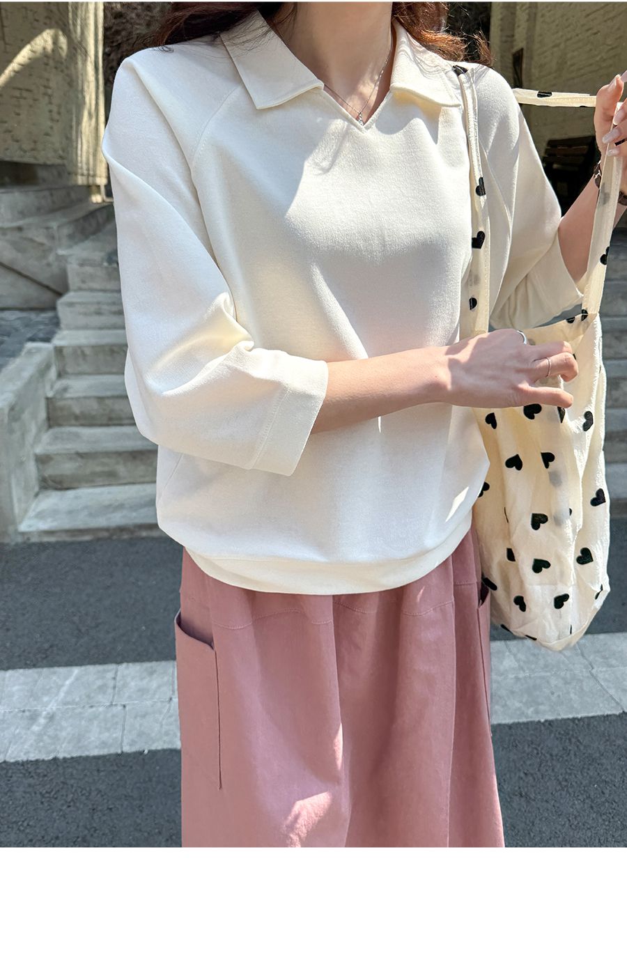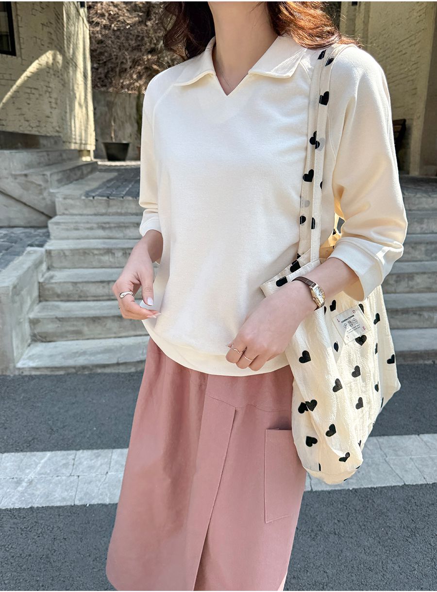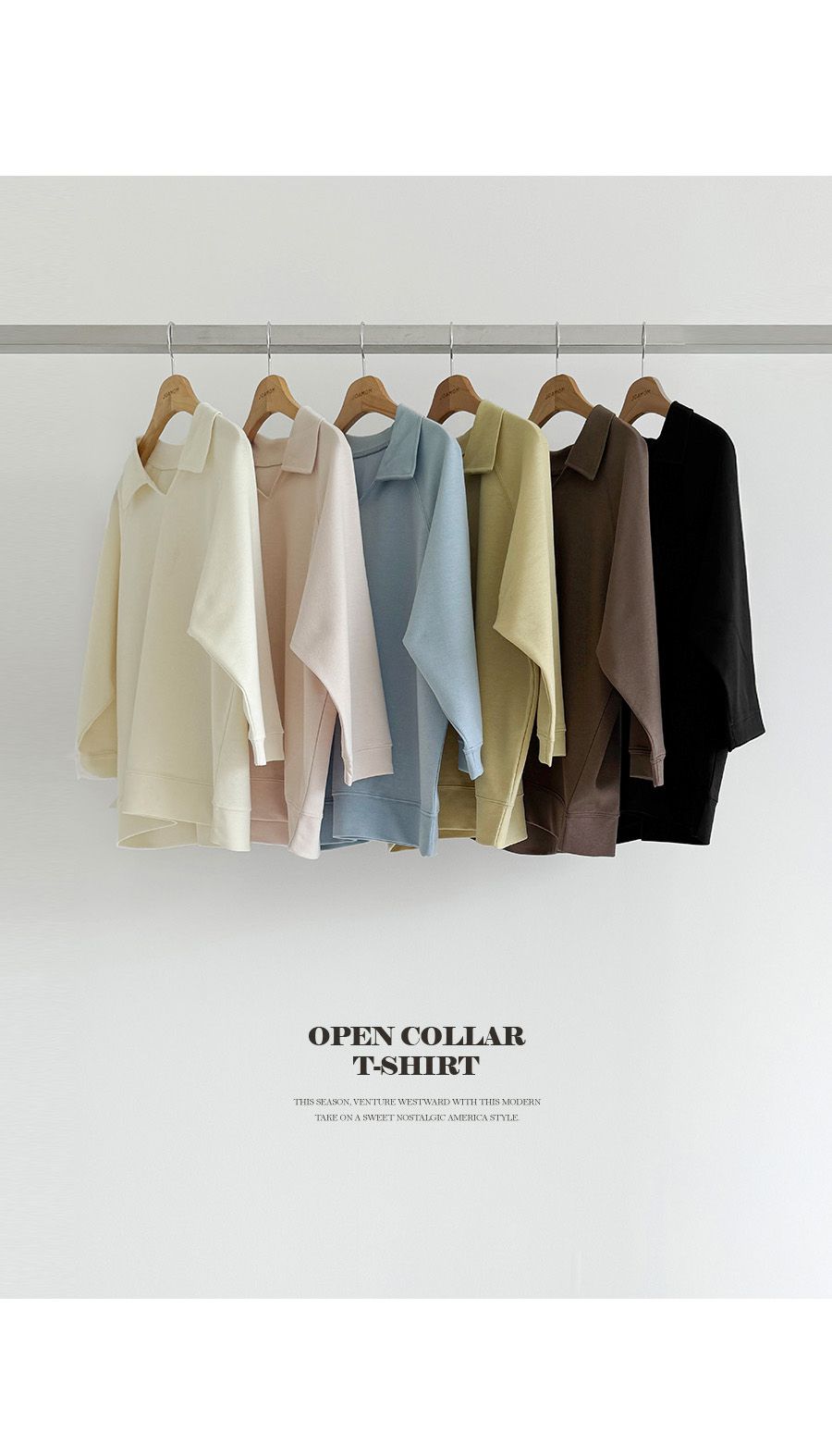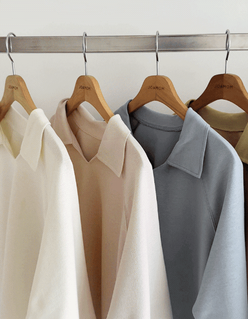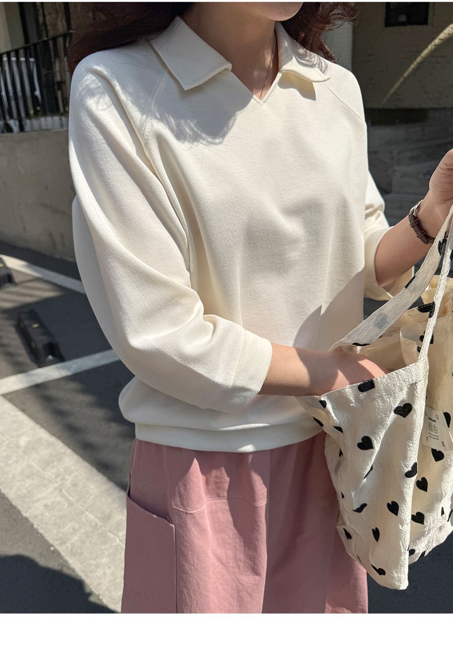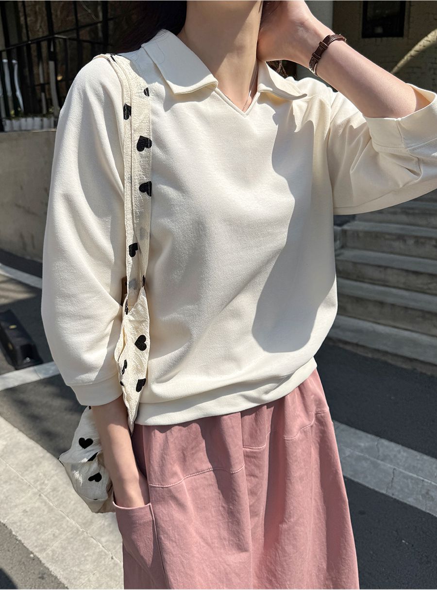 【C55207】韓國JAM 翻領素面上衣-好氣色連肩袖V領直筒七分袖T恤★★