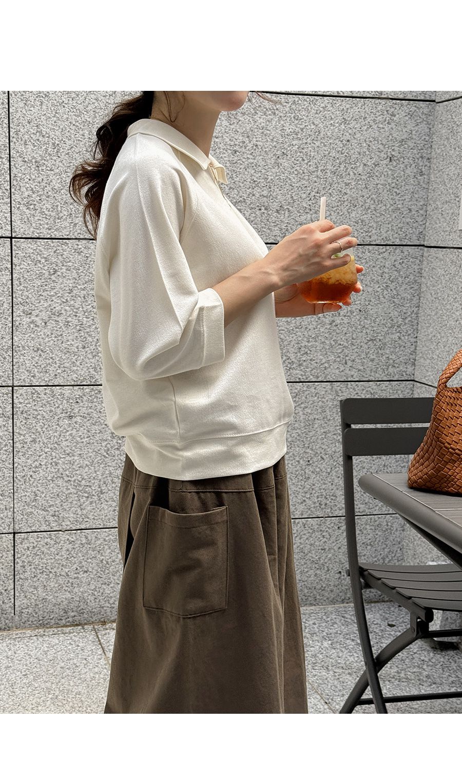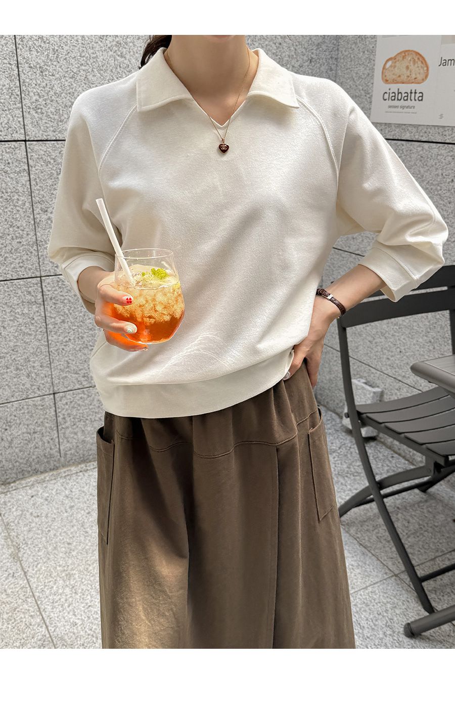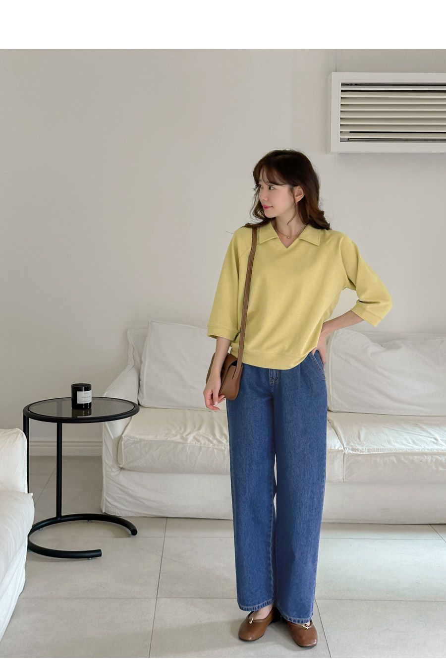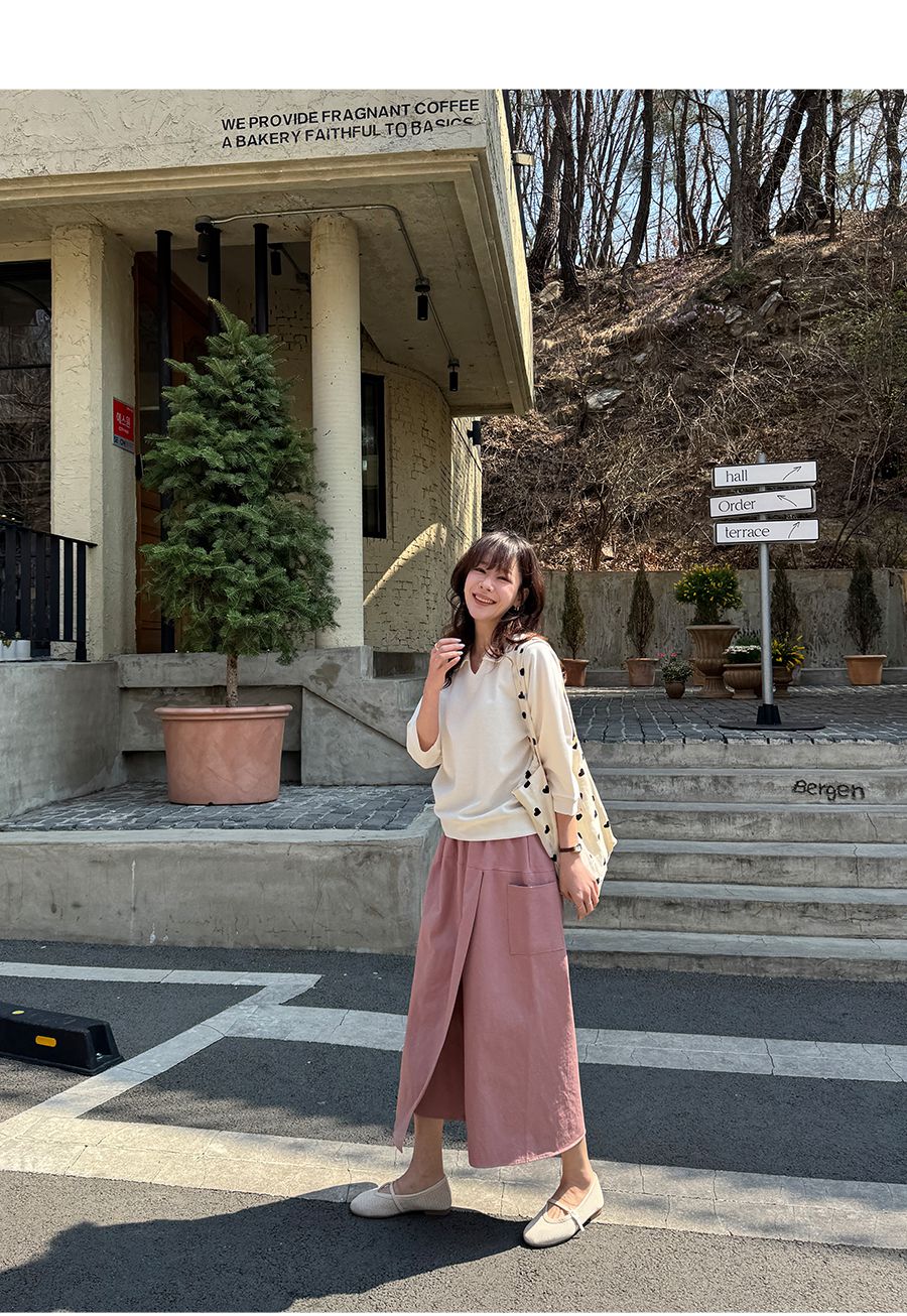 【C55207】韓國JAM 翻領素面上衣-好氣色連肩袖V領直筒七分袖T恤★★