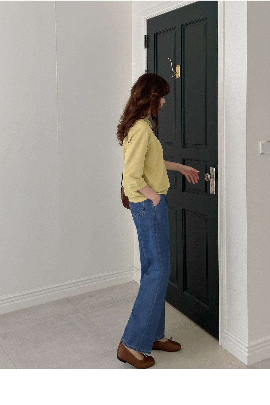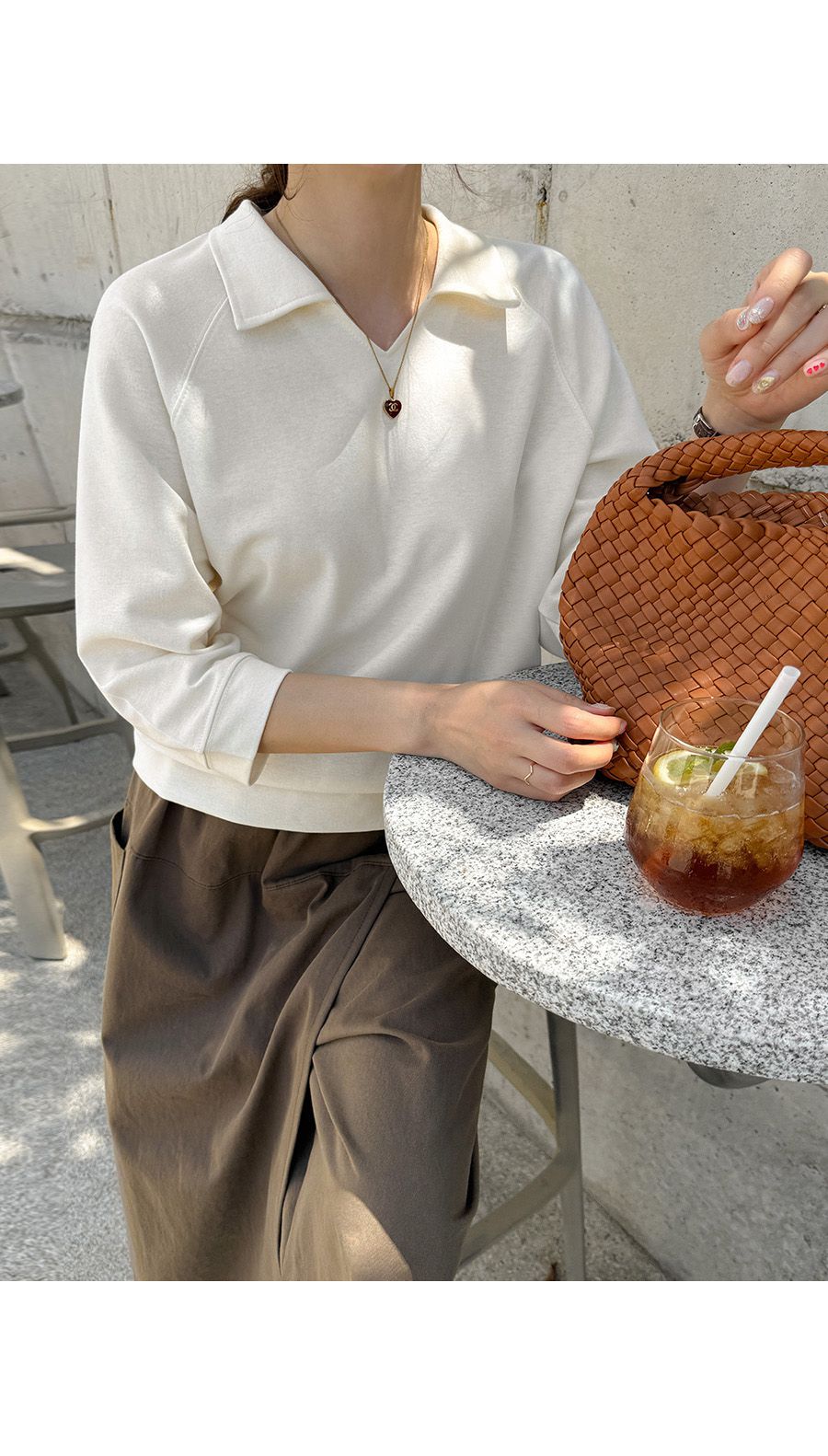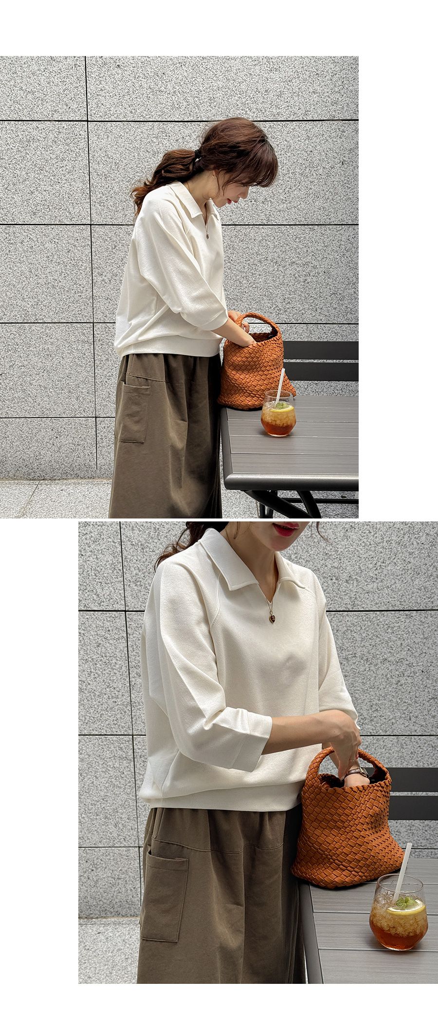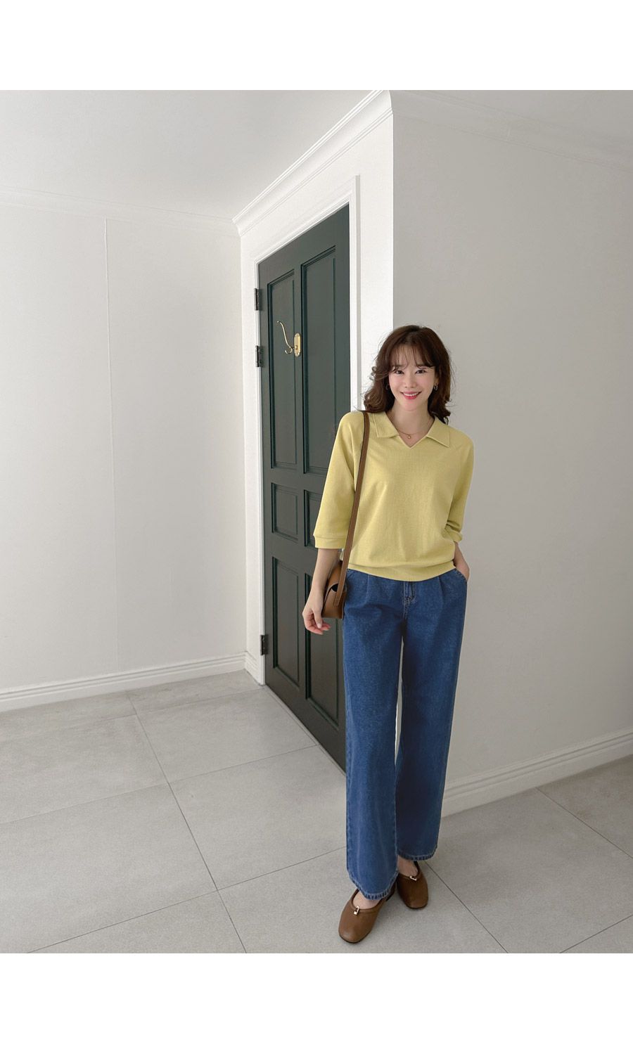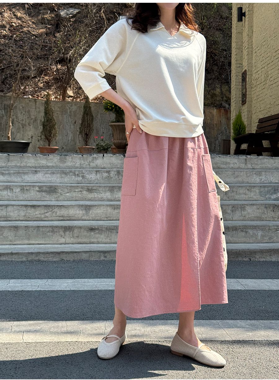 【C55207】韓國JAM 翻領素面上衣-好氣色連肩袖V領直筒七分袖T恤★★