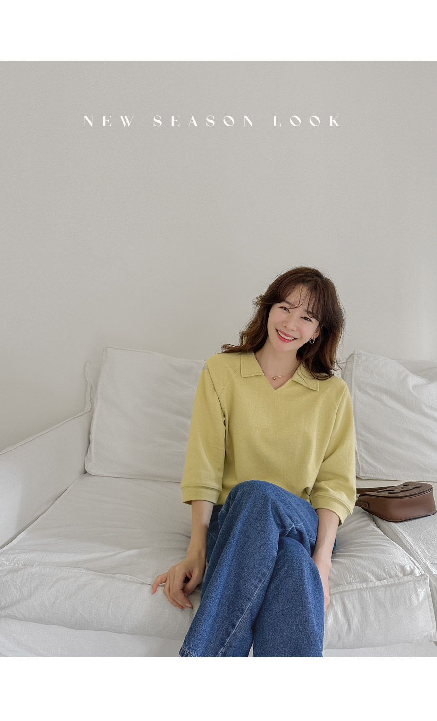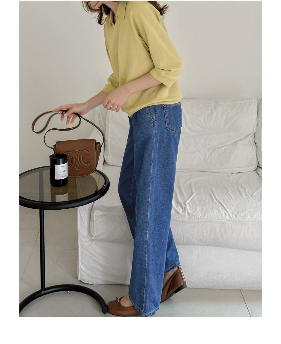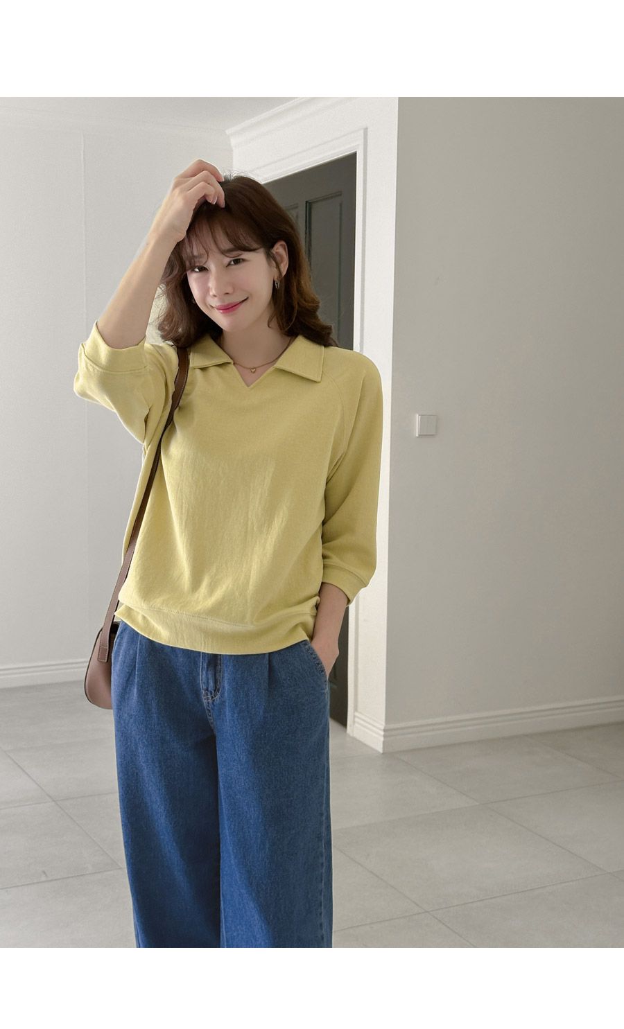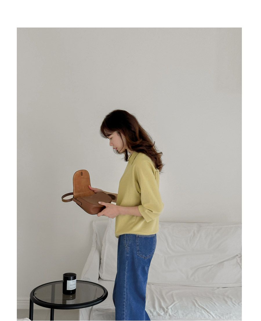 好氣色/連肩袖/V領/直筒版型 - 休閒居家簡約百搭素面翻領素面上衣七分袖上衣T恤黃色象牙色淺米色宗色天藍色黑色