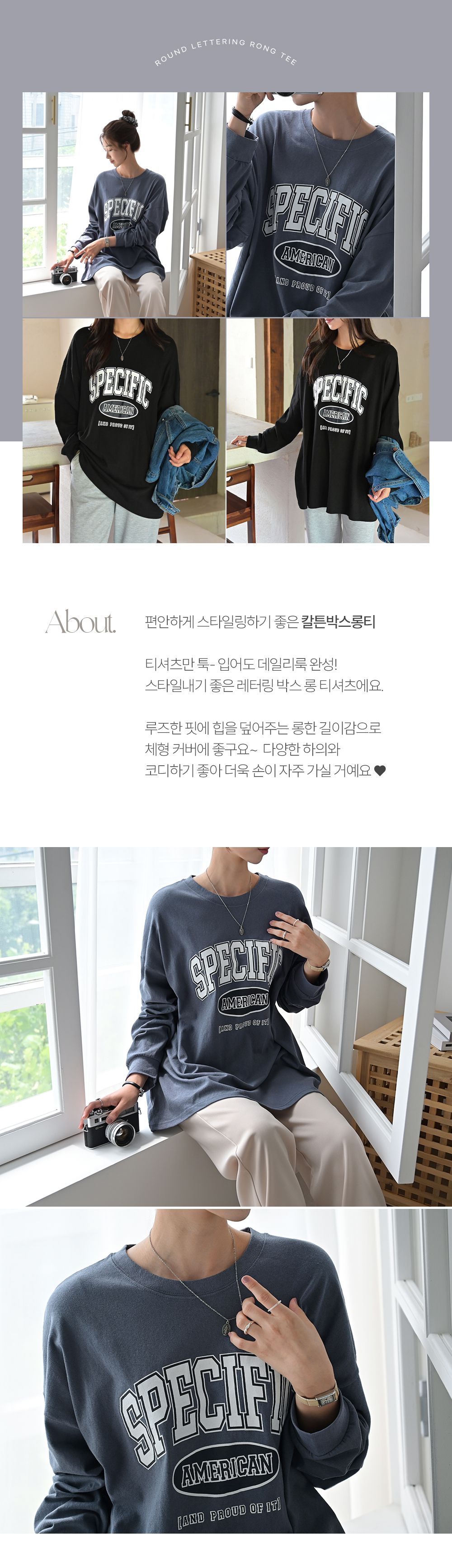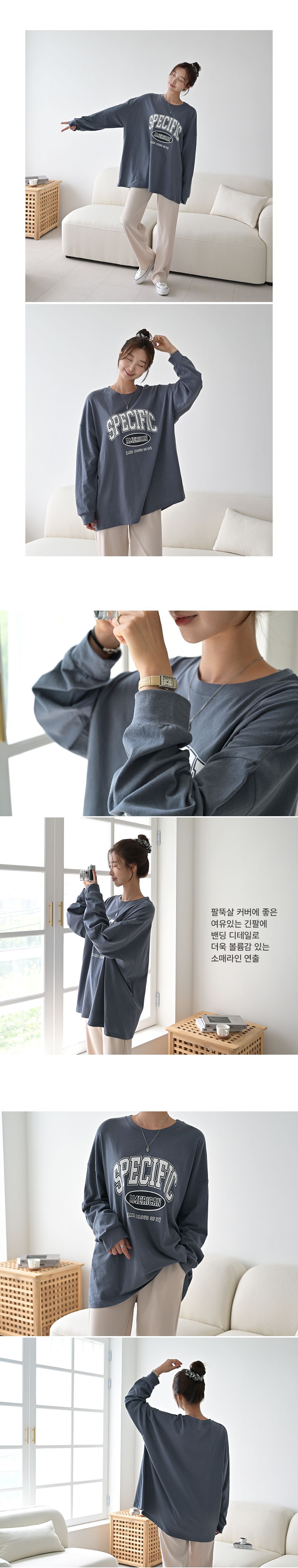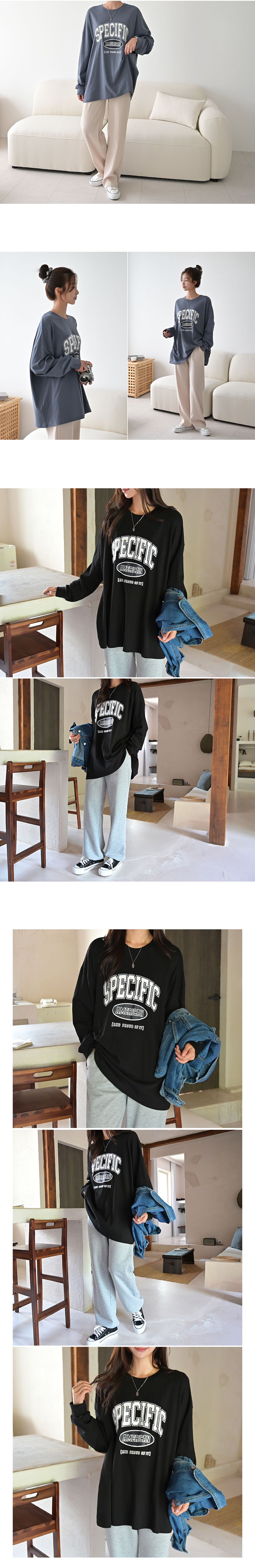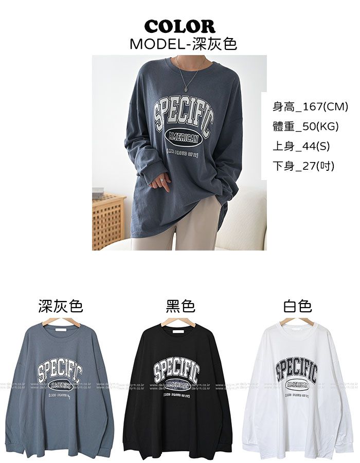 膠印字母/美式字母/圓領/棉質/寬鬆長版/落肩長袖/束口袖 - 休閒居家英文字母上衣字母T恤TEE長版字母T恤寬鬆大尺碼上衣長版上衣長袖上衣深灰色黑色白色