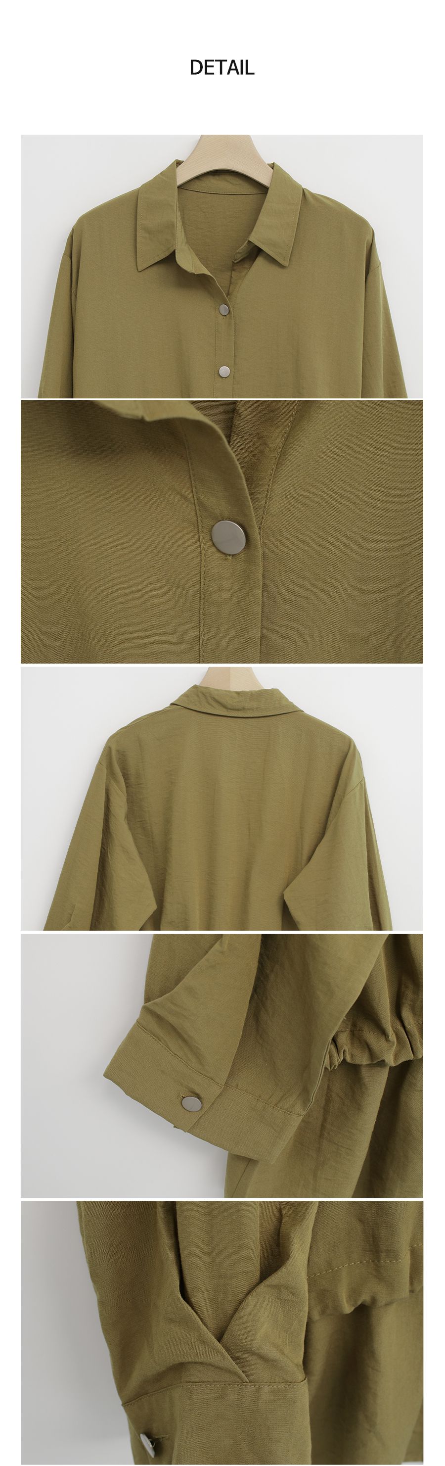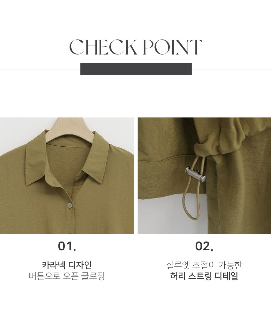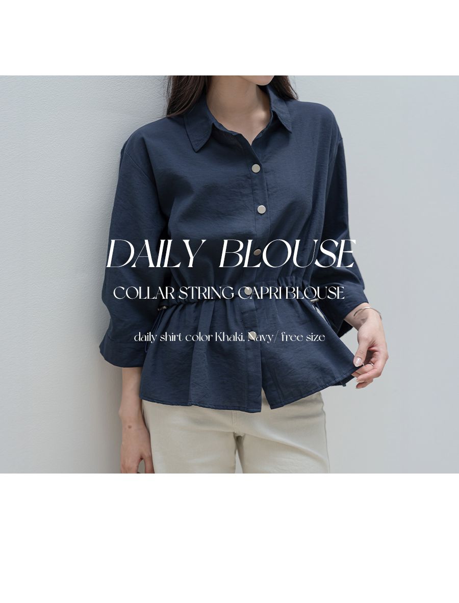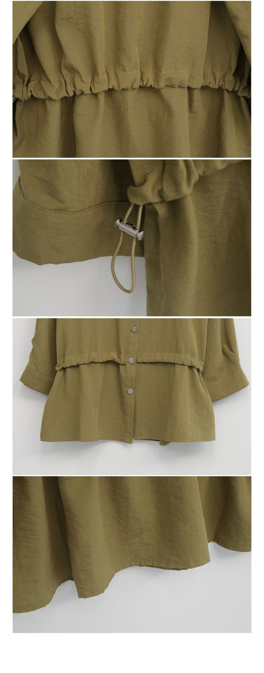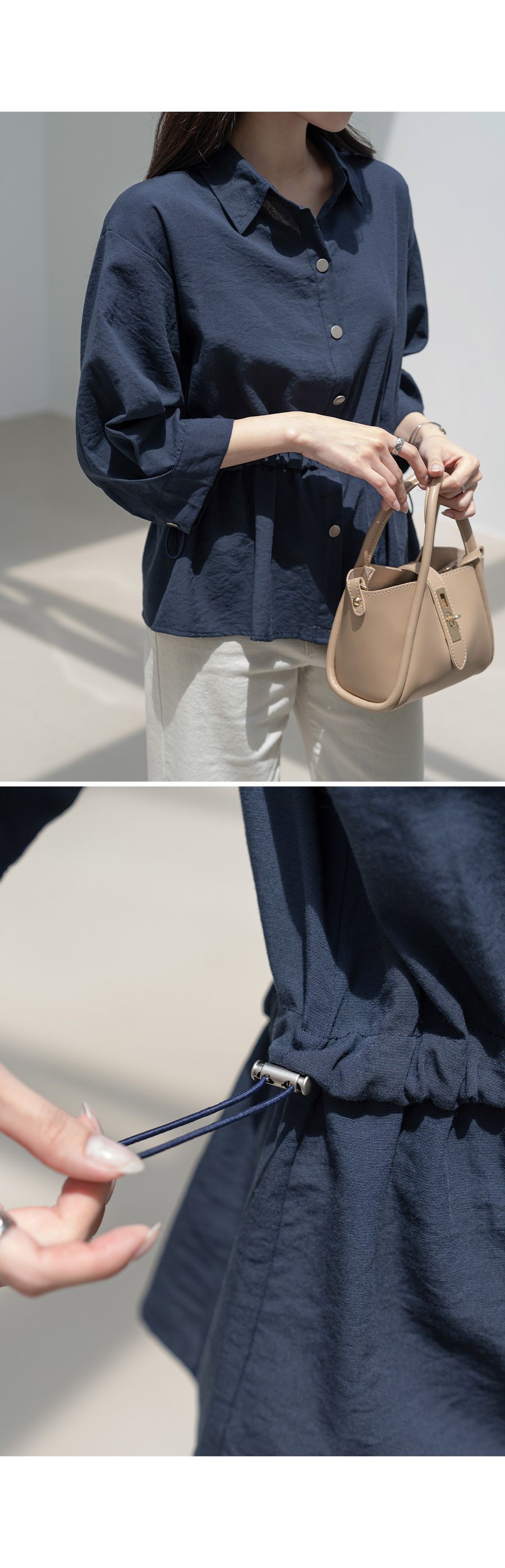 開襟排釦/抽繩收腰/七分袖 - 休閒居家簡約百搭素面收腰七分袖襯衫上衣七分袖上衣深藍色卡其綠色