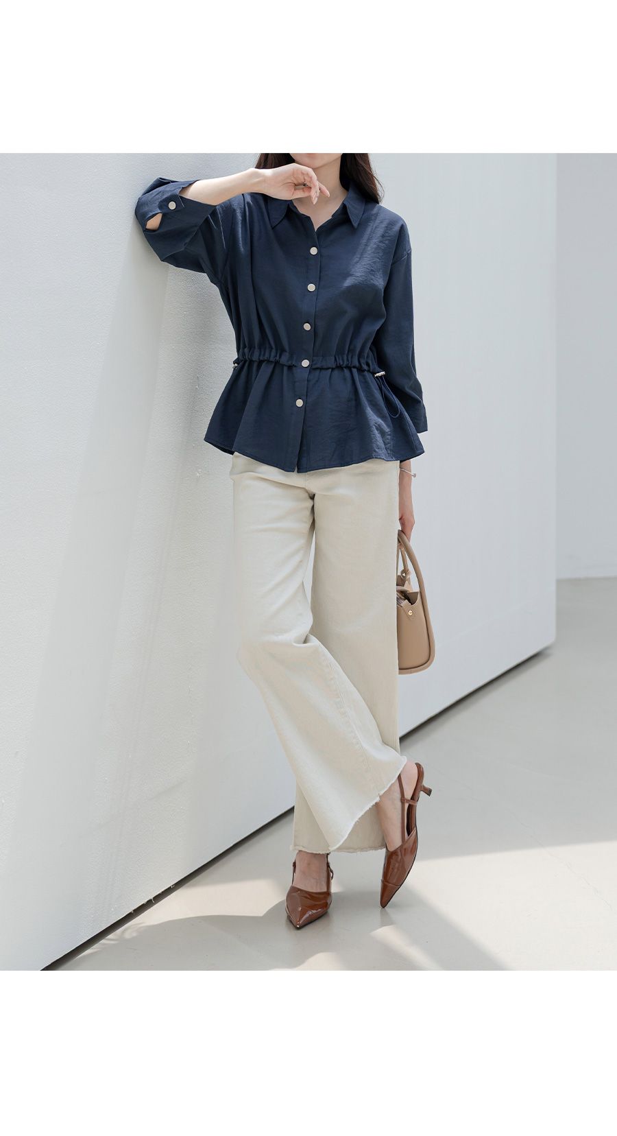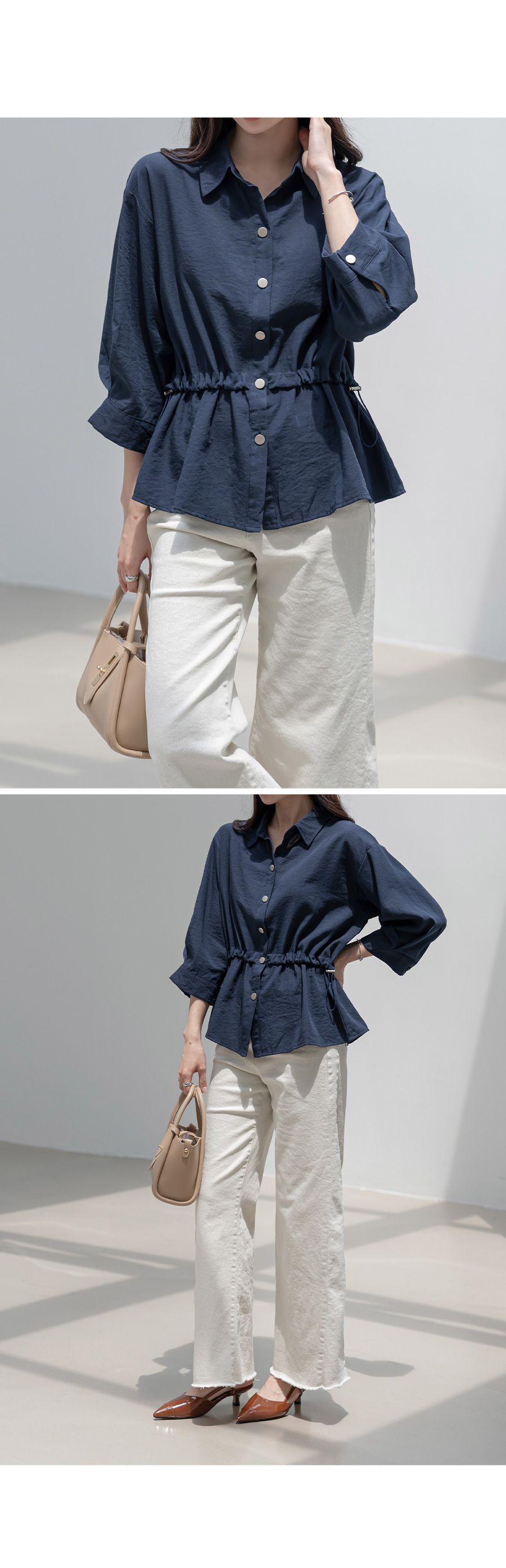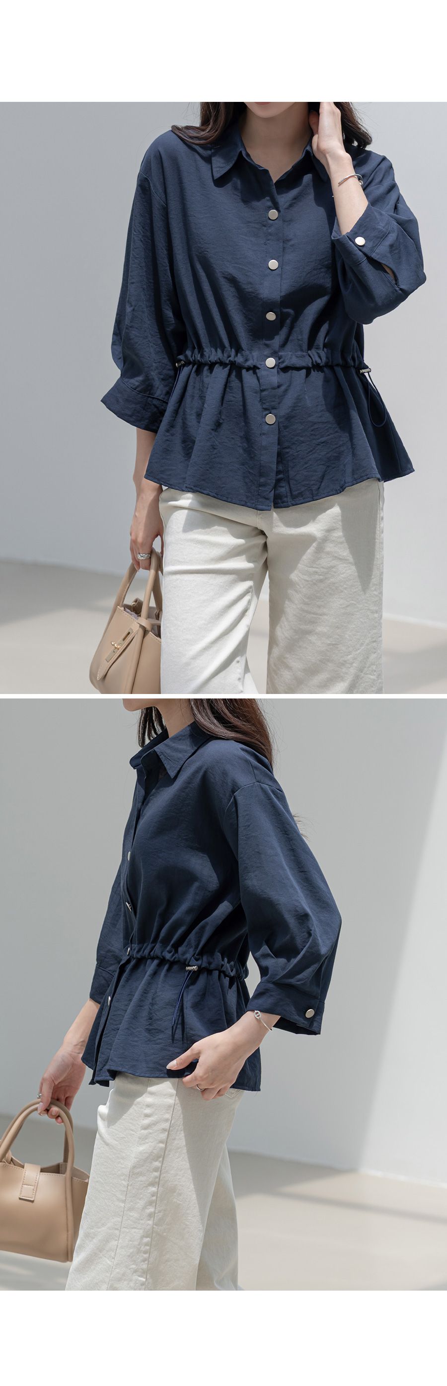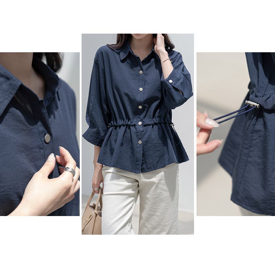 【C55218】韓國MNA 收腰七分袖襯衫-素面開襟排釦抽繩收腰七分袖上衣★★