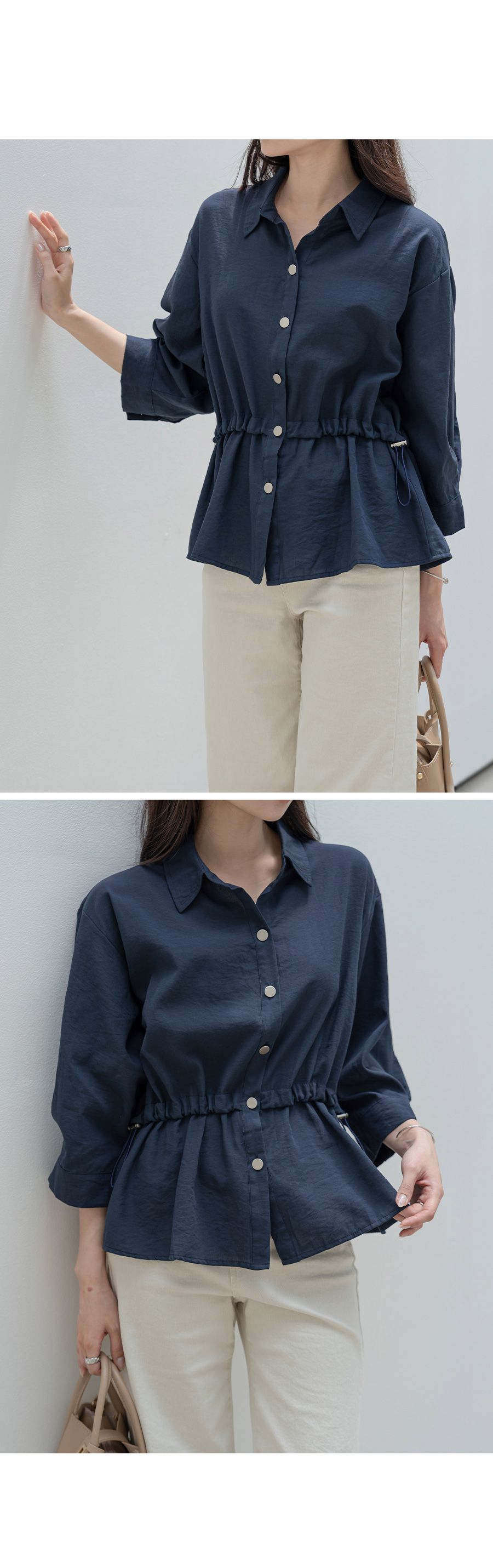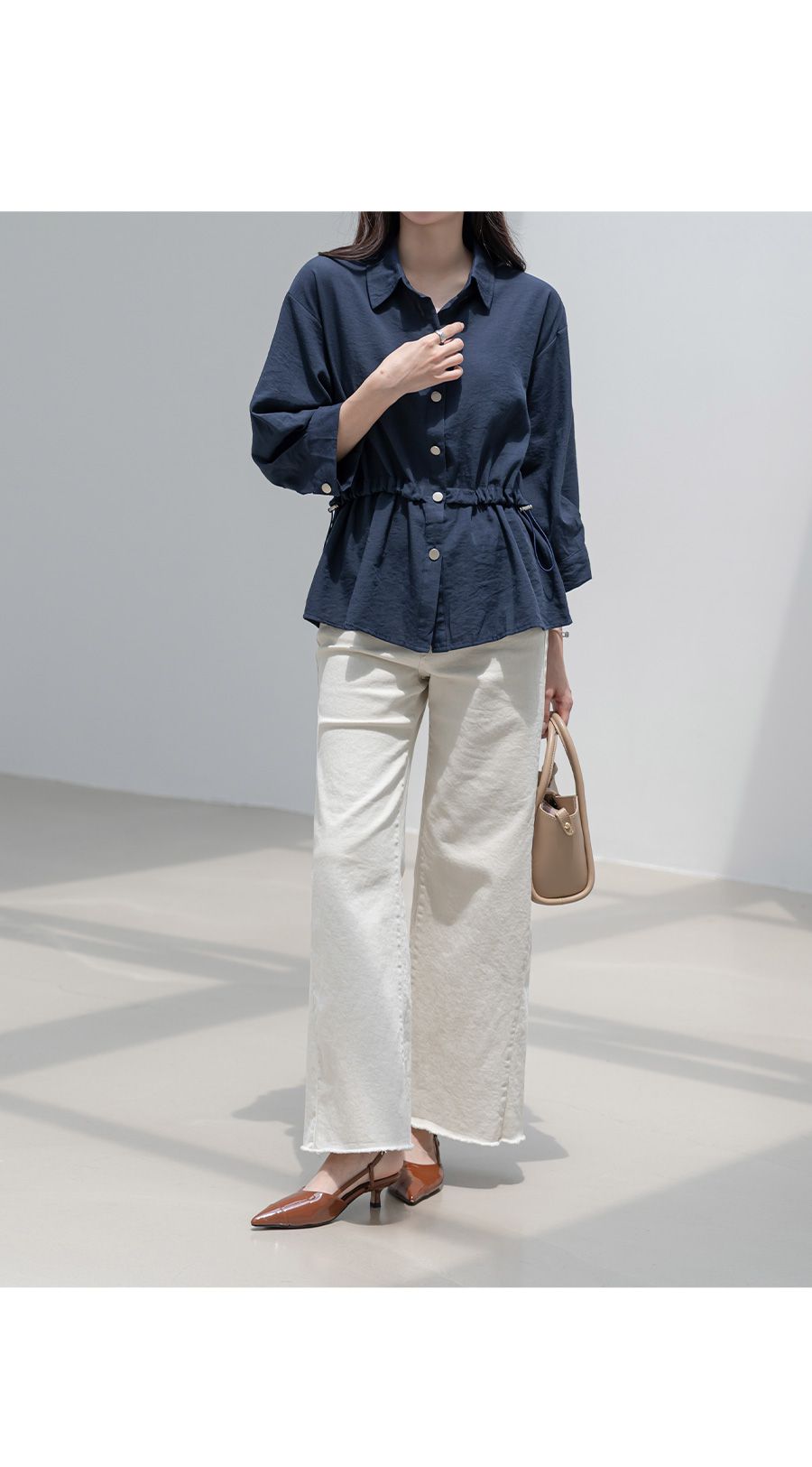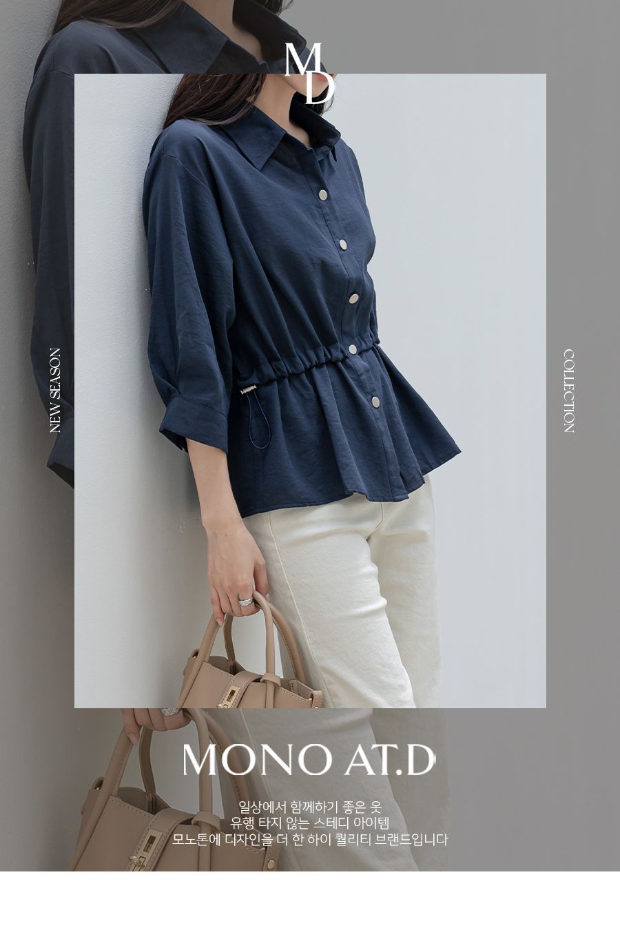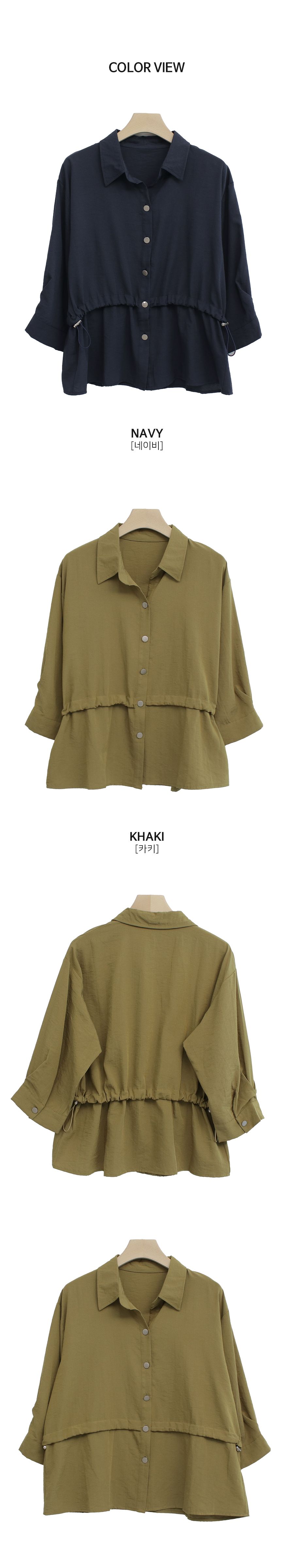 【C55218】韓國MNA 收腰七分袖襯衫-素面開襟排釦抽繩收腰七分袖上衣★★