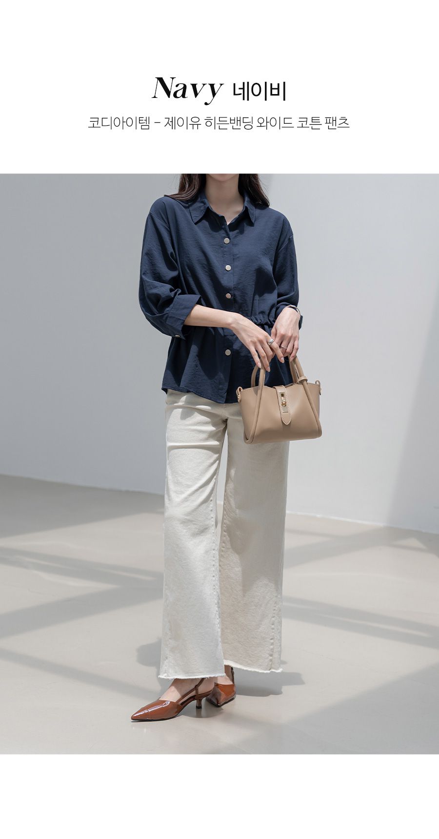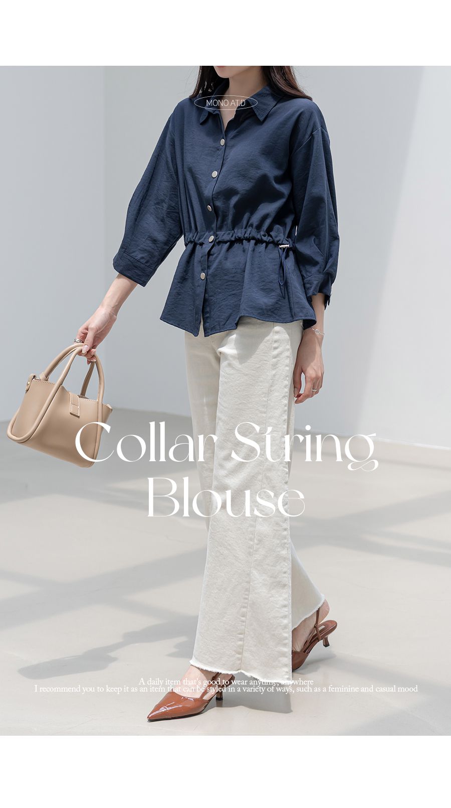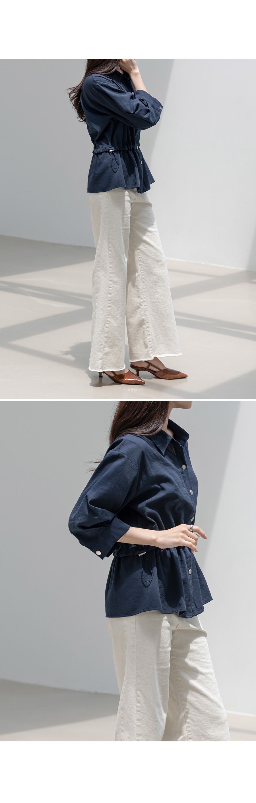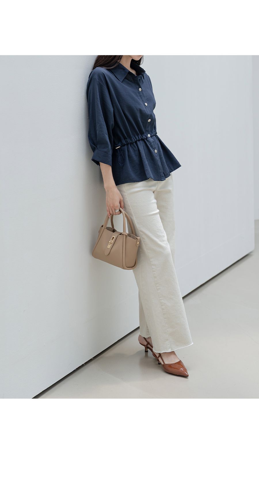 【C55218】韓國MNA 收腰七分袖襯衫-素面開襟排釦抽繩收腰七分袖上衣★★