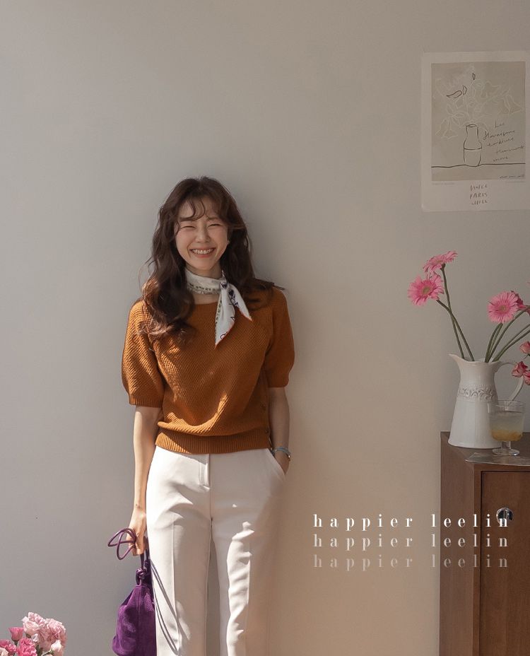 【C55254】韓國LEE 側腰排釦針織衫-素面華夫格紋路短版五分袖上衣★★