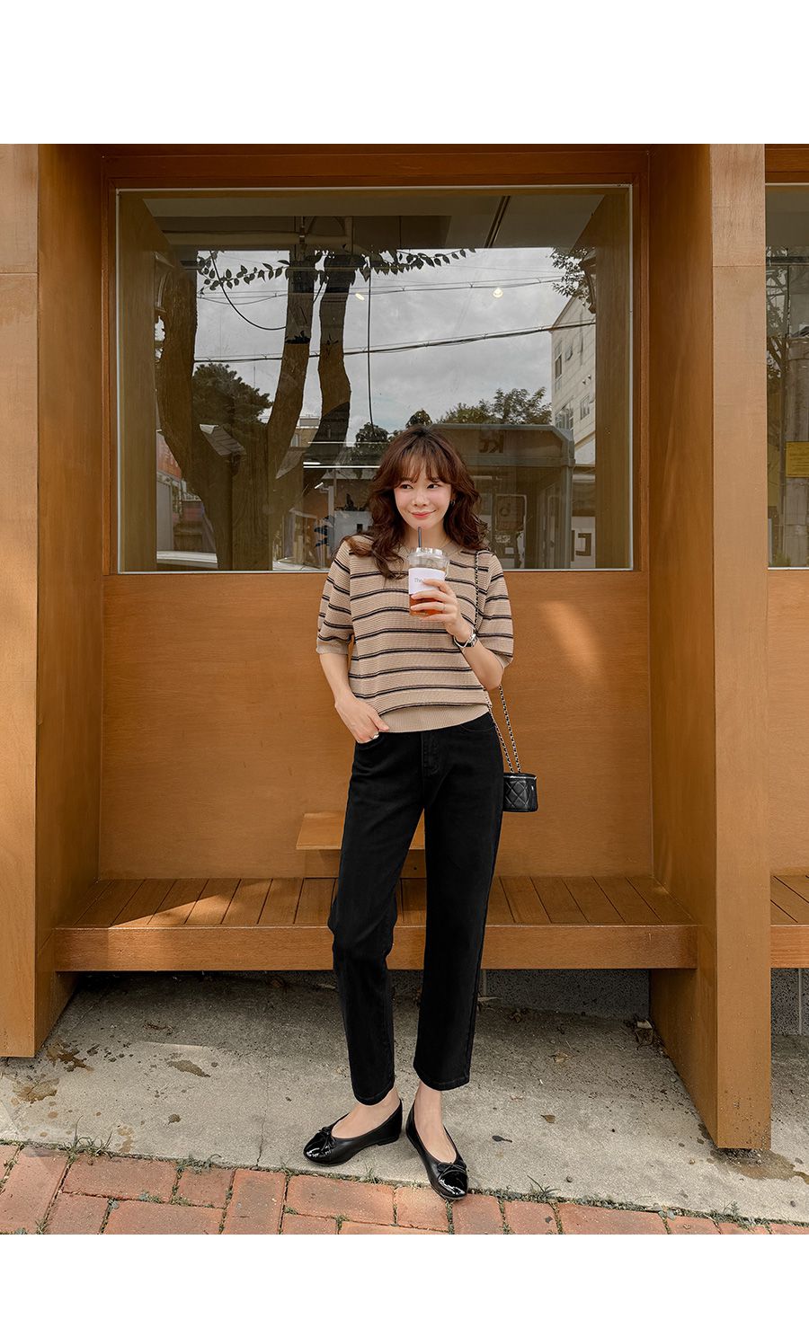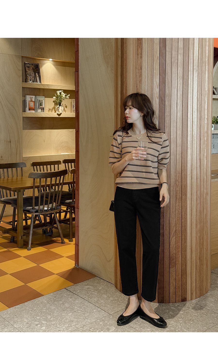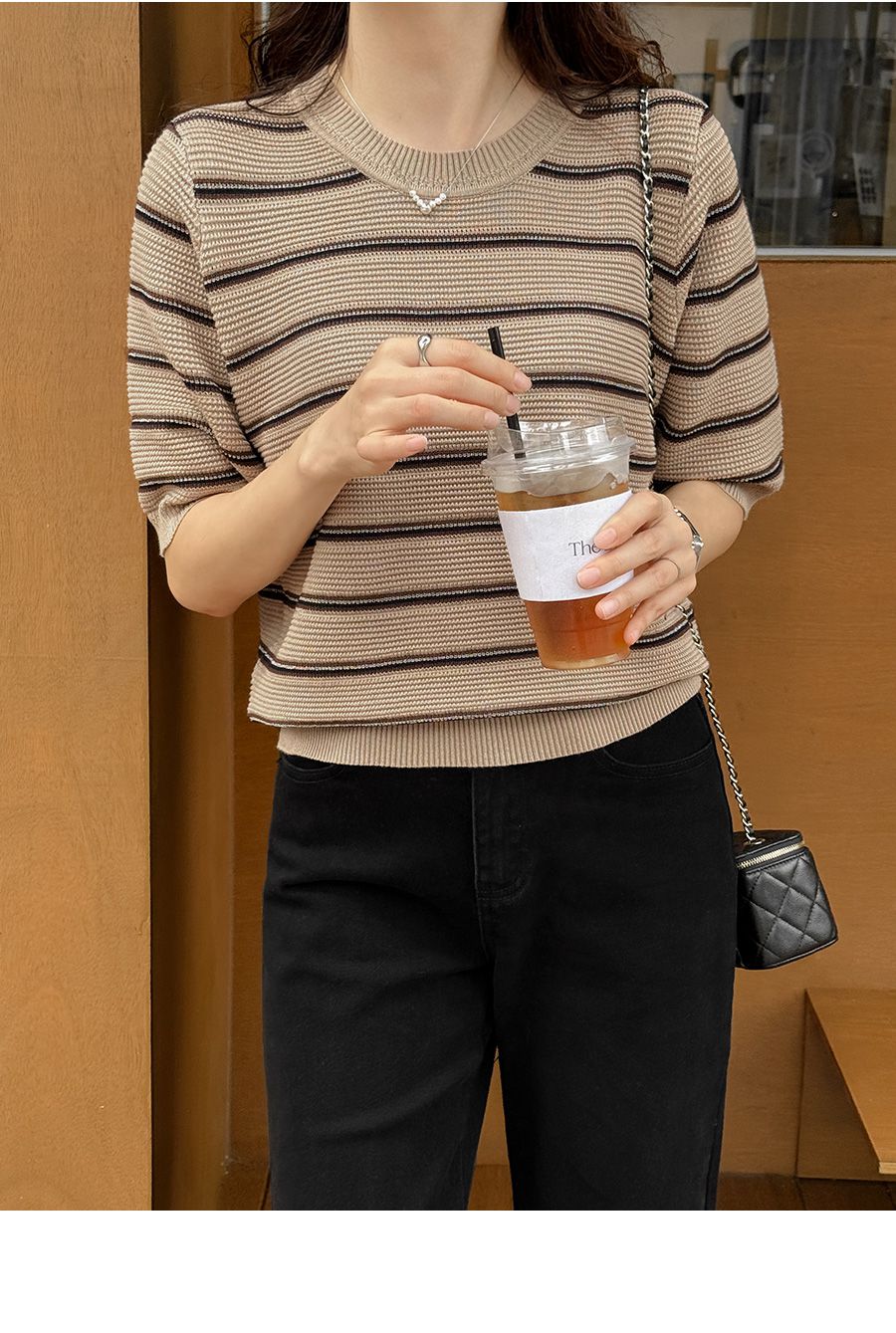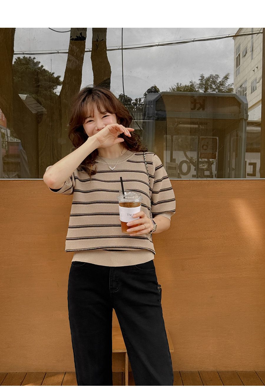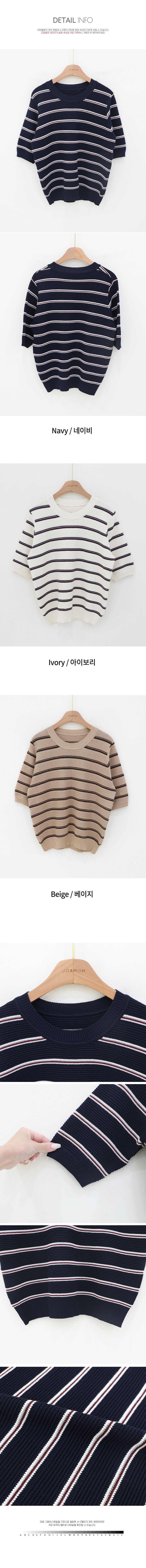 【C55256】韓國JAM 三色條紋針織衫-羅紋圓領橫條紋五分袖上衣★★